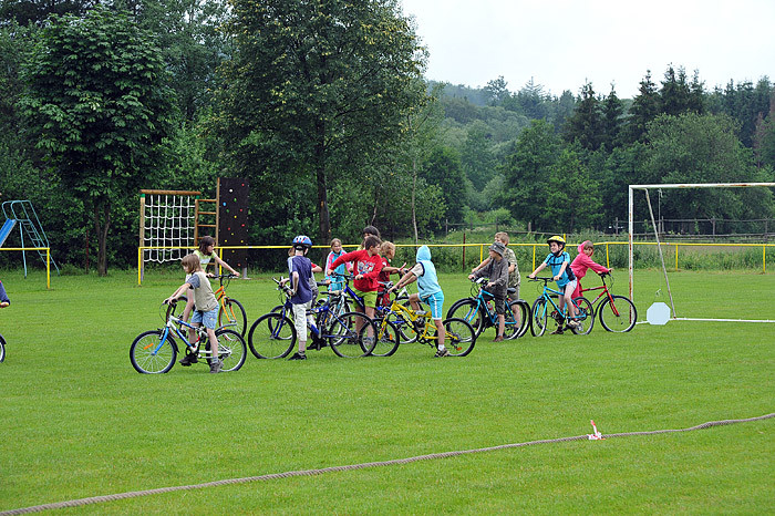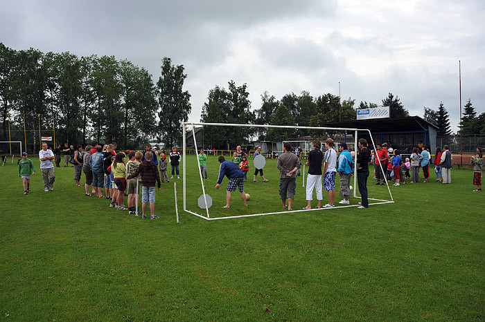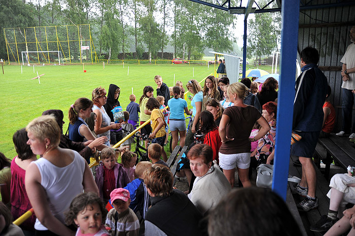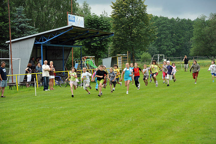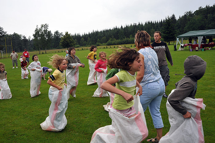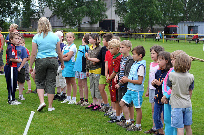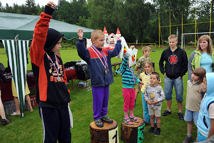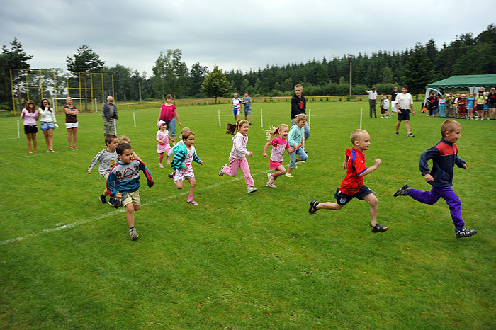 Počasí nám moc nepřálo, dokonce jsme zmokli, ale přesto na zábavné sportovní odpoledne dorazilo asi šedesát dětí ze Starého Smolivce a blízkého okolí. Děti soutěžily ve třech věkových kategoriích a šesti disciplínách – běh, jízda zručnosti na kole, skákání v pytli, hod míčkem na cíl, střelba na branku a chytání ryb na čas.
