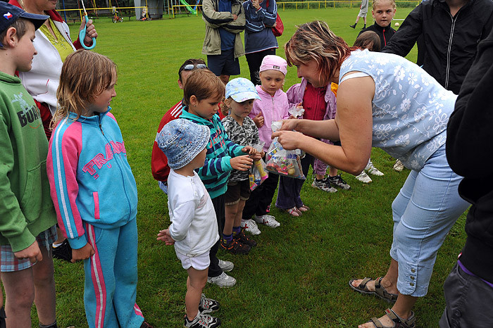 Počasí nám moc nepřálo, dokonce jsme zmokli, ale přesto na zábavné sportovní odpoledne dorazilo asi šedesát dětí ze Starého Smolivce a blízkého okolí. Děti soutěžily ve třech věkových kategoriích a šesti disciplínách – běh, jízda zručnosti na kole, skákání v pytli, hod míčkem na cíl, střelba na branku a chytání ryb na čas.