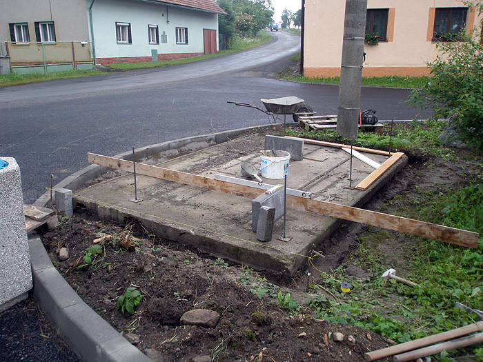 Firma ze Zábřehu nám zpracovala rozpočet a my jsme začali plánovat termín zahájení prací. Vše se rozjelo v červnu. Nejprve jsme demontovali staré zastávky, poté jsme zabetonovali obrubníky a položili zámkovou dlažbu. V červenci pak už přijela zásilka tří kompletně smontovaných čekáren, které jsme jeřábem usadili na svá místa. Celkové náklady na výměnu tří čekáren, podloží ze zámkové dlažby a úpravu prostranství se vyšplhaly na 301.012,-- Kč, přičemž Krajský úřad PK nám poskytl dotaci ve výši 170.000,-- Kč.