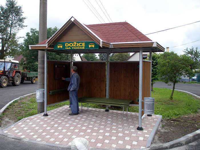 V Dožicích je to autobusová zastávka Na točně a U pošty, ve Starém Smolivci u Panušků. Všem třem čekárnám na zmíněných zastávkách odzvonilo již vloni, kdy jsme se zastupiteli rozhodli, že je vyměníme. Začátkem letošního roku jsme podali žádost na Krajský úřad Plzeňského kraje do programu stabilizace a obnovy venkova na projekt s názvem „Veřejná prostranství v okolí autobusových zastávek včetně výměny čekáren“, a když nám ji na kraji schválili, bylo definitivně rozhodnuto.