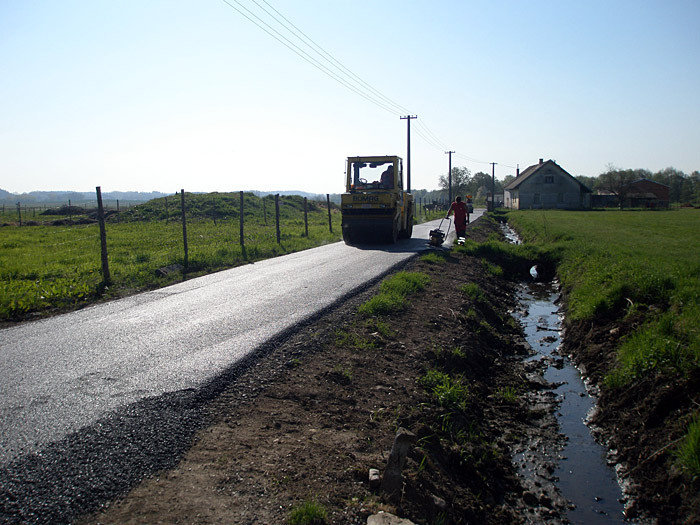 2. etapu jsme začali přesně na termín, tedy 1. června 2009. V druhé etapě jsme rekonstruovali dvě komunikace v Dožicích, a to „Do souhradí“ a „Ke mlejnu. Délka těchto úseků čítala dohromady 800 m délky při průměrné šířce komunikace 4 m. Součástí rekonstrukce komunikace „Ke mlejnu“ byla i rekonstrukce točny pro autobusy a bezpečný výjezd komunikace ze Souhradí. Drobné stavební přípravy již začaly v druhé polovině května, ale naplno se začalo na den dětí. Tato druhá etapa je již z devadesáti procent dokončena, ale ještě chybí drobné dodělávky, jako jsou dosypání travnatých ploch ornicí, úprava krajnic a točny.