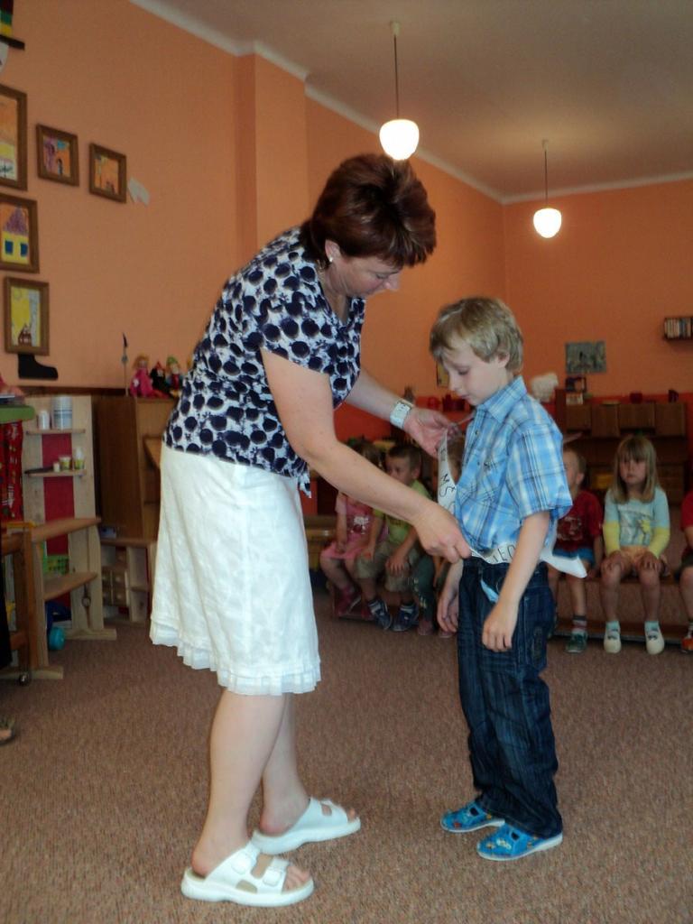 Děti nejprve zazpívaly a přednesly básničky a pak je paní ředitelka Svatava Šlaisová slavnostně pasovala na školáky. Do 1. třídy odchází Lucinka Bártová, Pavlínka Krečová, Monička Vančurová, Péťa Fous, Vašík Zvonař a Verunka Krejčová. Děti dostaly slavnostní šerpu, vysvědčení se samými jedničkami, dárečky a nechybělo fotoalbum s fotkami a balíček se školními potřebami. Paní učitelky jim popřály hodně úspěchů ve škole. Za Obec Mladý Smolivec se přišel s dětmi rozloučit místostarosta obce Jan Spour a předal jim kufřík se školními potřebami.