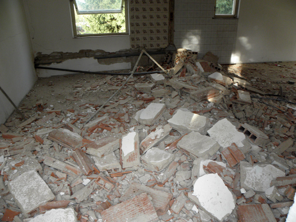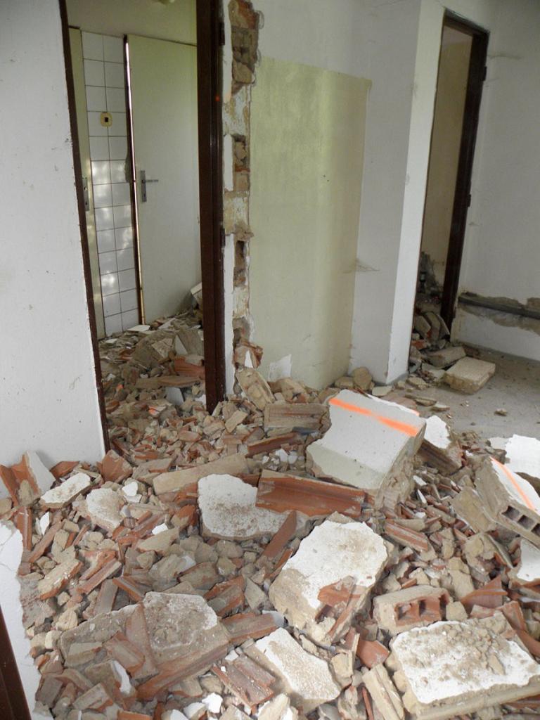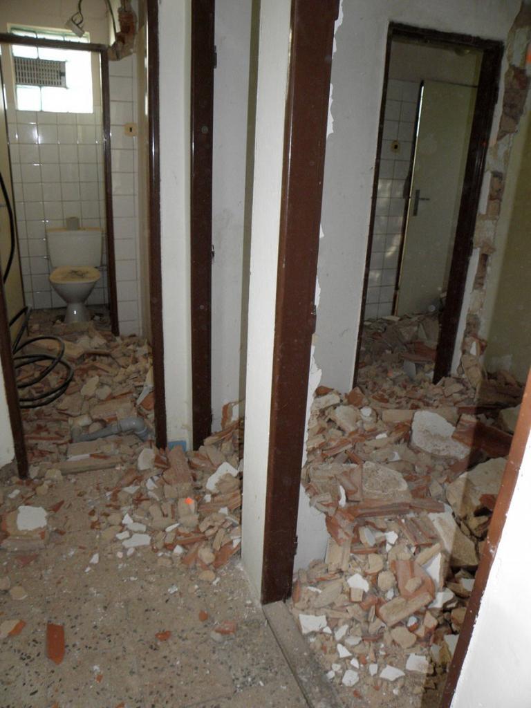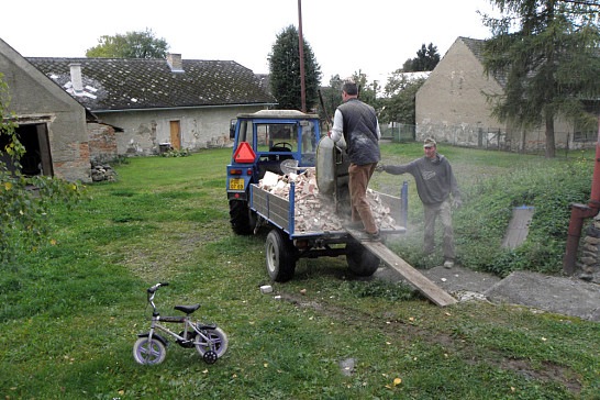 Hlavní organizátorka - paní P. Hošková svolala všechny dobrovolníky, kteří se nebojí přiložit ruku k dílu na dobrou věc. V popisu nedělního dopoledne bylo bourání označených příček, strhnutí obložení stropů a samozřejmě úklid sutě.