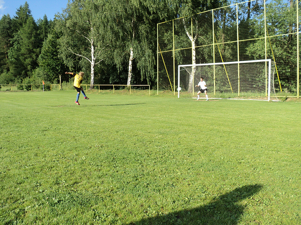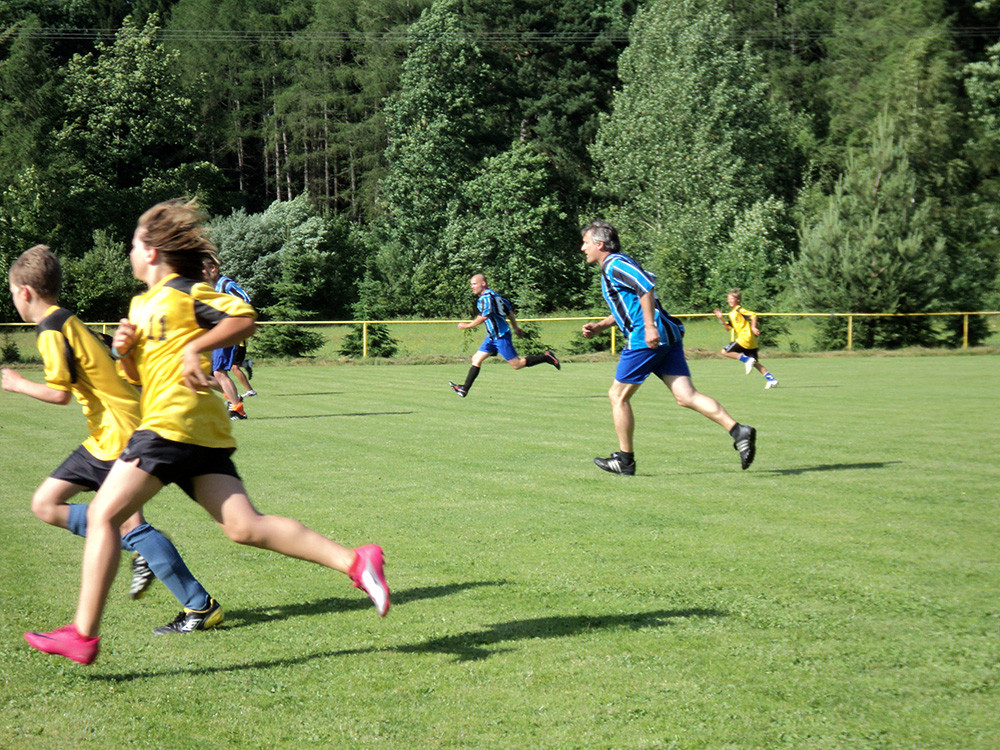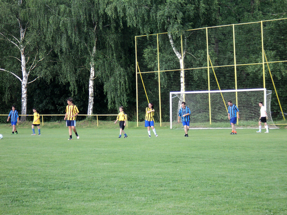 Jelikož ve Smolivci žáci skončili, byla to naše poslední společná dokopná. Po dlouhých plánech jsme se dohodli, že na konec žákovského fotbalu bychom mohli uspořádat nějaký srandovní zápas. Jak se naplánovalo, tak se uskutečnilo. Domluvili jsme si muže z ,,Áčka a Béčka“. Před pátou hodinou se všichni začali scházet. Mohlo se začít hrát. Nastoupili jsme na hřiště ve stejném počtu hráčů v poli. Jelikož byli muži silnější, žáků na hřišti přibývalo, sešlo se jich hned 20. Mezi žáčky se zařadil i J.B. a Verča Kubů. Během druhého poločasu Verča kopala penaltu na Pavla Panýrka a dala mu gól. Radost byla na obou stranách. Sranda zápas, jak jsme tuto akci nazvali, skončil remízou 6:6, poté následoval penaltový rozstřel, kde nakonec vyhráli muži.