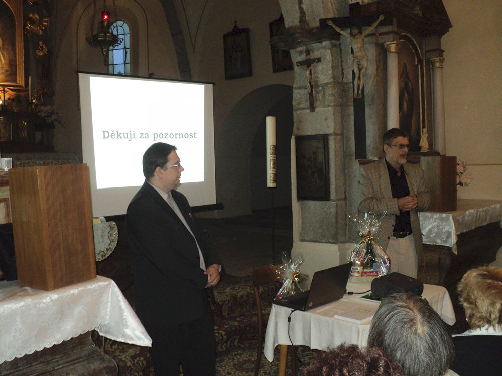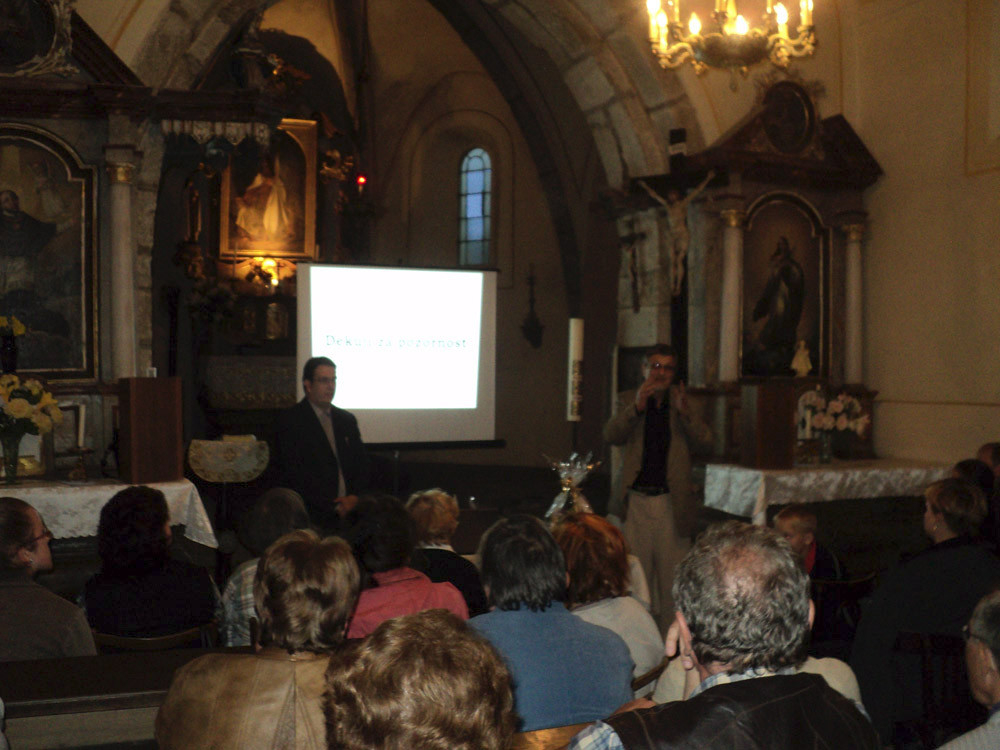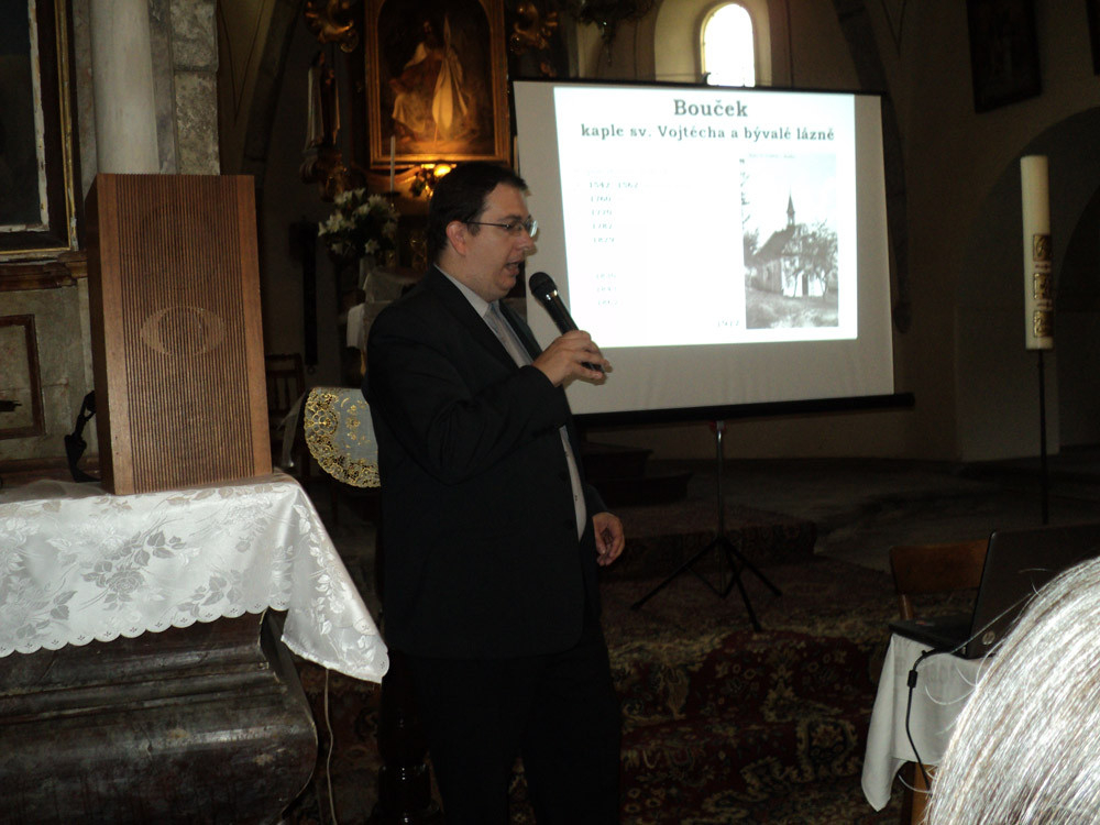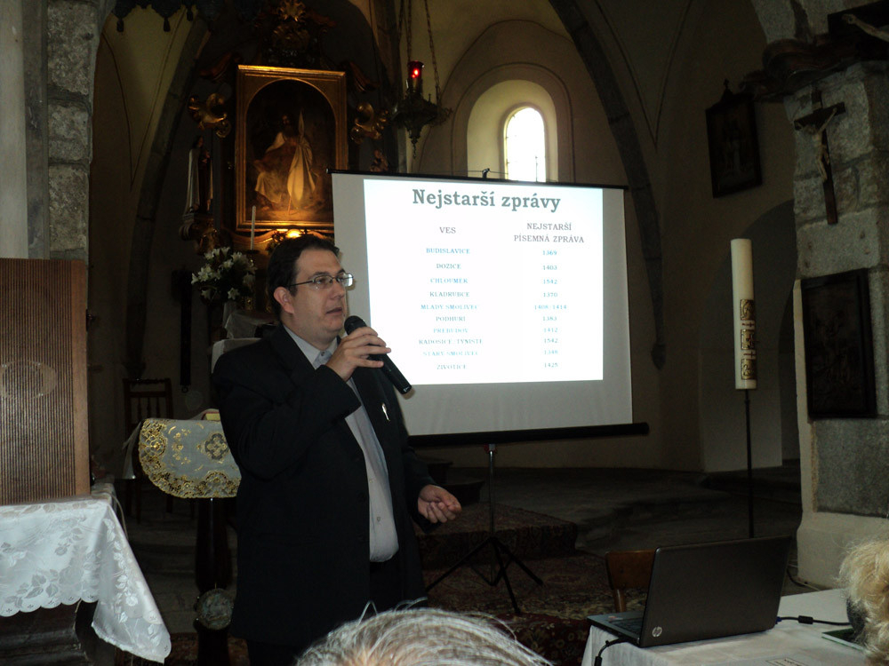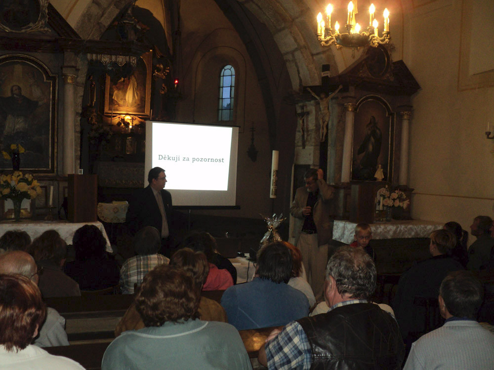 V prastarých zdech nejstarší stavební památky našeho regionu (vždyť tento kostel byl zbudován na starších základech již ve 13. století) se potvrdilo prastaré přísloví hovořící o tom, že "doma není nikdo prorokem" - většina pozorných posluchačů byla totiž tzv. "přespolních", místní se povětšině nenechali zlákat ze svých "pivně-televizních pelíšků" a od svých všedních povinností. Avšak ti, kteří přijali pozvání Ř.-k. farnosti a Obecního úřadu na besedu s Mgr. Vladimírem Červenkou naopak svým zájmem popřeli platnost výše zmíněného přísloví - mladý kasejovický regionální historik a etnograf je ve dvou příjemných hodinách provedl historií, pamětihodnostmi a přírodou našeho okolí a seznámil je s význačnými osobnostmi a rodáky. Desítky projekcí a spousta zajímavostí, které byly obsahem jeho přednášky, která byla v pořadí již druhá a určitě ne poslední, nás seznámily s mnohými fakty, která přes často proklamovaný zájem o místa, ve kterých žijeme, jsme doposud neznali. Poutavé bylo třeba vyprávění o původu některých častých místních rodových příjmeních či například o cenném oltářním obrazu sv. Jiljí od známého a význačného malíře J.Scheiwela, jímž se budislavický kostelík "pyšní" a který, doufejme, nepotká stejný osud jako nejcennější umělecko-historickou památku – raně barokní sochu Piety, která před pár lety z podvěžní předsíně kostela "záhadně zmizela" stejně tak, jako z věže hodinový stroj. A tak se můžeme těšit na další podobné vlastivědné, kulturně-společenské i duchovní podvečery, kteréž se snad již v Budislavicích stávají tradicí.
