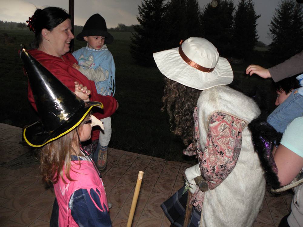 Samozřejmě nechyběl průvod dětských čarodějů a čarodějnic vesnicí, zakončený rozdáváním "řidičských průkazů na létající košťata" všem přítomným dětem z rukou hrůzunahánějících starých čarodějnic. "Musíme si vychovávat své nástupce," tak tuto akci okomentovala jedna ze čtyř mnohasetletých babizen.