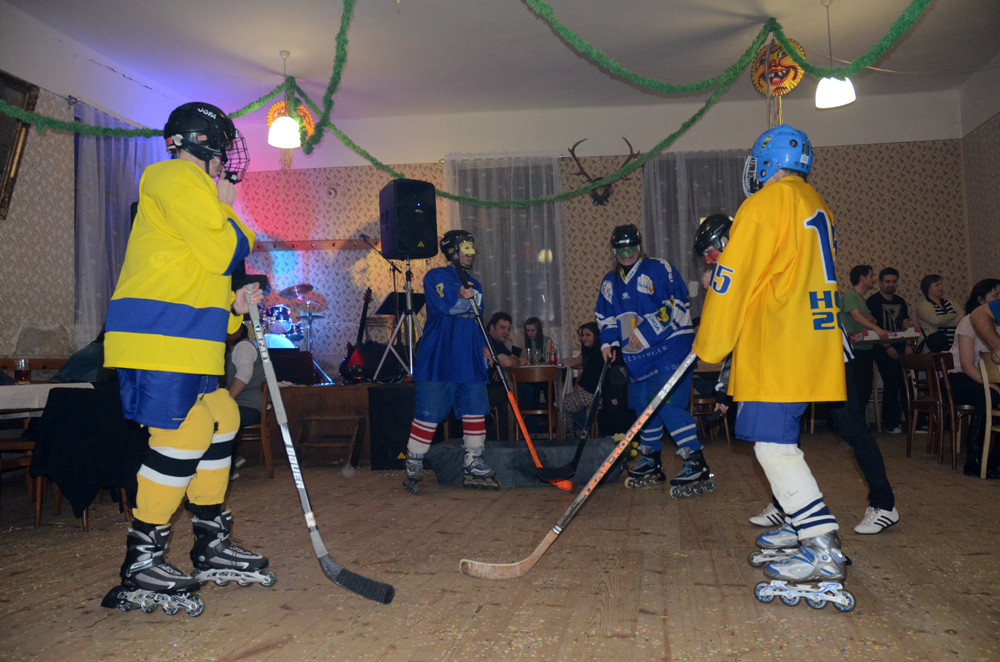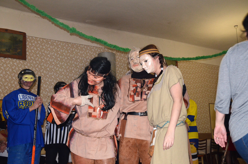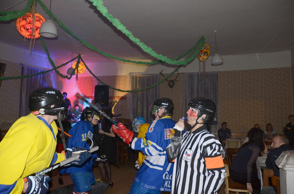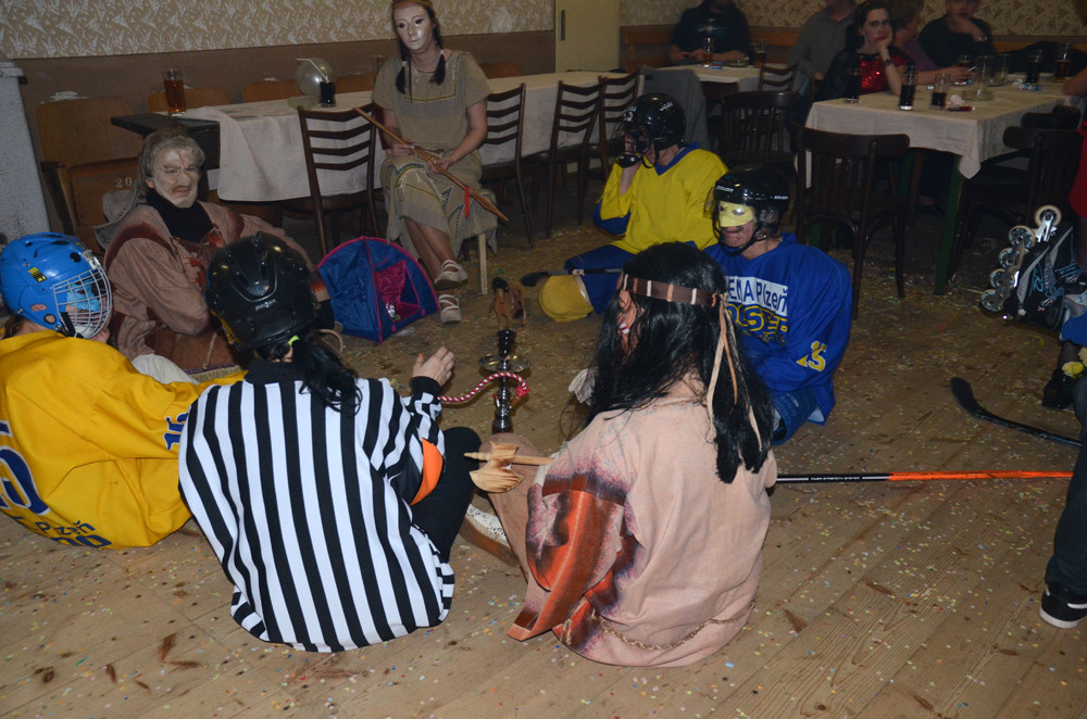A opravdu se na sál, po zahájení úvodní série kapely Minimax, začaly první masky scházet. Spejbl, Hurvínek a Mánička nezapomněli doma Žeryka, upírky si přinesly náhradní krev v lahvi a hrůzu naháněla i jejich "vymóděná" rakev. Velký aplaus sklidila skupina hokejistů s rozhodčím. Dalším nepřehlédnutelným převlekem byla bílá kombinéza Martiny Sáblíkové, které nechyběla zlatá medaile a vlajka ČR. Poslední skupinou masek byla "tlupa" indiánů se svým vigvamem, koníkem a dýmkou míru. S bledými tvářemi však byli na válečné stezce, neboť před stanem měli jednoho skalpovaného bělocha. Během večera takhle téměř dopadla i "Martina Sáblíková". Ta už byla přivázána na židli a její skalp visel opravdu na vlásku.