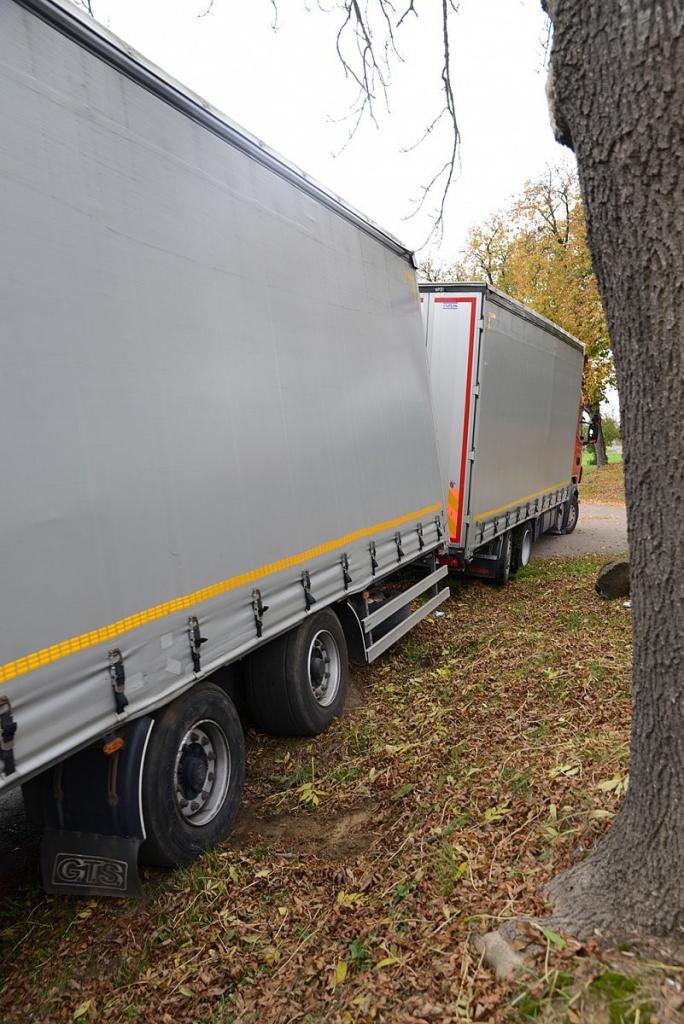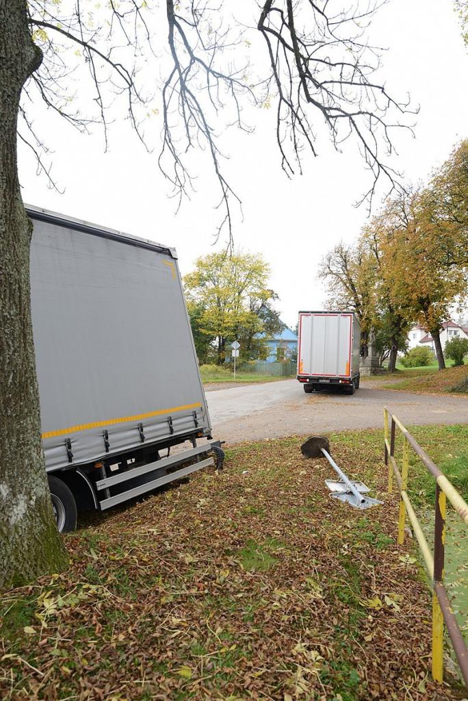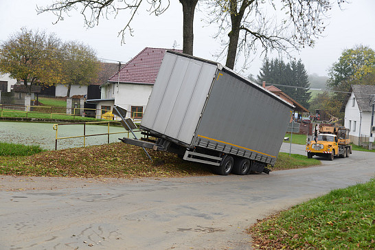 Neobvyklá nehoda kamiónu na návsi v Dožicích 13.10.2014