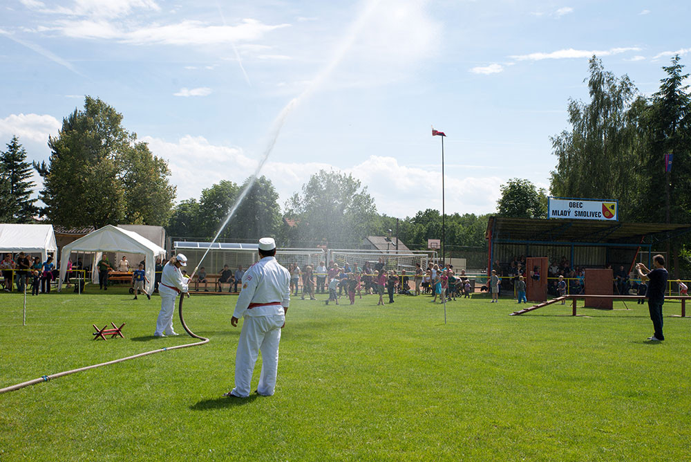 V sobotu 28. 6. 2014 začaly oslavy ve Starém Smolivci krátce po poledni slavnostním kladením věnce, státní hymnou a slavnostním průvodem. Všechny sbory v čele se starosmoliveckými hasiči prošli celou obec za doprovodu pochodových písní, které tentokráte netradičně zněly z obecního rozhlasu. Cvičení bylo připraveno v areálu TJ Starý Smolivec, takže průvod byl opravdu dostatečné dlouhý. Po přivítání všech přítomných pořadateli ze Starého Smolivce, následovalo předání čestných upomínkových předmětů pro všechny zúčastněné sbory, radošičtí hasiči obdrželi od starosty SDH Starý Smolivec pana Pavla Panýrka pamětní stuhu na jejich prapor. Ocenění rovněž obdržel Sbor dobrovolných hasičů Starý Smolivec od pana Sýkory, náměstka starosty OSH PJ a plaketu jsme hasičům předali i za Obec Mladý Smolivec. Po této oficiální části začalo tradiční cvičení, kde nejprve předvedly své dovednosti děti SDH Mladý Smolivec a Dožice, pak následovaly štafety a závěrem byl útok našich hasičů. Odpoledne přálo cvičení i počasí a tak malá sprška po útoku byla příjemným osvěžením. Po cvičení následovala taneční zábava, kterou malinko pokazil déšť, ale přesto lze konstatovat, že akce se zdařila a všem líbila.