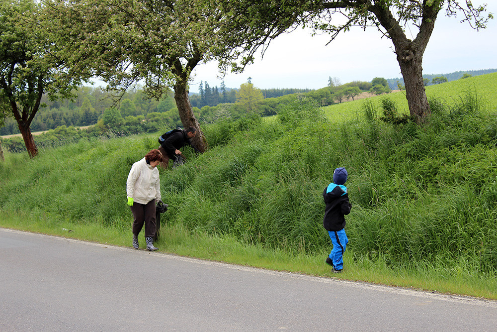 V rozhlase bylo vyhlášeno, že se sejdeme v sobotu 17. 5 ve 14:00 hodin a vydáme se po směru, který neoplývá zrovna čistotou. Nikomu nechyběla pohodlná obuv a rukavice a vykračovali jsme směr Radošice, v příkopech nebyl naštěstí až tak velký nepořádek. Jen kuřáky asi nenaučíme vyhazovat krabičky mimo příkop. Při první odbočce do lesa se nám ale protáčely panenky, bylo až neuvěřitelné, co lidé vyhodili na okraj lesa. Našli jsme plné igelitky plastů, oblečení, zavařovací sklenice s kompoty, atd. Vše jsme sbírali do pytlů, které v týdnu odvezou zaměstnanci obce. Děkujeme!