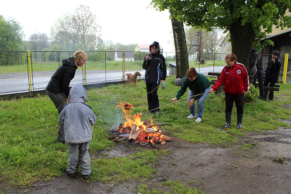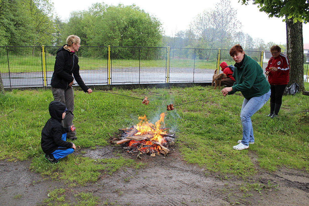 Po příchodu k cíly jsme byli všichni promáčení, ale čekala nás odměna v podobě vuřtů, pěkně s hořčicí a chlebem, které jsme si upekli na ohni, který pro nás vlastnoručně připravila naše paní starostka.
