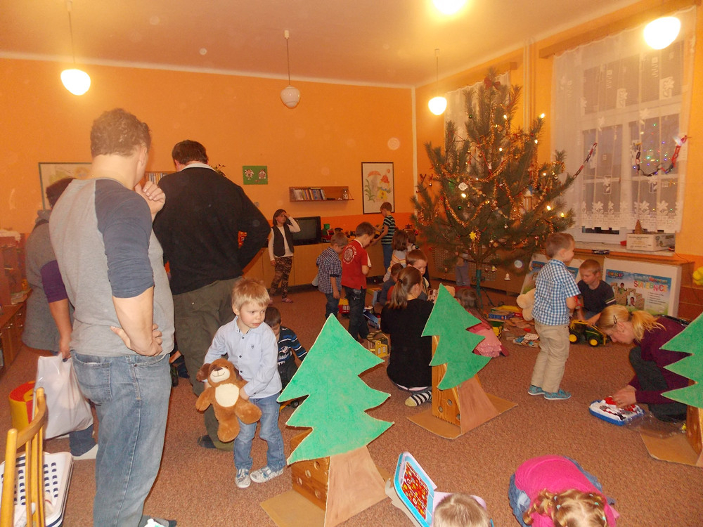 Potom děti předaly vlastnoručně vyzdobené kalendáře a přáníčka svým rodičům. Pan místostarosta J. Spour přinesl dětem dárky, které nechal Ježíšek na Obecním úřadě. Chlapci se radovali z nářadí a děvčata z nádobí a různých potřeb do kuchyňky. Domů si děti odnášely plyšáky a knihu, která nemá chybět pod žádným vánočním stromečkem.