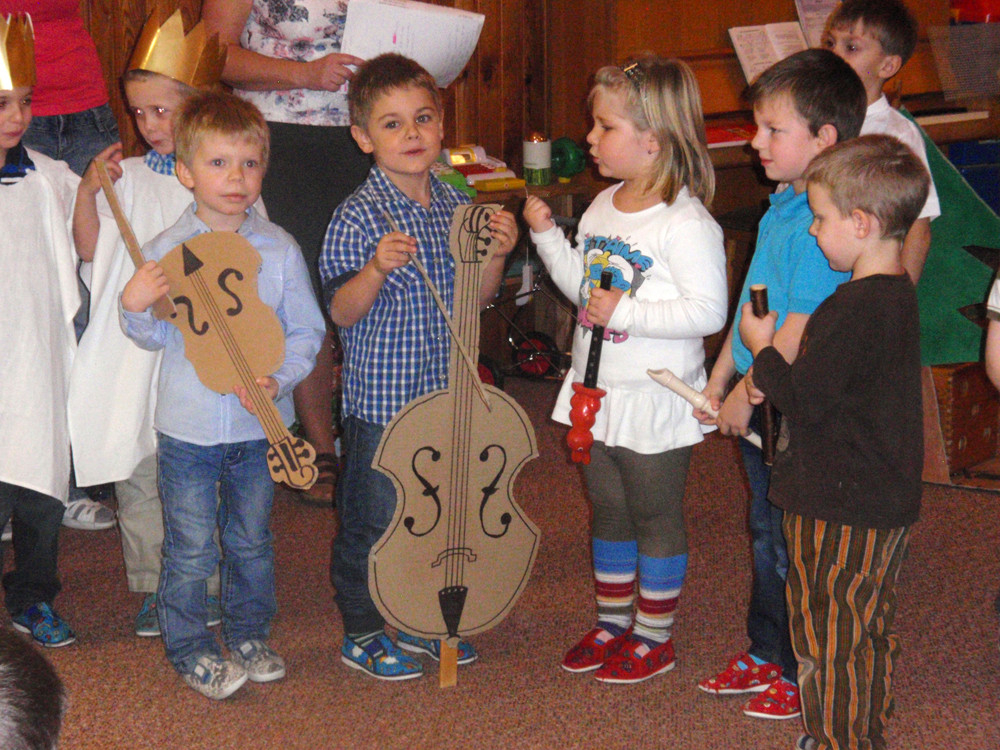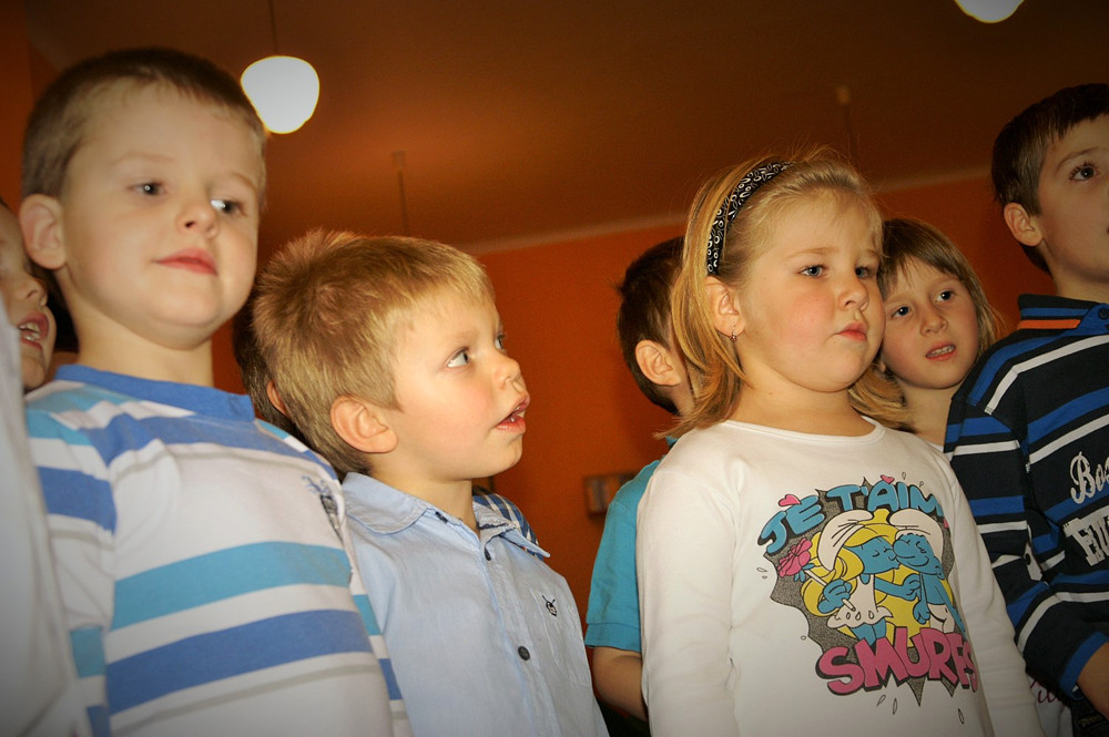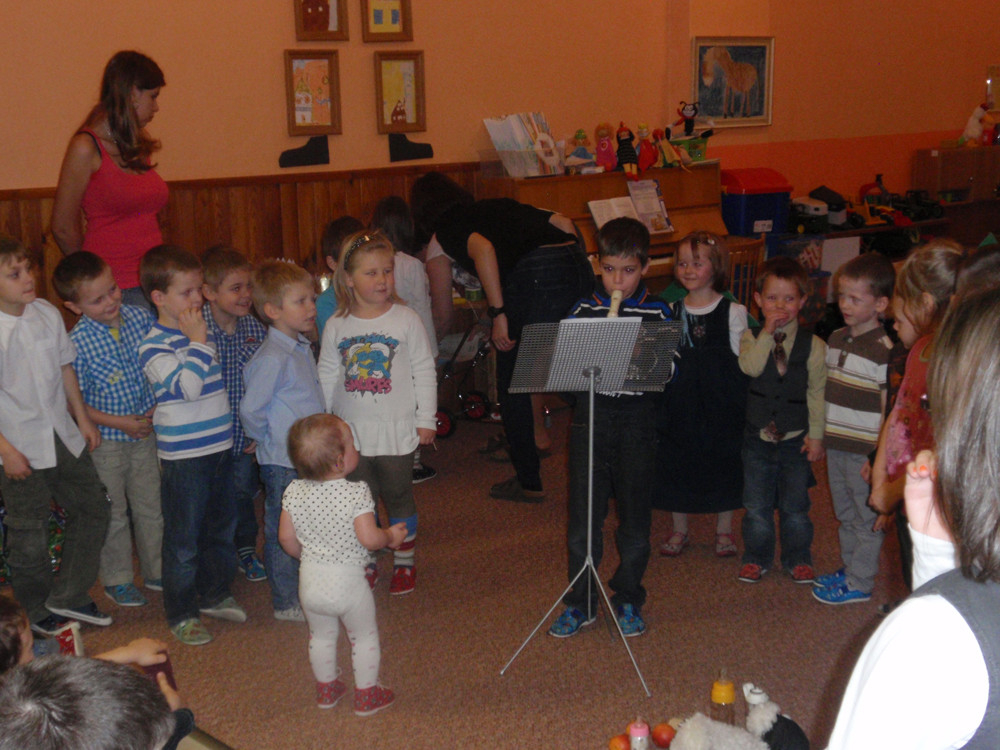 U rozsvíceného vánočního stromku děti zahrály vánoční příběh o narození Ježíška, také zpívaly koledy, známé vánoční písničky, zahrály na flétnu a přednášely básničky.