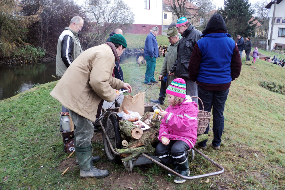 Na to, jaké překvapení se skrývá pod hladinou se těšily především děti, ale z úlovku měli radost i "dospěláci". Opečený vuřt na břehu rybníka a horký groček v chladném počasí chutnaly víc, než kdy jindy. A na večeři se místní sešli v místní hospůdce, kde jim Maruška Křížová připravila kapra na víně.