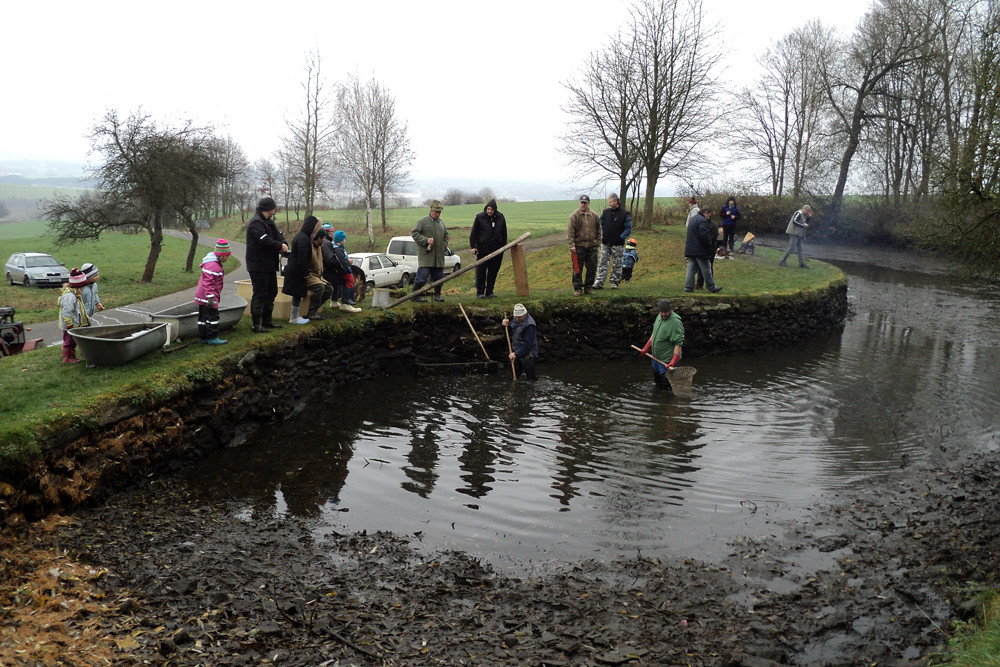 O státním svátku 17. 11. 2014 měli Budislavští v pohotovosti vysoké holinky, saky a kádě, lovil se zde totiž malý místní rybníček.