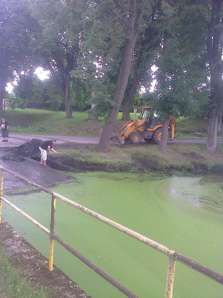 Sešli se zde před půl jednou v silné sestavě 5 mužů. Výbava pro tento den byla jasná: lopaty, plovoucí čerpadlo a hlavně dobrá nálada. Hlavními aktéry pro tento den byli bagr a Tatra, patřící Josefovi a Zdeňkovi Beránkovi. Ti se postarali rovněž o odvoz bahna.