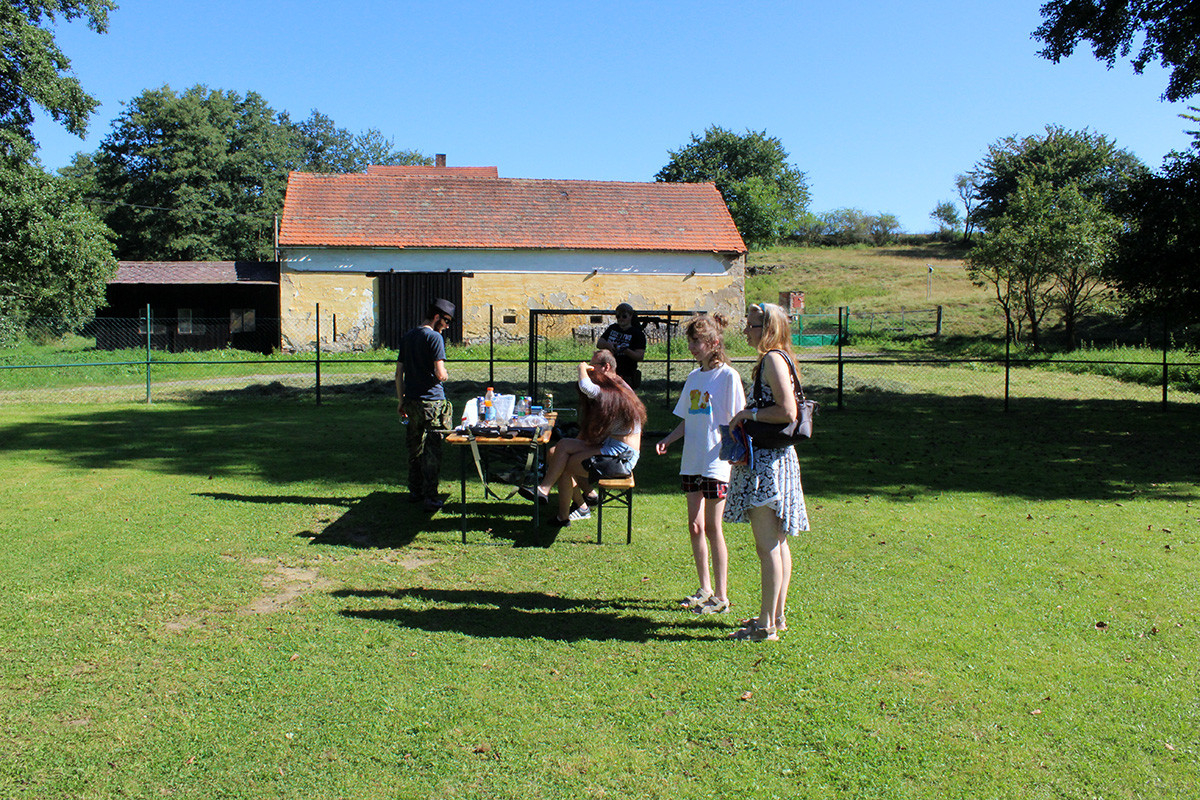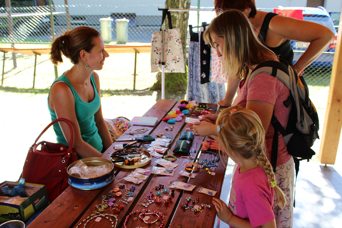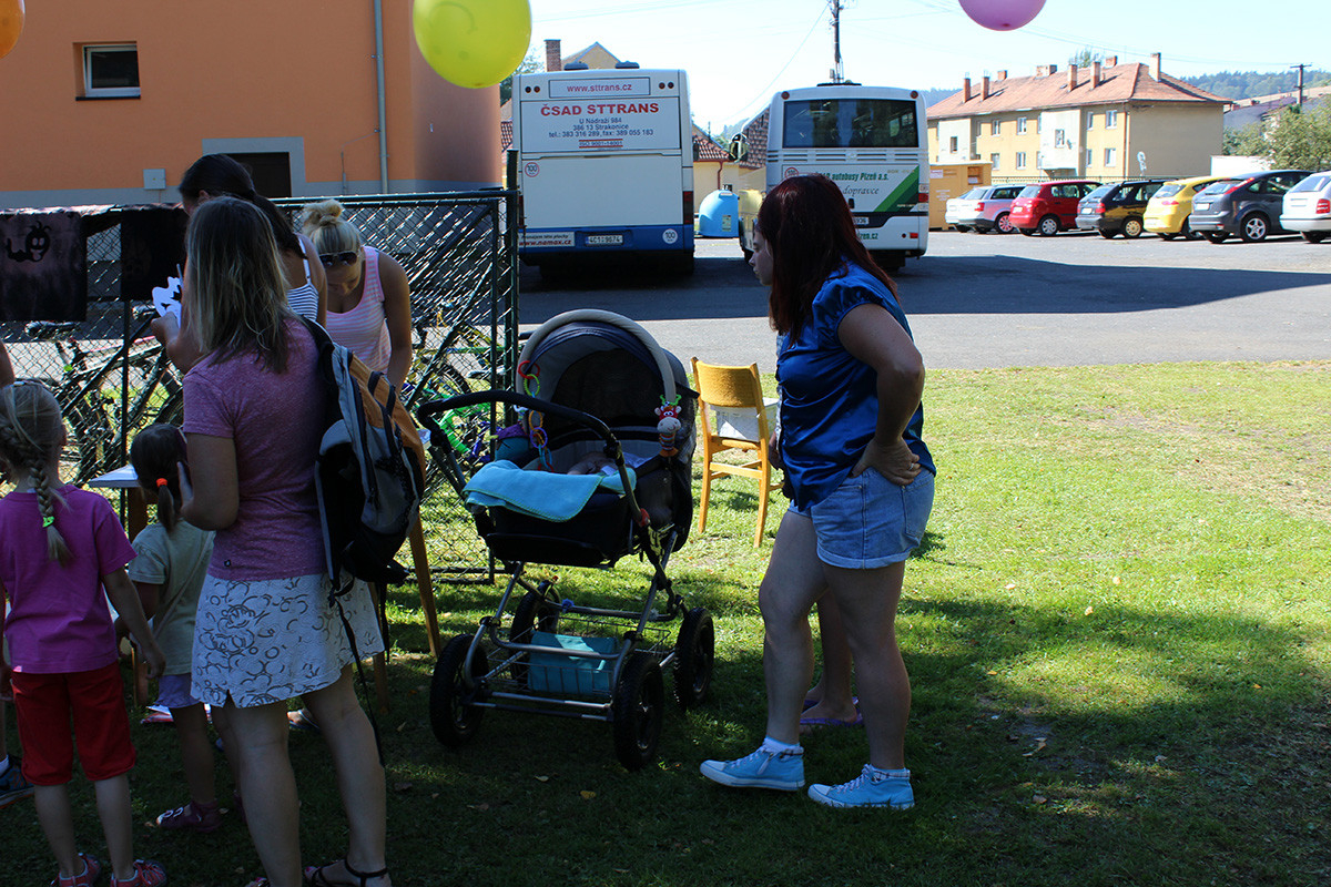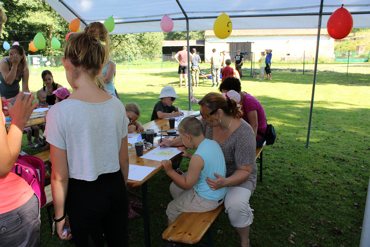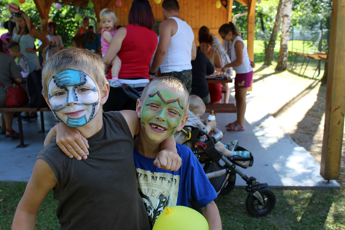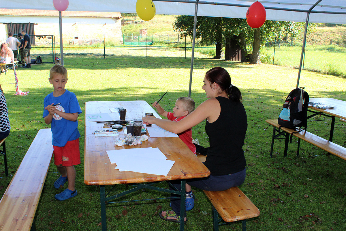 Letos bylo pro děti a jejich rodiče připraveno: tvoření mýdel nejrůznějších tvarů a barev, ukázka výroby šperků nejen z korálků a střelba z airsoftových zbraní. Tu si vyzkoušely nejen děti. Všichni z toho byli nadšení, střílelo se nejen na plechovky, ale i na terče v podobě divočáka. Tuto trofej si pak všichni mohli odnést domů a pochlubit se s ní. Ve volné chvilce jsme chtěli, aby nám i letos děti nakreslily na čtvrtku, co nejhezčího zažily o prázdninách. Za obrázky děkujeme, všechny jsme si je schovali a opravdu se moc, moc povedly. Ani letos nemohlo chybět oblíbené malování na obličej. Naše „kosmetičky“ (Eva Kubová, Vladislava Růtová, Kateřina Růtová) odvedly výbornou práci, a tak po hřišti pobíhala spousta motýlků, koček, princezen, krvavých příšer a ostatních druhů zvířátek. Nakonec si děti nenechávaly pomalovat jen obličej, ale i další části těla.