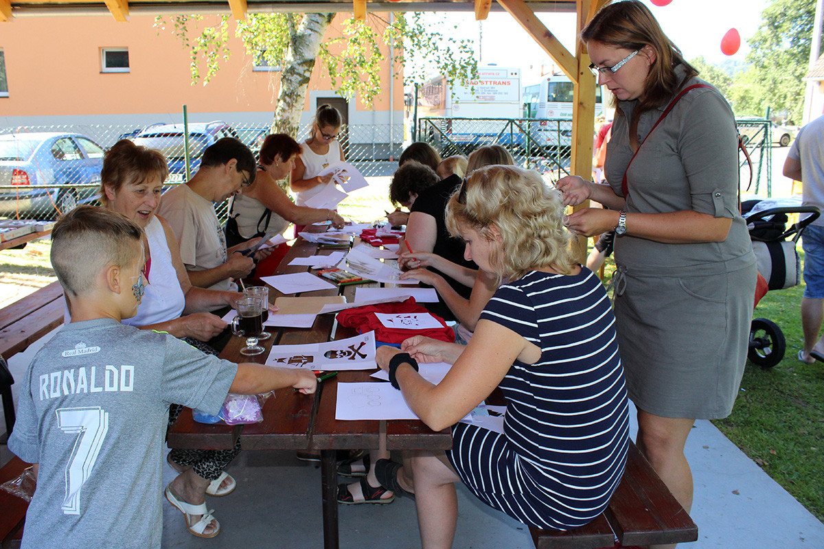 Každému dítěti jsme při příchodu daly sytě barevné tričko (červené, modré nebo černé) podle jeho velikosti. To si v průběhu dopoledne mohly ozdobit různými obrázky a nápisy, které se pak postříkaly savem. Savované tričko se přepralo ve vodě a nechalo oschnout. Aby děti neodešly domů hladové, byly pro ně i rodiče k obědu připraveny na opečení vuřty a klobásy. Děti odcházely spokojené, z čehož jsme měli největší radost.
