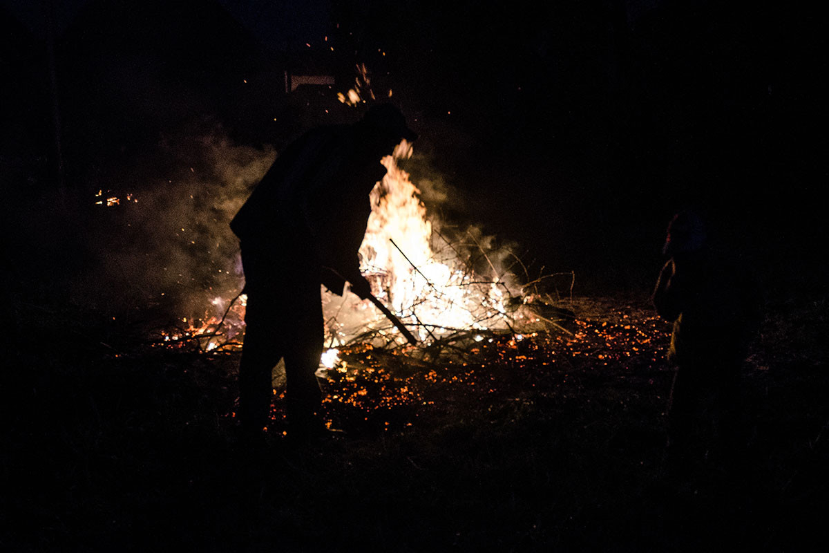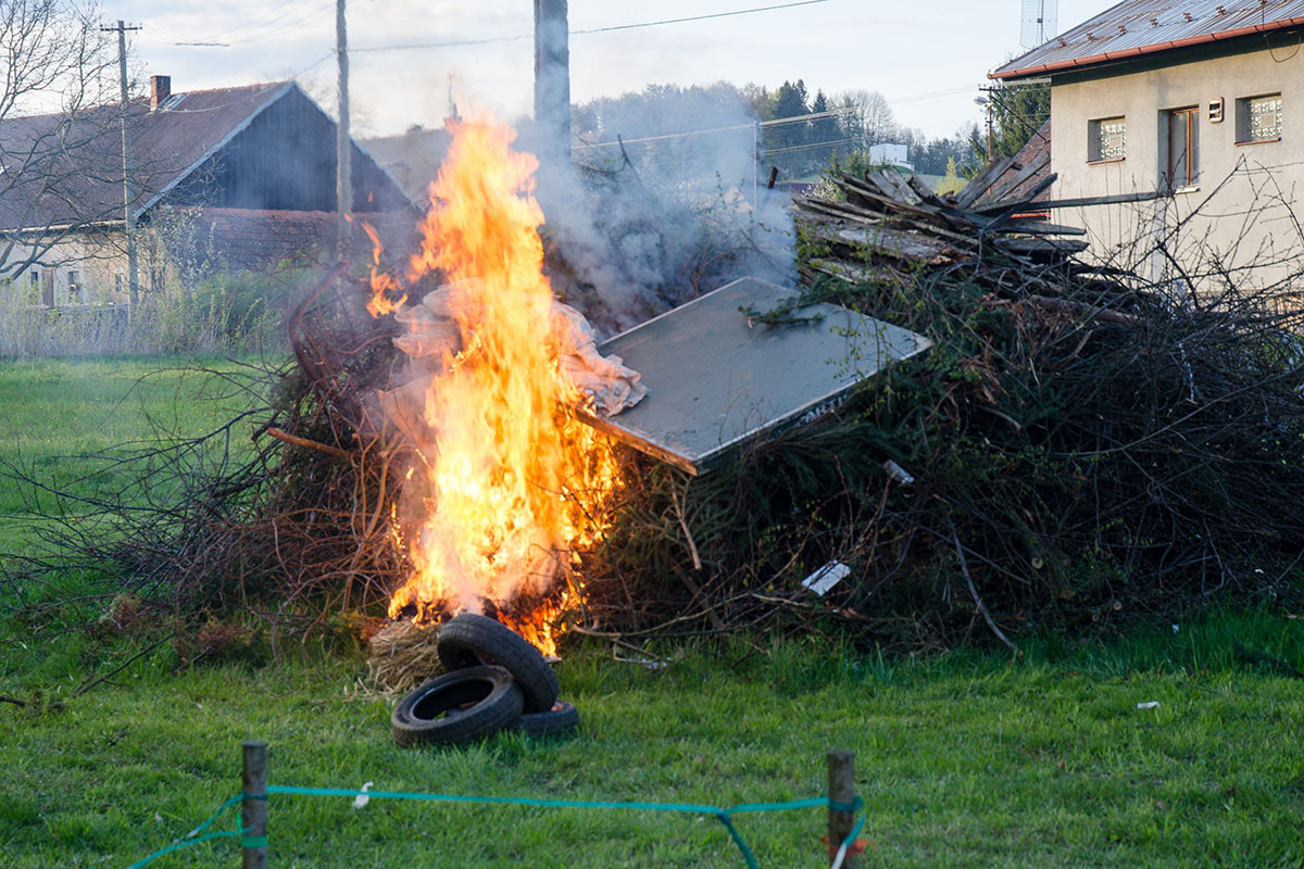 Každoroční tradice přilákala k hořícímu ohni velkou část dožických obyvatel.