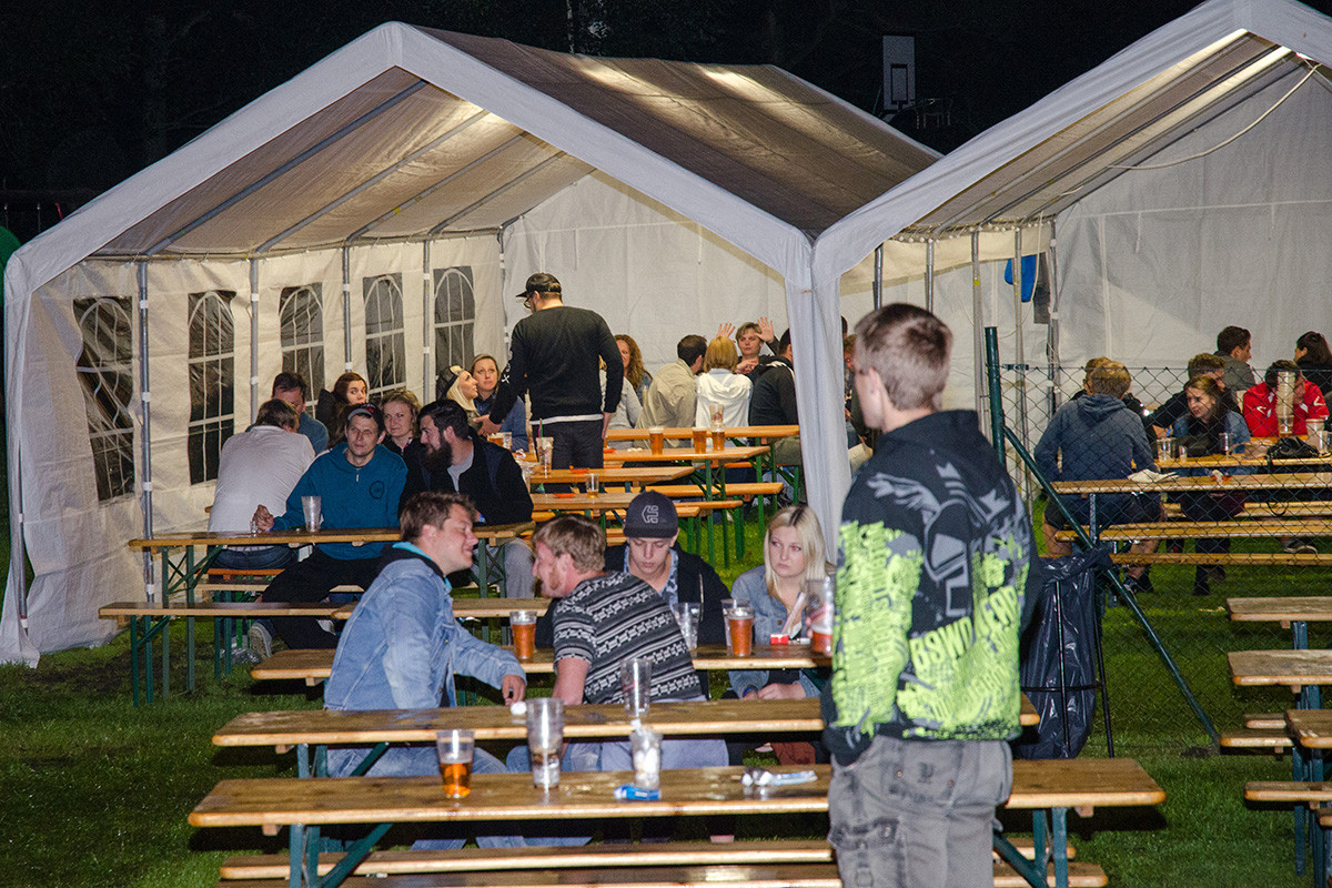 Šenkýři a šenkýřky, vybavení posilami, se otáčeli u píp a nálevny něčeho ostřejšího, na roštu se pak otáčely klobásky, pekla sekaná a nechyběly kuřecí steaky.