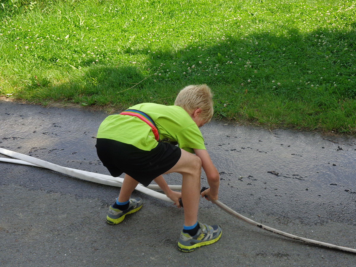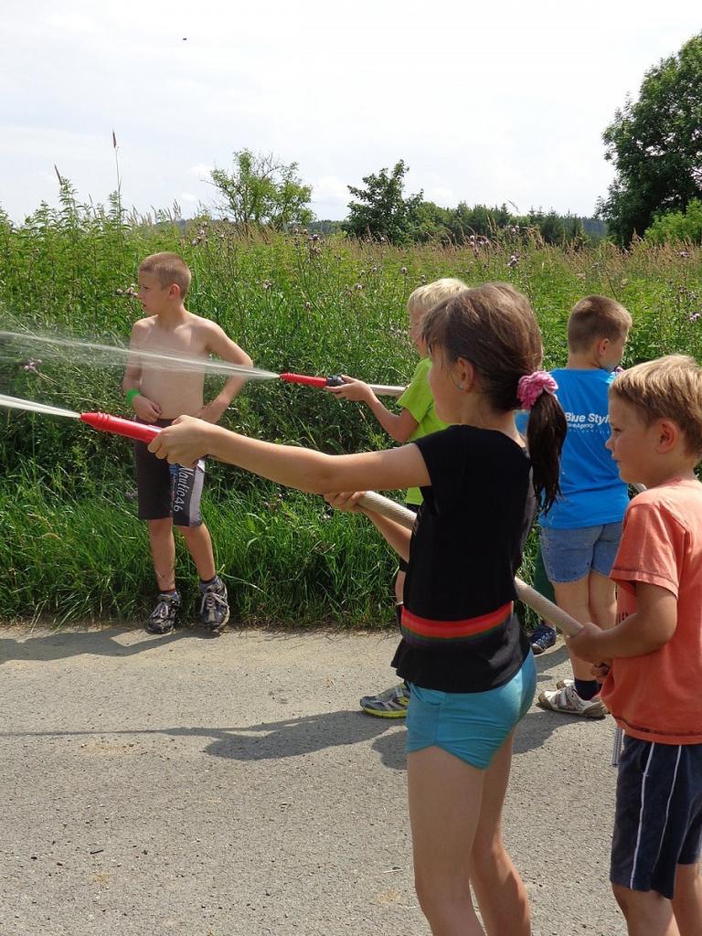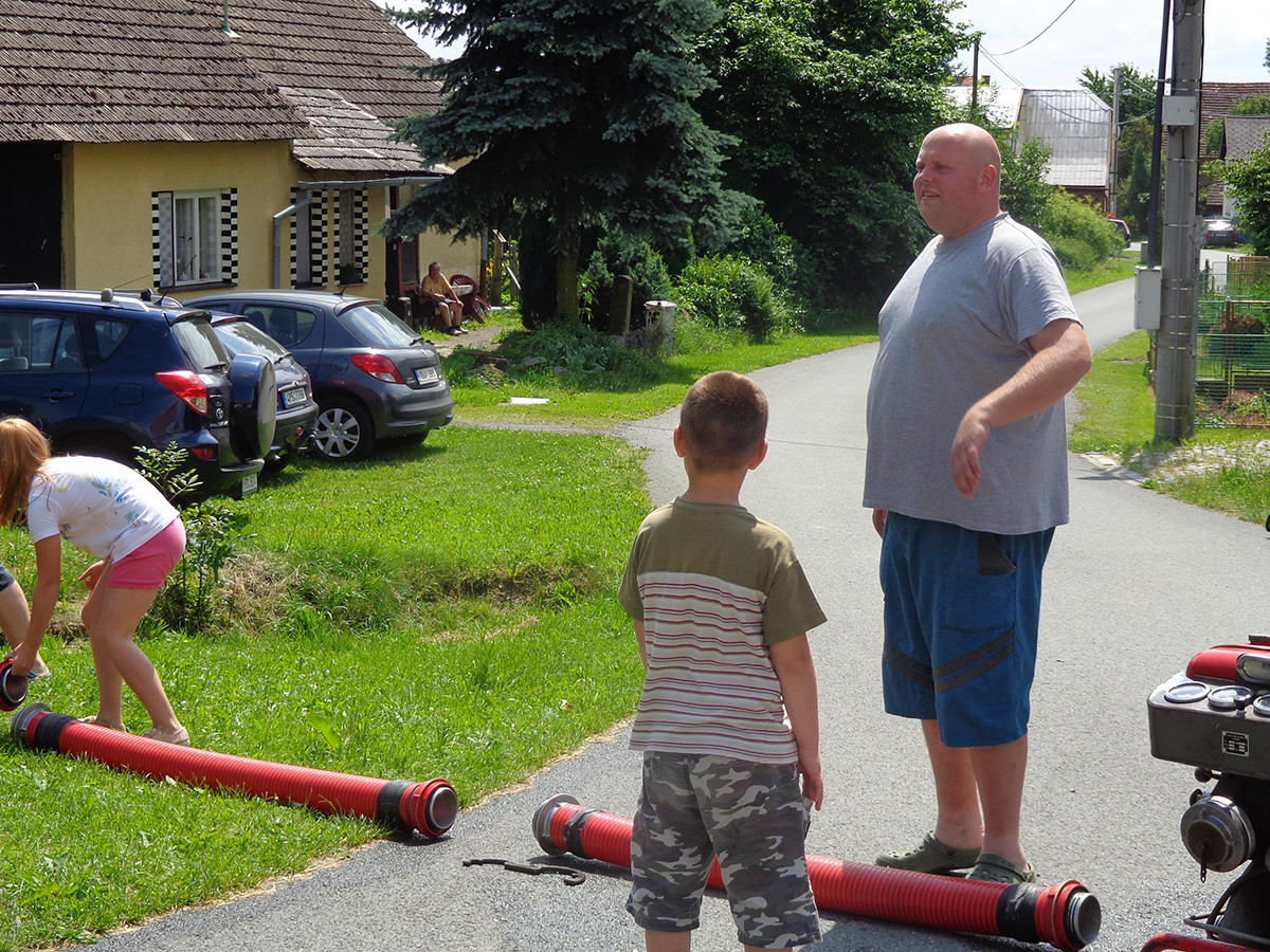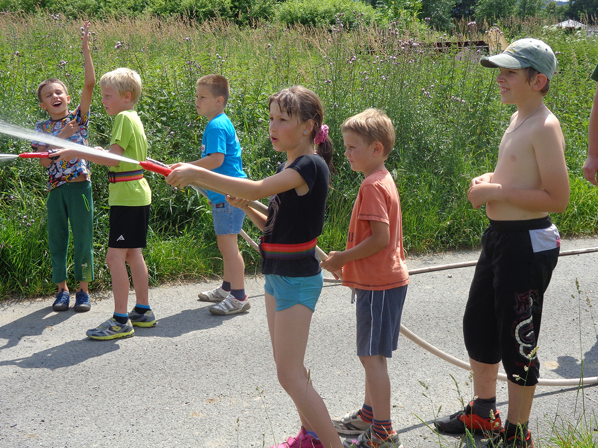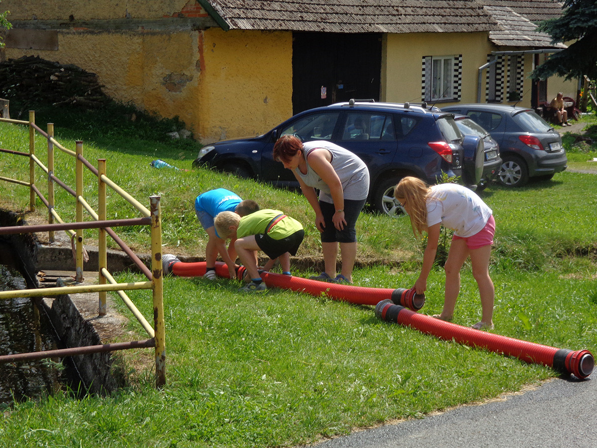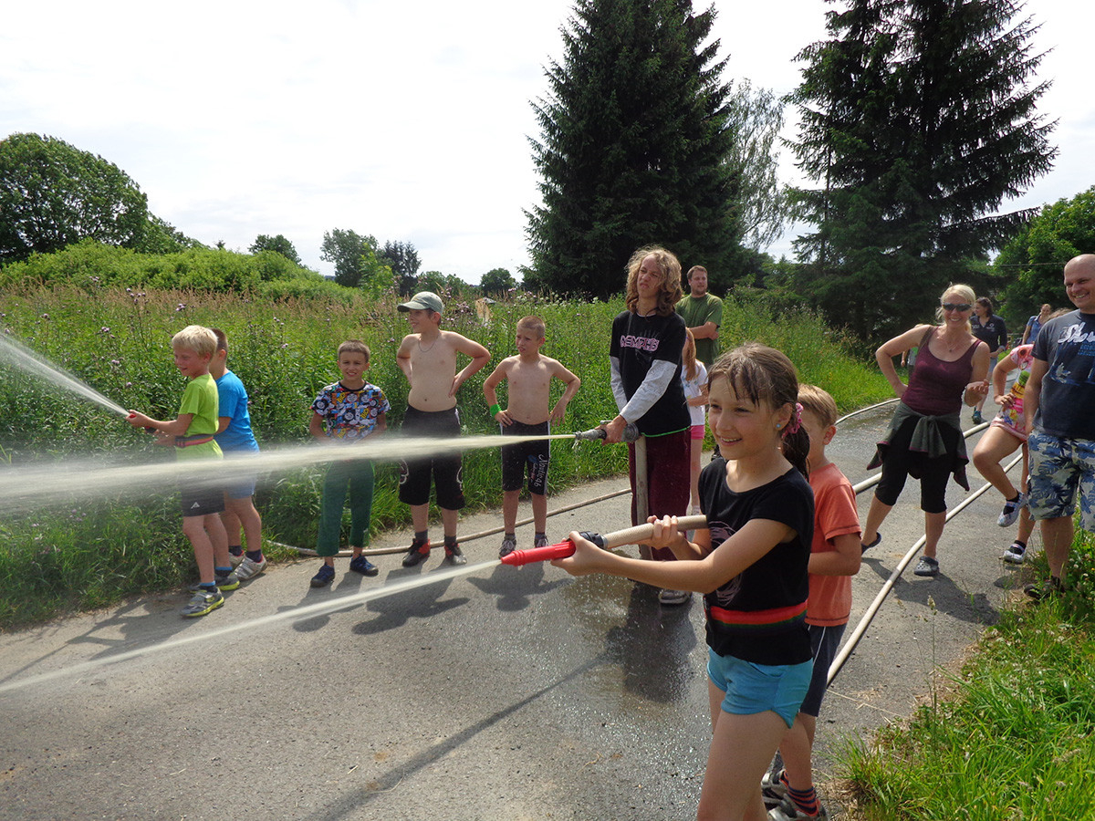 Úderem 14. hodiny už zde netrpělivě postávala obě družstva dětí, dospělí hasiči jim připravovali základnu a pyšné maminky netrpělivě sledovaly své ratolesti. Odstartováno bylo sirénou a po jejím doznění vyběhlo nejdříve družstvo starších dětí. Jejich úkol byl jasný, uhasit hořící balík slámy. Děti předvedly výborný útok, plameny z hořícího balíku byly uhašeny během chvilky. V zápalu boje pak začaly stříkat po sobě navzájem, což je očividně bavilo ještě více.