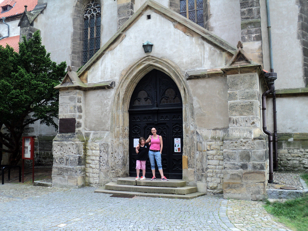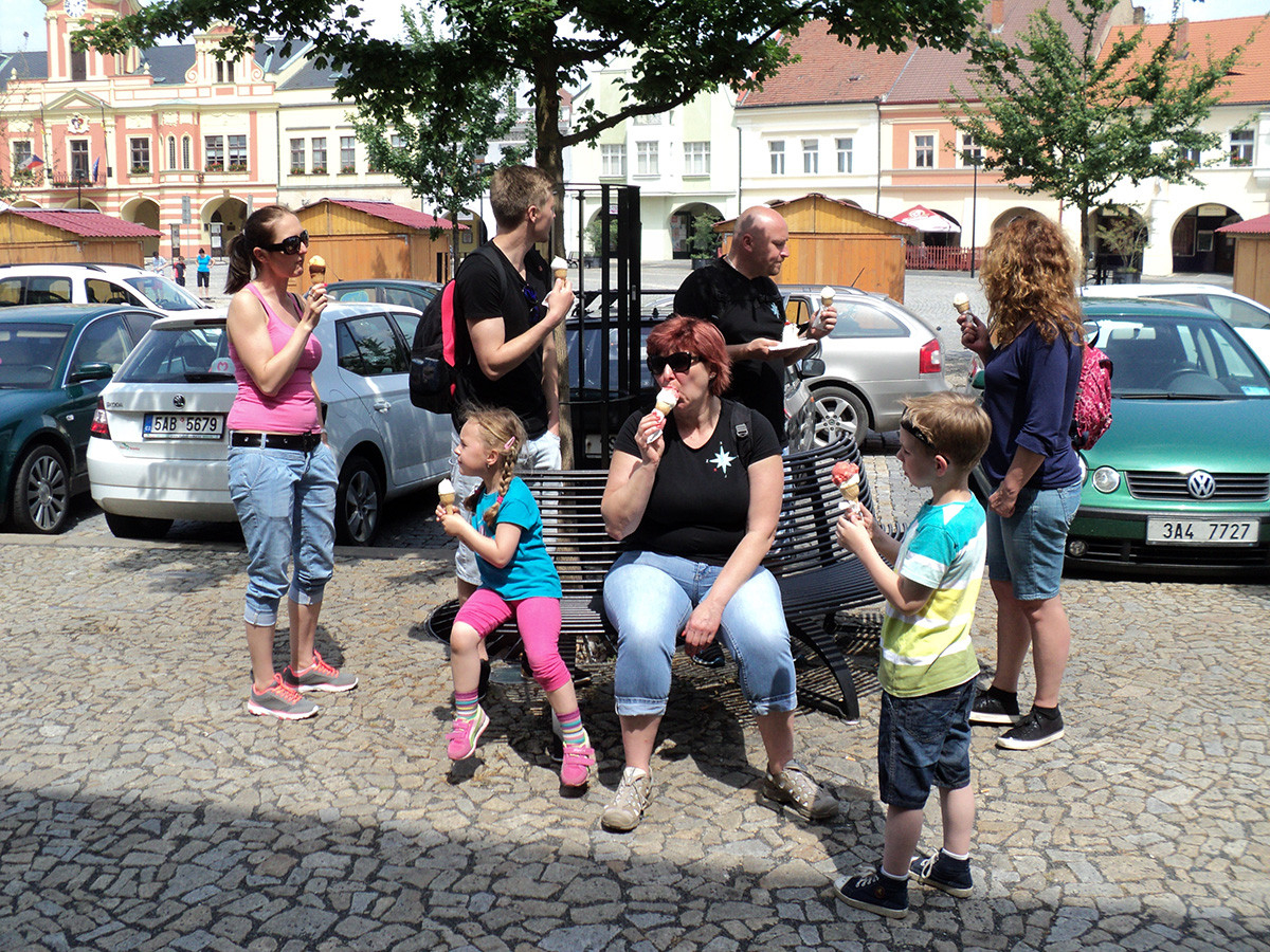 Po šesti kilometrech dlouhé stezce na nás opět čekal autobus, který nás zavezl do nedalekého Mělníka, kde Honza zavelel rozchod na oběd a všichni se hned rozeběhli do nejbližších hospod a restaurací. Já jsem si vybrala restauraci U Piráta. Vše bylo dobové a nakonec i jídlo bylo vynikající. Po tak krásné procházce vytráví snadno. Zbývalo ještě trochu času, tak jsem zašla do místní kostnice. Musím říct, že to bylo velmi zajímavé. V kostnici se nacházely kosti 15 000 osob složené do různých obrazců. Výklad trval 5 minut a byl velmi obsáhlý, takže jste se dozvěděli úplně vše.