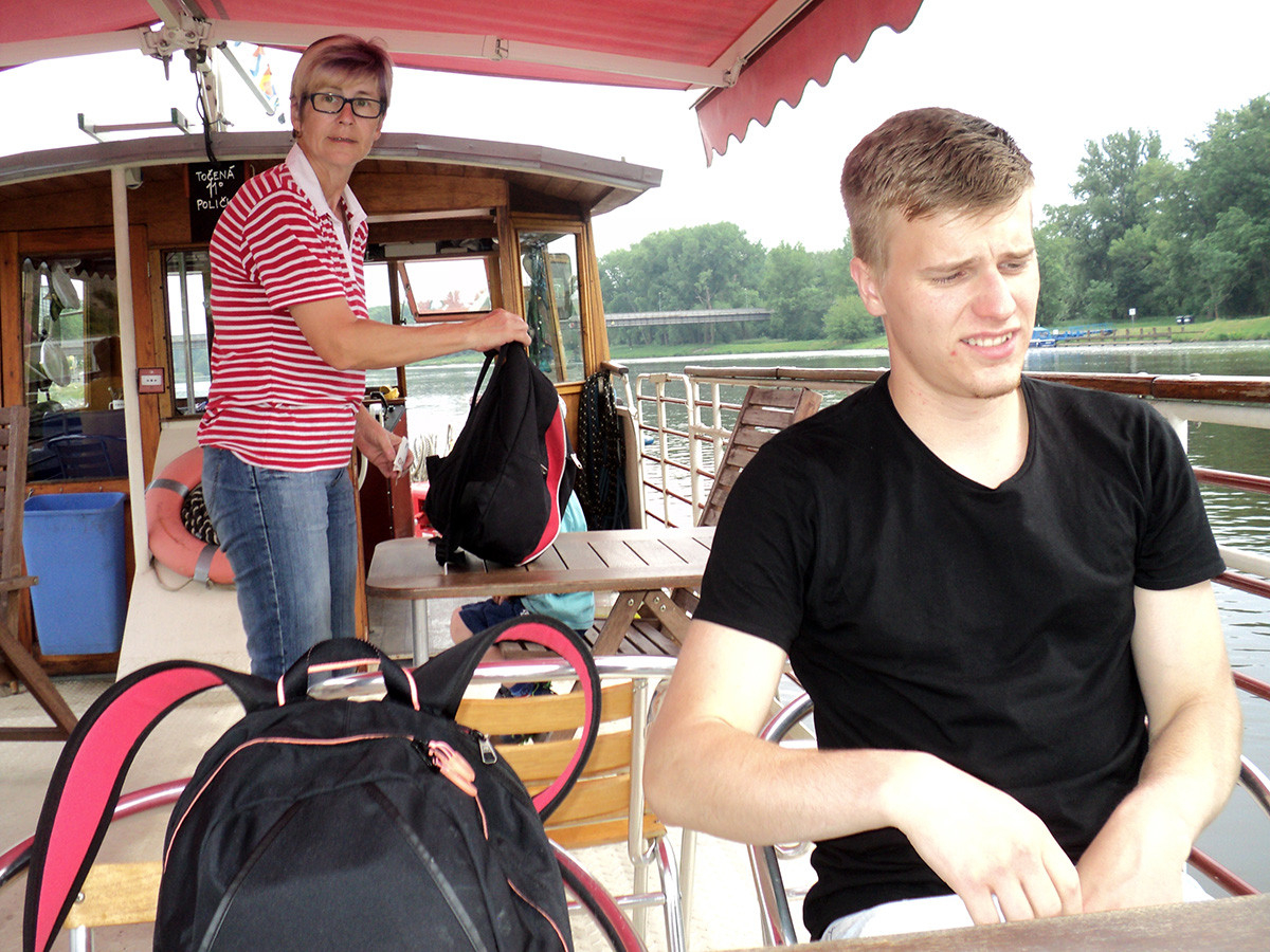 Po této prohlídce se druhá skupina vydala do nedalekého přístavu, kde jsme ve čtyři hodiny nasedli na loď a nechali se hýčkat kapitánem, který se o nás staral báječně. Z lodi jsme mohli vidět starý cukrovar a vinice místních vinařů. Děti si mohly hrát v podpalubí, kde měly k dispozici hračky. Cesta ukolébala všechny účastníky a ti už se těšili do autobusu, až si odpočinou na cestě zpět. Já sama jsem klimbla asi na hodinu, jak mě výlet stahal.