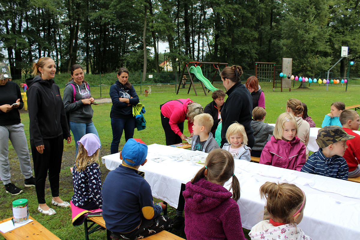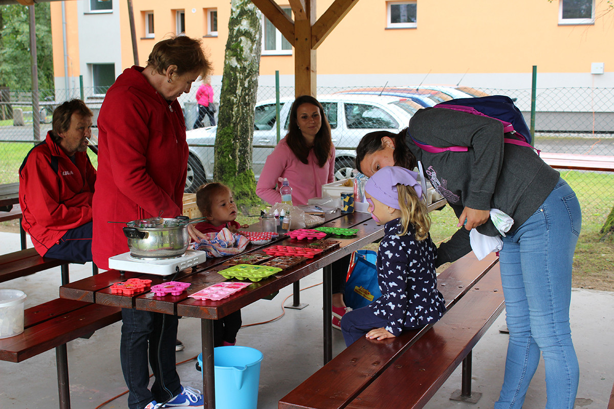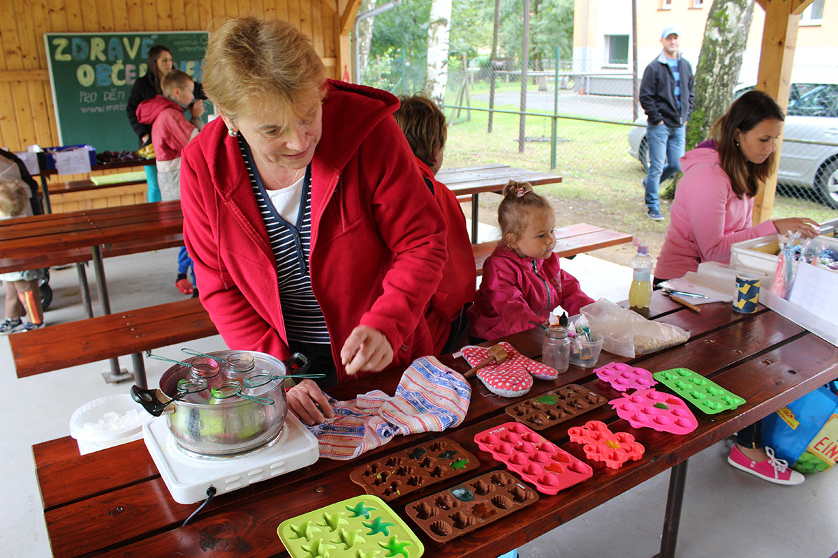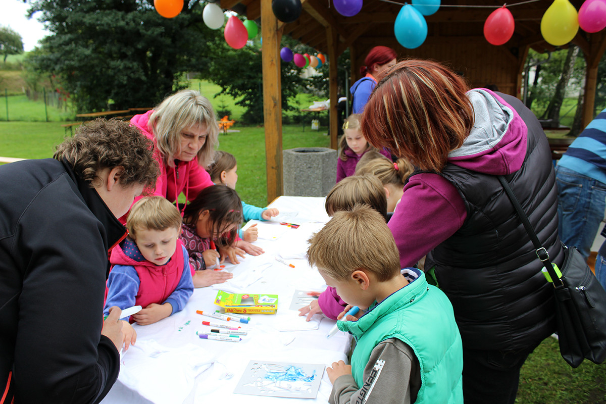 Ani letošní rok nebyl výjimkou. Tentokrát jsme se všichni organizátoři akce sešli v 9:00 hod na mladosmoliveckém hřišti a začali jsme s přípravou. Nanosily se stoly, nafoukly balonky a nechyběl ani oheň na tradiční opékání vuřtů. Při té příležitosti si jeden z organizátorů všiml, že z autobusu, který stojí vedle obecního úřadu, teče nafta z nádrže, paní starostka na nic nečekala a aby toho neměla málo, zavolala hasiče a policii, aby se vše dalo do pořádku. To jen pro informaci, aby nevznikly nepravdivé informace, nikomu se nic nestalo :-). Celá akce začala v 10:00 hodin, rodiče se začali pomalu scházet i se svými ratolestmi, právě pro ně byl tento den. Každé z dětí dostalo hned při příchodu tričko, které si dle své fantazie ozdobilo. Ani letos nechybělo malování na obličej a výroba voňavých mýdel. Na konci hřiště se objevila i střelba na terč, která se líbila zejména klukům. I letos jsme měli možnost ochutnat i zdravé svačinky, zdravě si zamlsat a to díky Martině Korejčkové, která pro nás připravila opravdu dobré pohoštění. Myslím, že si děti svůj den opravdu užily. Celá akce skončila v 12:15, takže každý z návštěvníků měl možnost vyrazit do nedalekých Dožic, kde se také konal konec prázdnin. Měla jsem velký strach, díky pátečnímu počasí, abychom nepromokli, ale štěstí nám přálo a pršet začalo až při úklidu. Měla jsem z toho velkou radost. Doufám, že se příští rok zase sejdeme a my se pokusíme vymyslet pro naše nejmenší zase něco nového.
