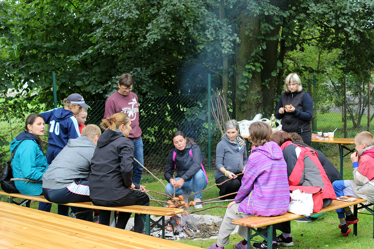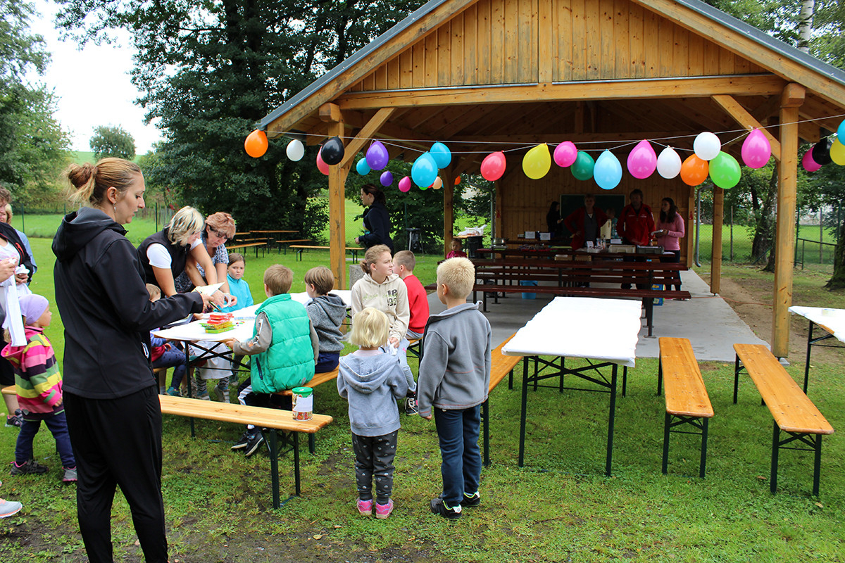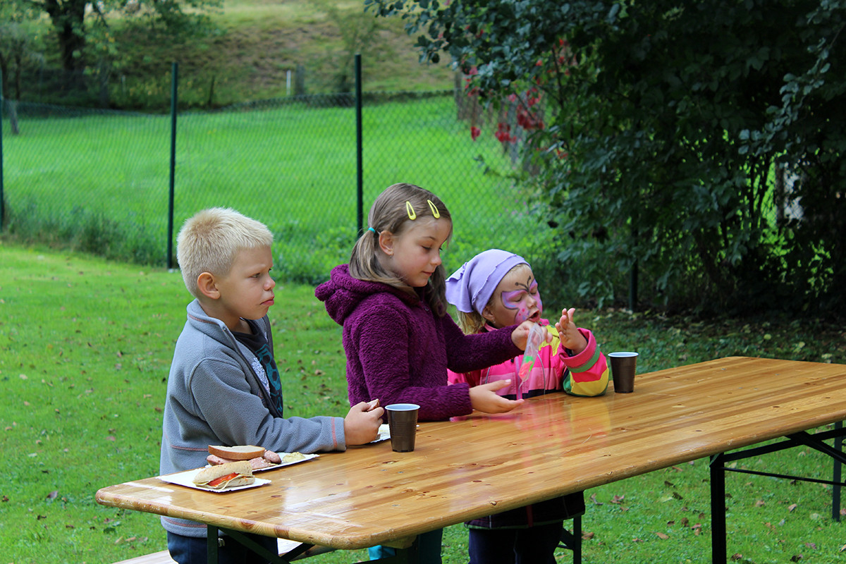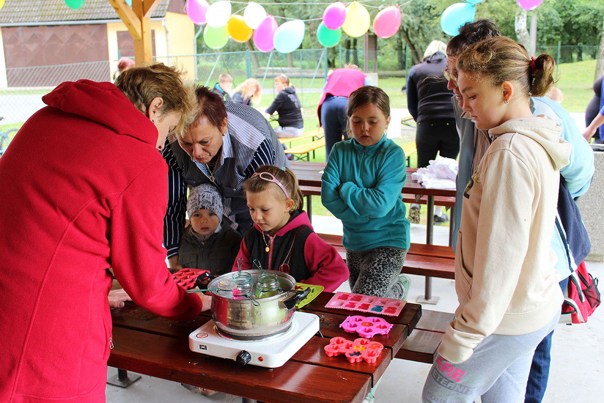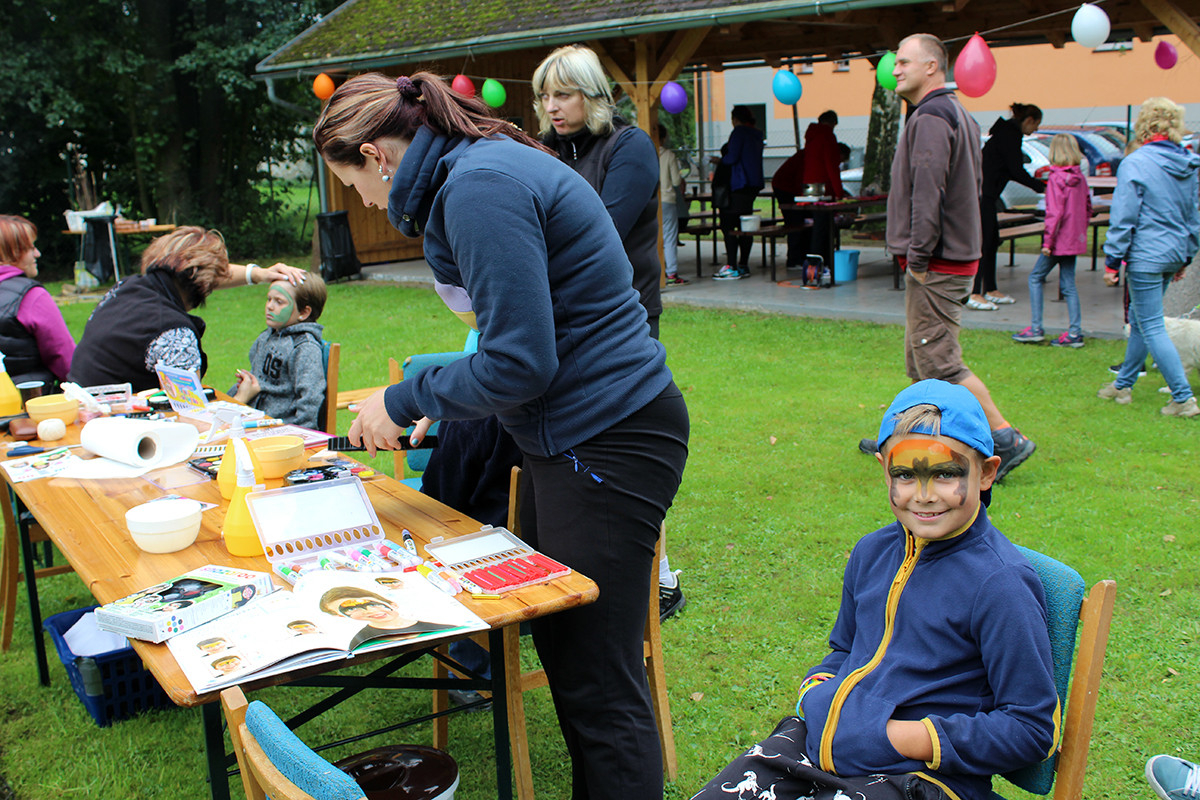 Ani letošní rok nebyl výjimkou. Tentokrát jsme se všichni organizátoři akce sešli v 9:00 hod na mladosmoliveckém hřišti a začali jsme s přípravou. Nanosily se stoly, nafoukly balonky a nechyběl ani oheň na tradiční opékání vuřtů. Při té příležitosti si jeden z organizátorů všiml, že z autobusu, který stojí vedle obecního úřadu, teče nafta z nádrže, paní starostka na nic nečekala a aby toho neměla málo, zavolala hasiče a policii, aby se vše dalo do pořádku. To jen pro informaci, aby nevznikly nepravdivé informace, nikomu se nic nestalo :-). Celá akce začala v 10:00 hodin, rodiče se začali pomalu scházet i se svými ratolestmi, právě pro ně byl tento den. Každé z dětí dostalo hned při příchodu tričko, které si dle své fantazie ozdobilo. Ani letos nechybělo malování na obličej a výroba voňavých mýdel. Na konci hřiště se objevila i střelba na terč, která se líbila zejména klukům. I letos jsme měli možnost ochutnat i zdravé svačinky, zdravě si zamlsat a to díky Martině Korejčkové, která pro nás připravila opravdu dobré pohoštění. Myslím, že si děti svůj den opravdu užily. Celá akce skončila v 12:15, takže každý z návštěvníků měl možnost vyrazit do nedalekých Dožic, kde se také konal konec prázdnin. Měla jsem velký strach, díky pátečnímu počasí, abychom nepromokli, ale štěstí nám přálo a pršet začalo až při úklidu. Měla jsem z toho velkou radost. Doufám, že se příští rok zase sejdeme a my se pokusíme vymyslet pro naše nejmenší zase něco nového.