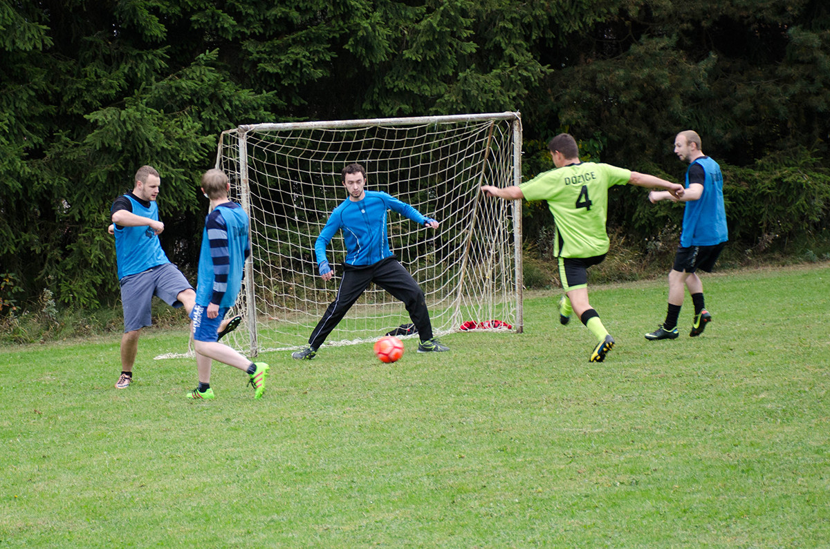 Posekaný trávník, „nalajnovaná“ hřiště a výrazné rohové praporky očekávaly v Dožicích první fotbalové zápasy. Hlavní pořadatelky těsně před zahájením zaregistrovaly 8 týmů, jejichž hráči si cestu na turnaj našli i z poměrně vzdálených končin našeho okresu. Slavnostní nástup, doladění pravidel a první družstva nastoupila k úvodním duelům. Hrálo se na dvě skupiny, ze kterých první dva týmy postoupily do semifinále, ze kterého vzešel boj o místo 3. a samozřejmě nejvíce očekávaný zápas o zlato. Souboje se odehrávaly na třech krátkých hřištích pod bedlivým dozorem rozhodčích, po jejichž ukončení následovalo sportovní blahopřání vítězům. O tom, že se hrálo čistě, svědčí pouze jedna odpískaná penalta a žlutou kartu vytáhl arbitr také jen jedinkrát.