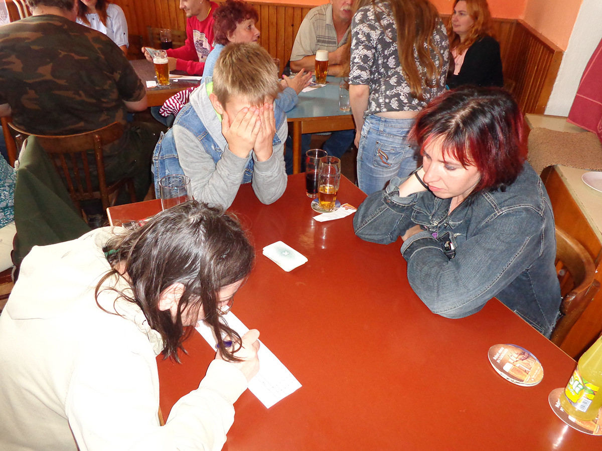 Hry rychle utíkaly, najednou jsme si přesedávali k poslednímu stolu a než jsme se nadáli, zazněl poslední výkřik „Prší!“. Sečetli jsme body a netrpělivě očekávali, jak jsme se tedy vlastně umístili. Čekání na výsledky nám zkrátila večeře, chvíli po 17. hodině se před námi objevil vepřový řízek se šťouchanými bramborami (někteří z návštěvníků zvolili raději chléb).