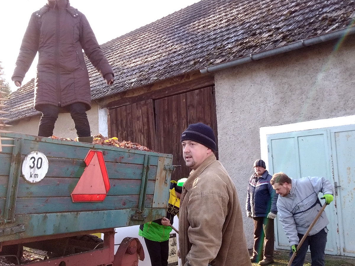 Tato brigáda byla pod záštitou hasičů z Budislavic, ale pomoci přišlo i dost místních spoluobčanů a chalupářů, kterým není naše vesnice lhostejná. Hřbitov byl od listí uklizen kolegy z Mladého Smolivce, a tak se mohlo začít při cestě dolů a od fary k rybníčku podedvorem. Nevětší patálie byla s nakládáním, které zabralo nejvíce času, ale i s tím si místní společně poradili a ve 12.30 odjížděl poslední náklad. Po ukončení ještě někteří zašli na polední kávu do místního hostince a rozešli se k domovu. Závěrem se sluší moc poděkovat všem zúčastněným a snad je i trochu nalákat na příští rok, neboť bylo domluveno, že příští brigádu na listí završíme opékáním buřtů.
