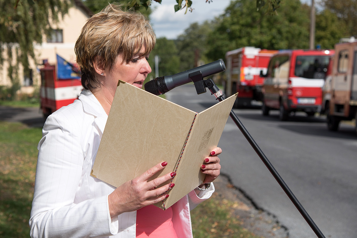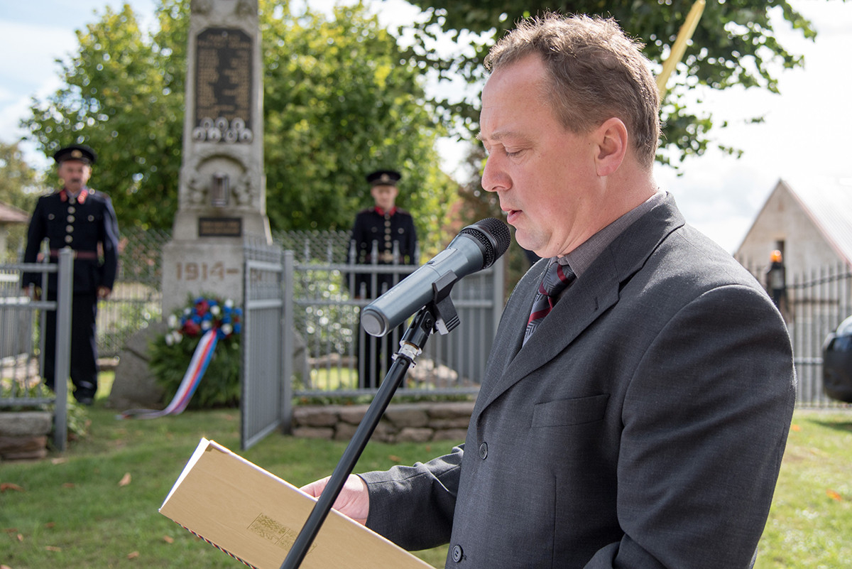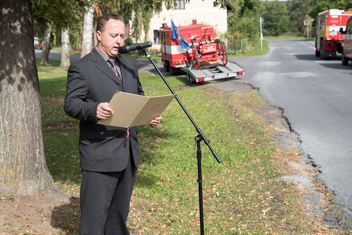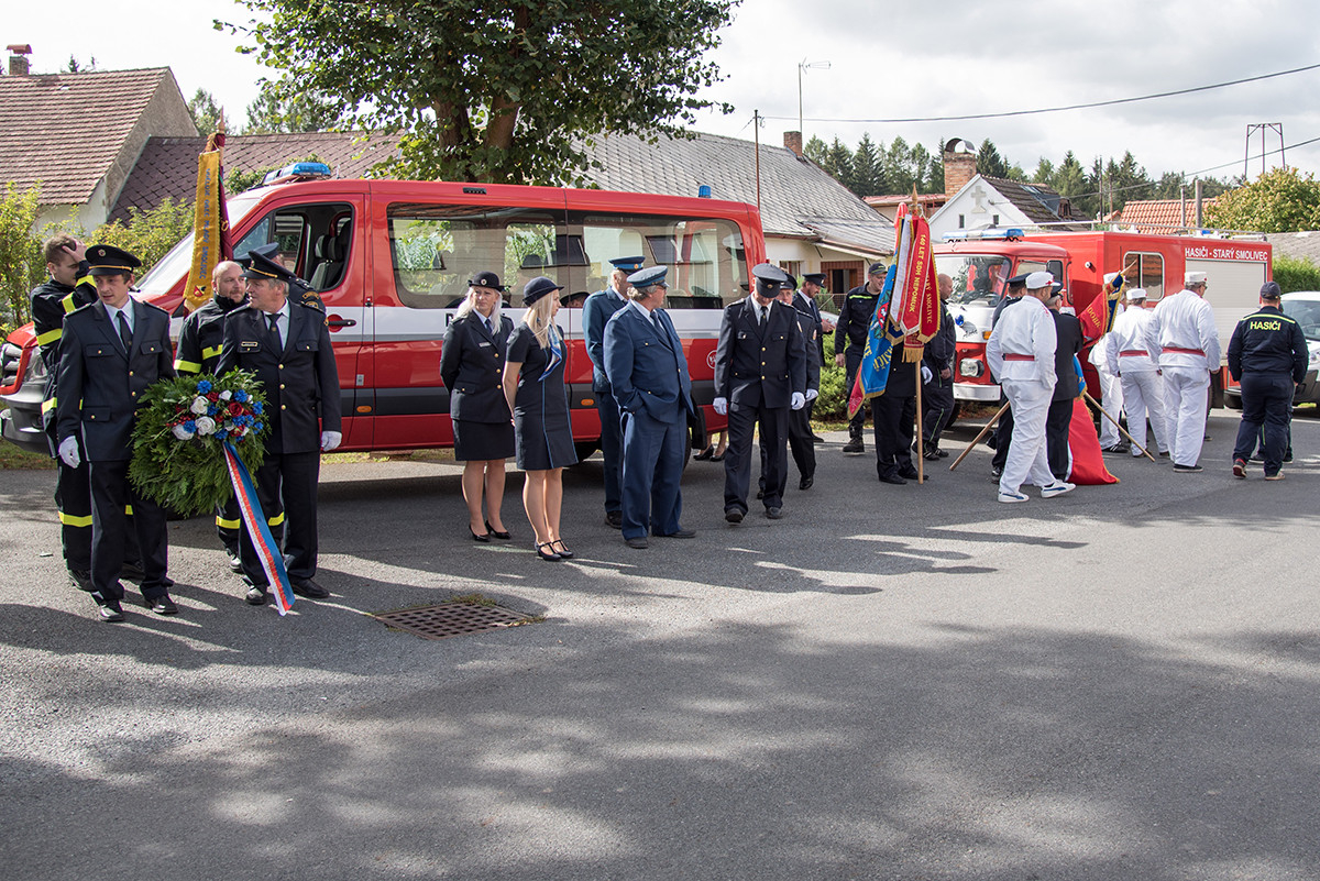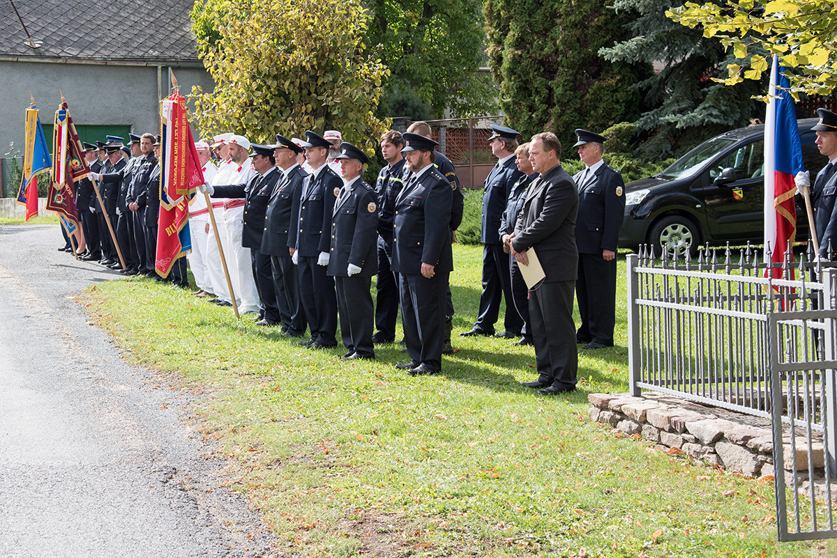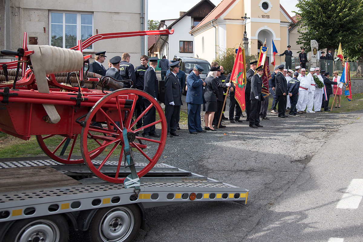 Nicméně zpět k průběhu pietní akce. „Domácí“ hasiči (tedy hasiči ze sboru dané obce, ve které jsme se aktuálně nacházeli) položili věnec na pomník padlých v 1. světové válce. Dále zazněla státní hymna. Poté všechny přítomné přivítala starostka obce, paní Eva Kubová a připojila několik slov úvodem a svým povídáním nás přenesla do dob minulých, konkrétně do roku 1918. Dále mluvila o uplynulých 100 letech a životě v tomto období. V její dojemné řeči ji vystřídal místostarosta obce, pan Jan Spour. Ten přítomným nastínil válečnou situaci a stručný výtah ze zápisků, které čerpal z místních kronik jednotlivých obcí. Poté znovu předal slovo paní starostce, která ocenila jednotlivě každý hasičský sbor za jejich obětavost a péči o svou obec. Následně pietní akci pozvolna ukončila a pozvala všechny přítomné na pietní akty do dalších vesnic a dále na odpolední program do Radošic.
