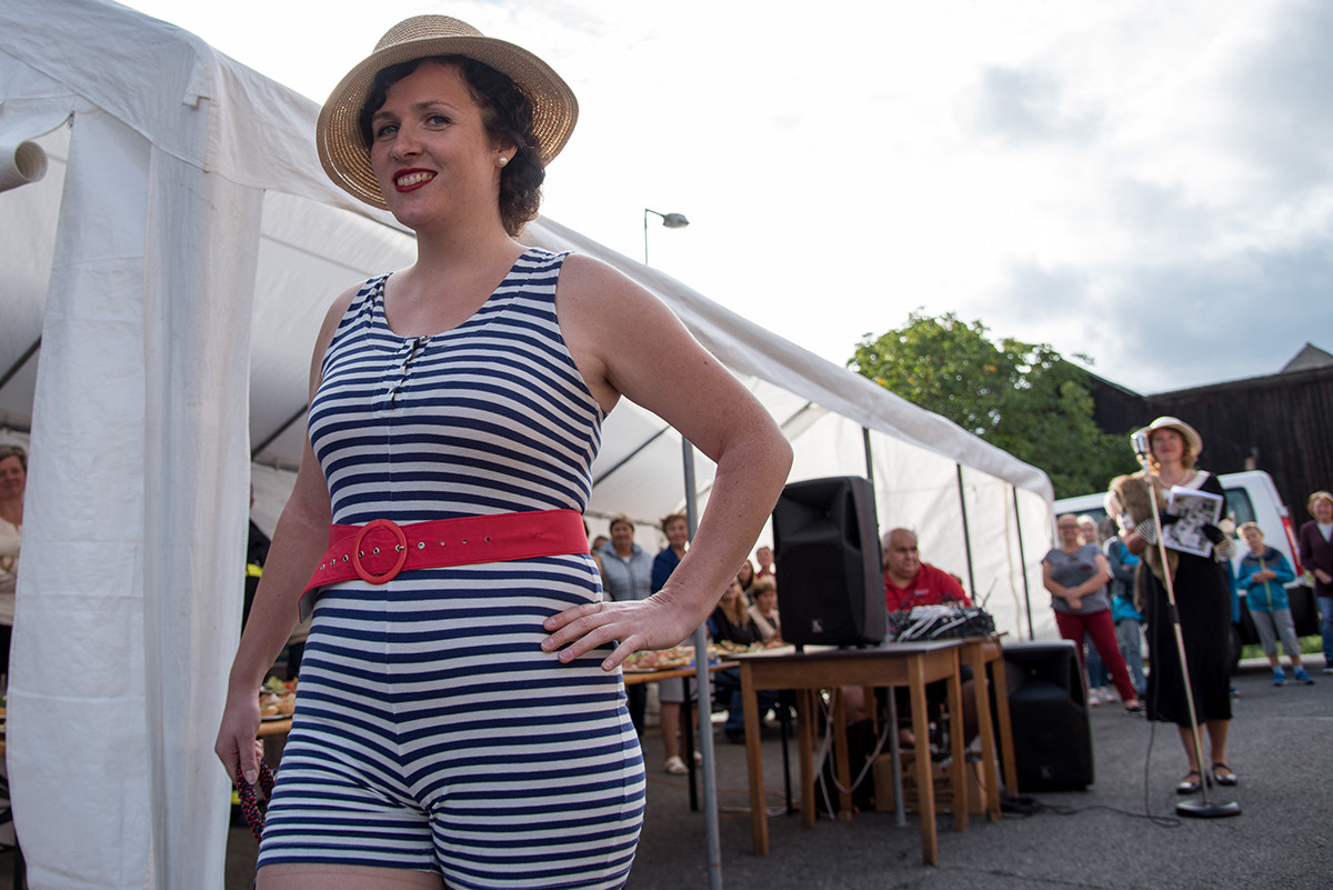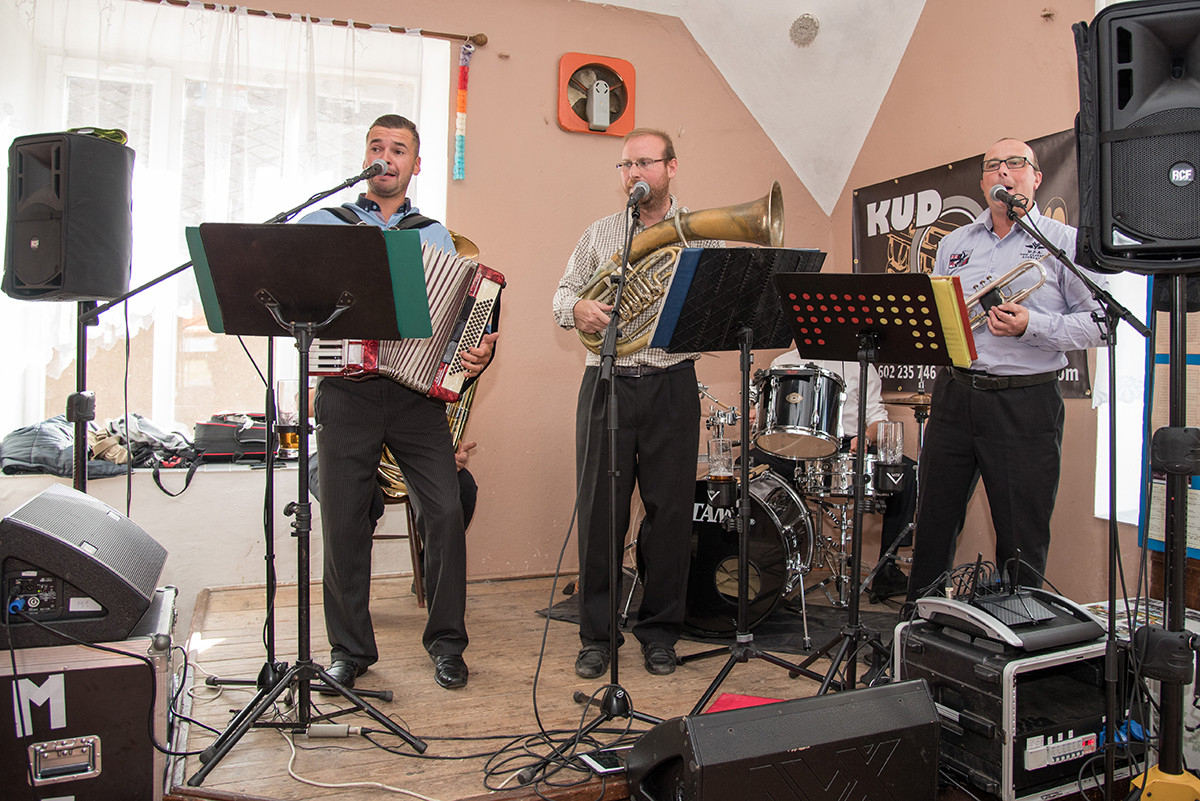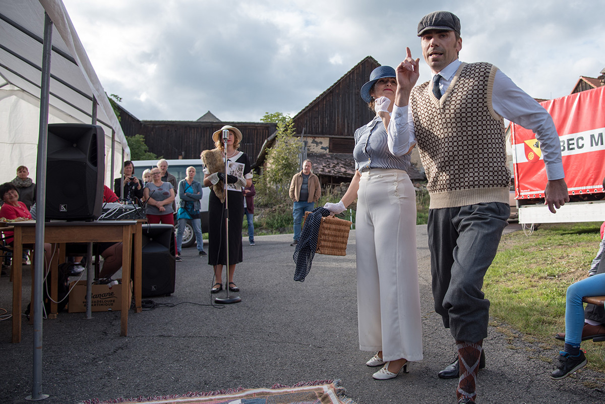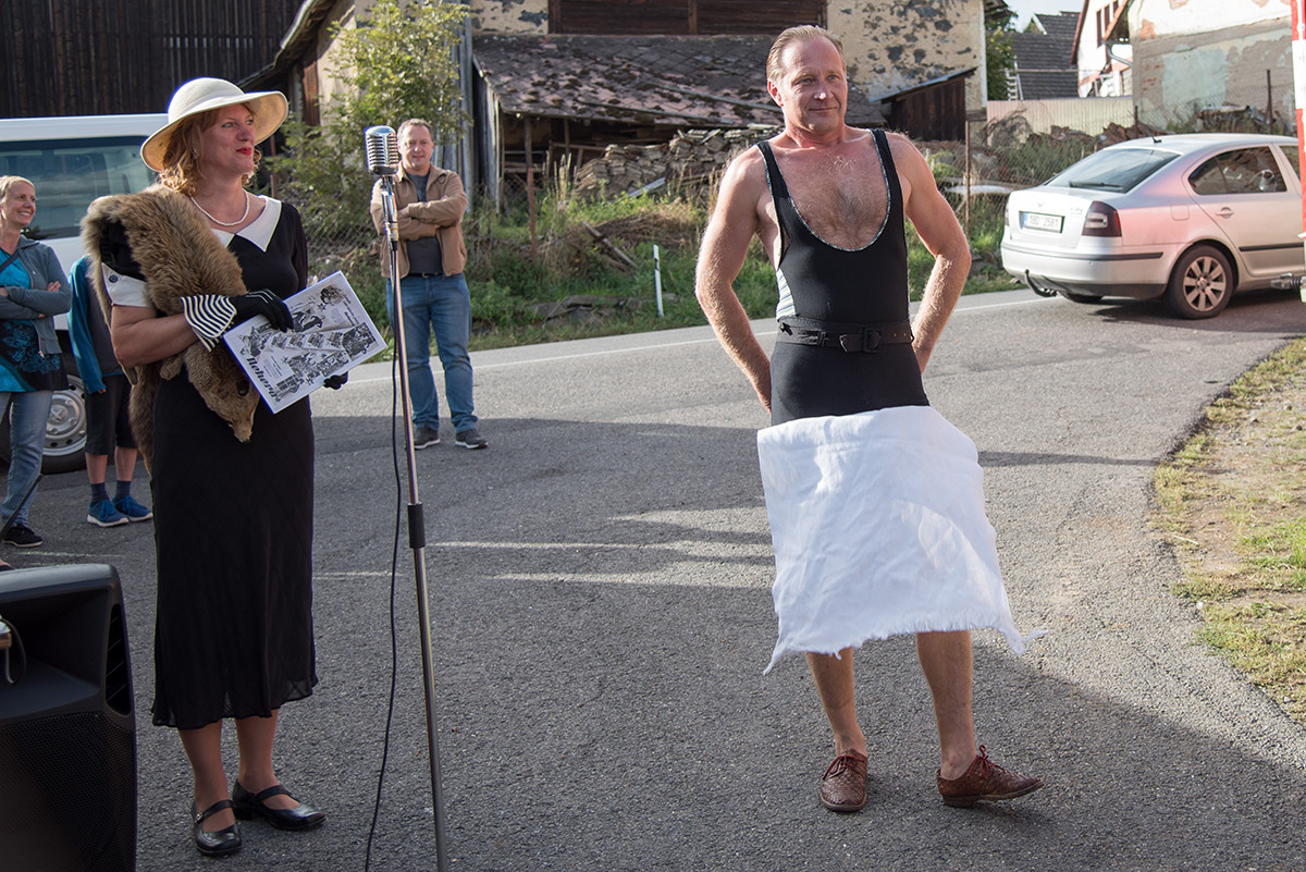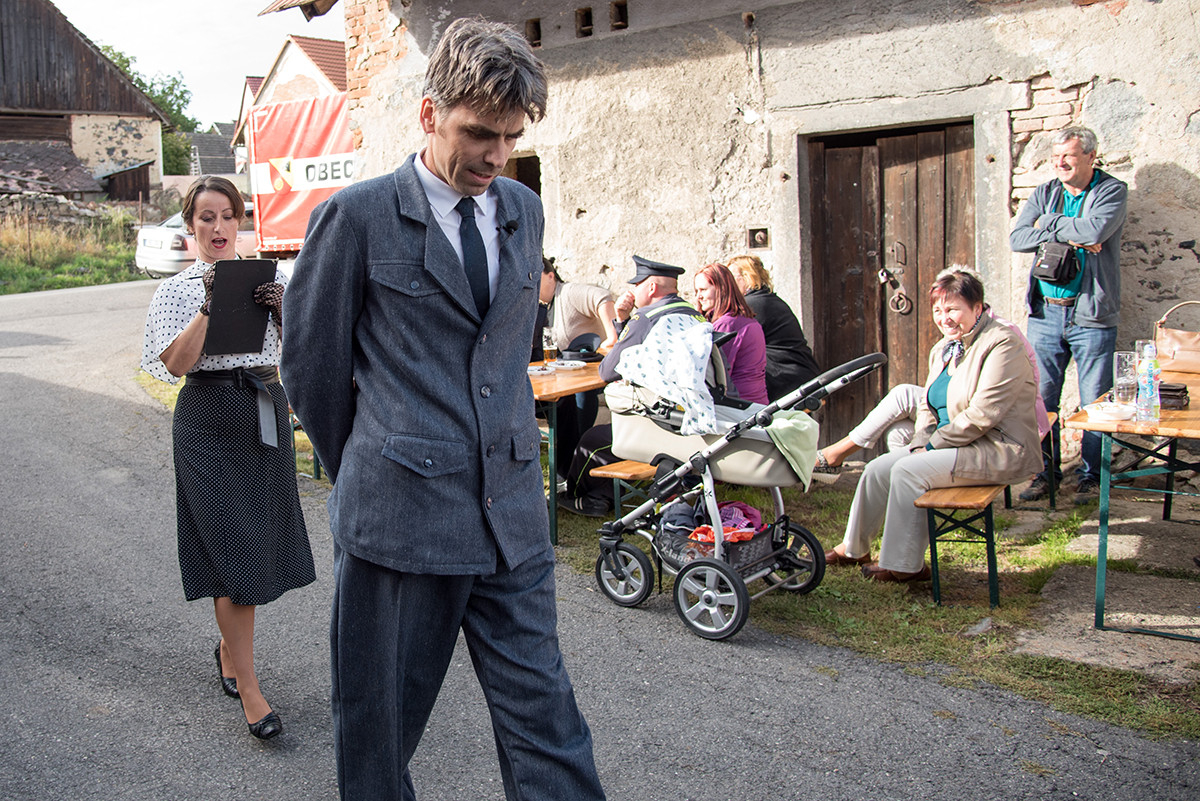 Po příchodu k radošické hospodě, kde byl naplánován zbytek programu, pro nás již bylo připraveno posezení a velké pohoštění v podobě rautu. Odpolední program pak zpestřila kapela Kudrnáči, která nás od 15:00 v místním sále doprovázela dechovou hudbou v našem veselí. Lehce po 16. hodině začalo představení divadla Orel, které nám odhalilo 30. léta minulého století. Mohli jsme si prohlédnout módu tehdejší doby, zkrátka jsme se stali svědky historie 30. let. Toto představení mělo mezi účastníky veliký ohlas. Po představení opět k poslechu a tanci hrála kapela Kudrnáči až do 19. hodiny.