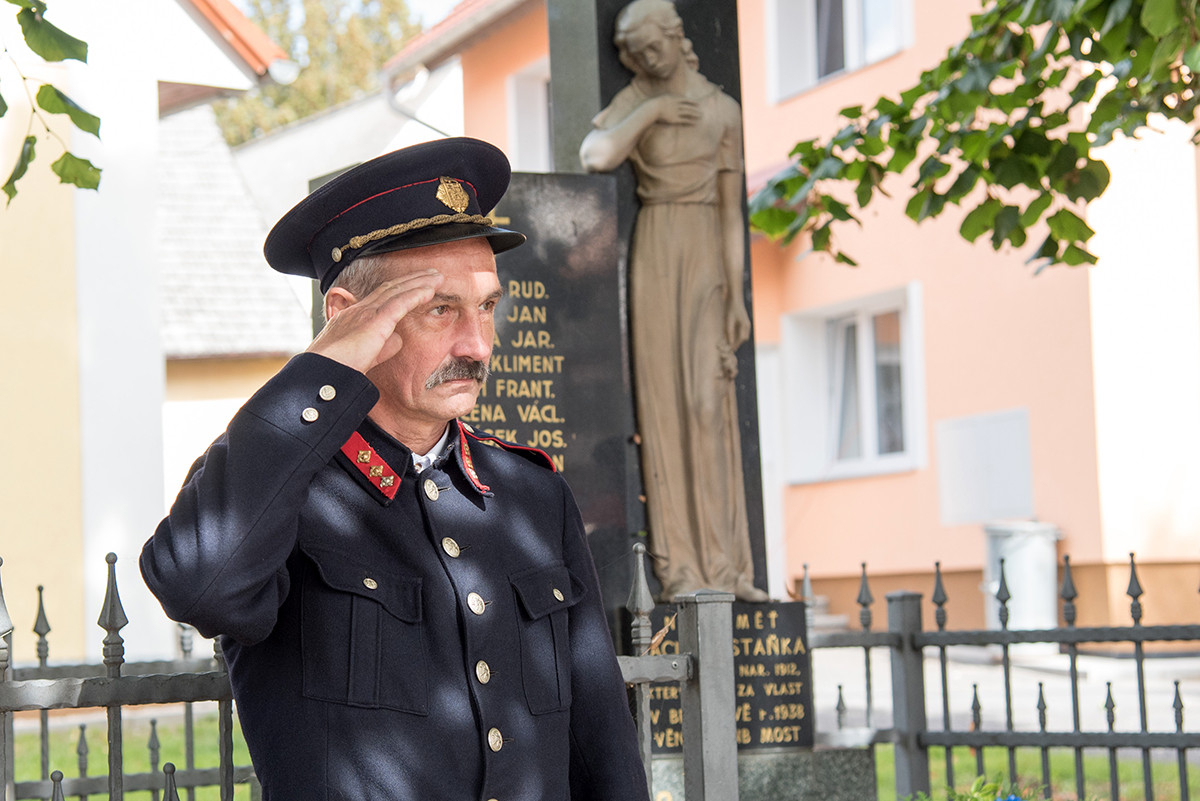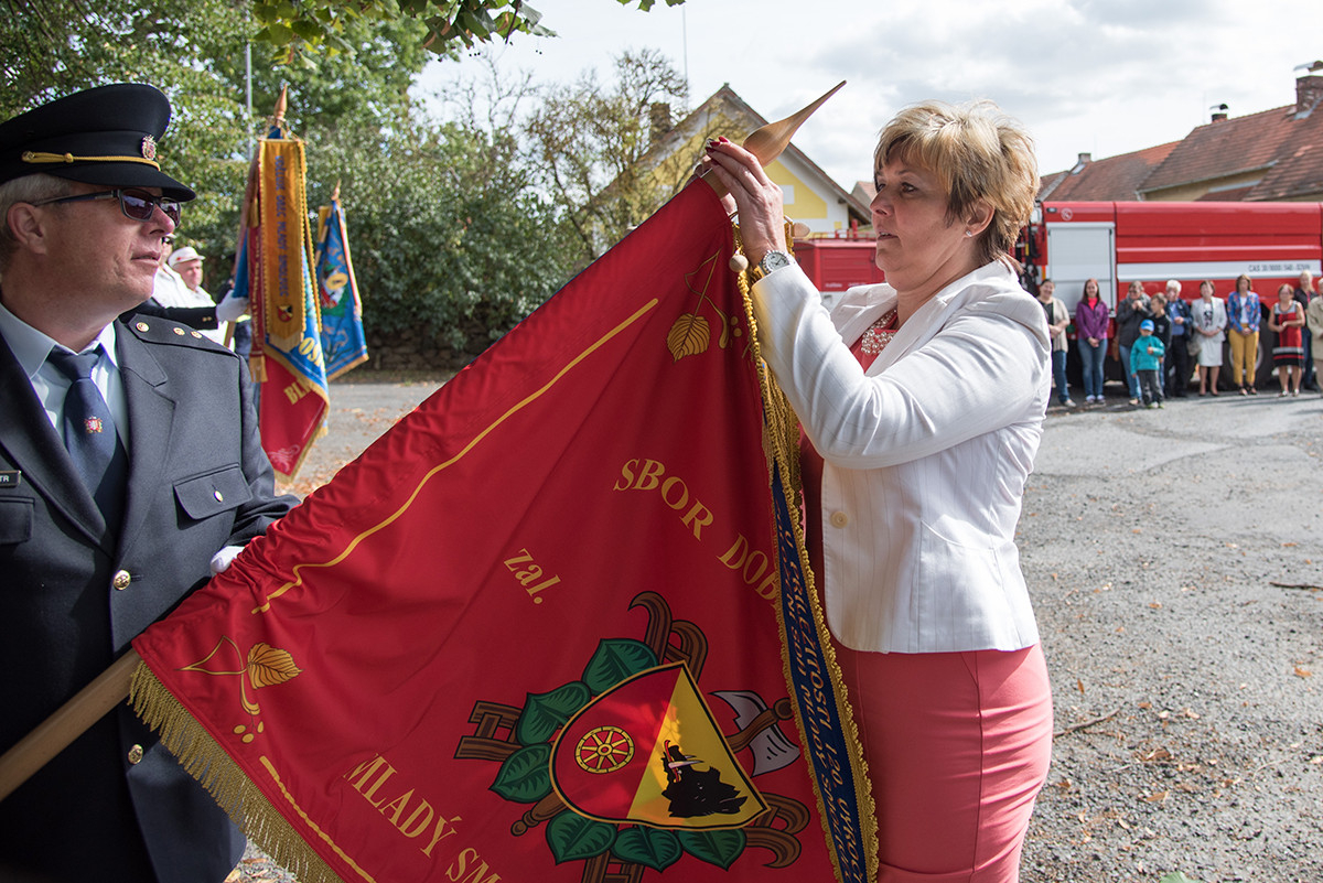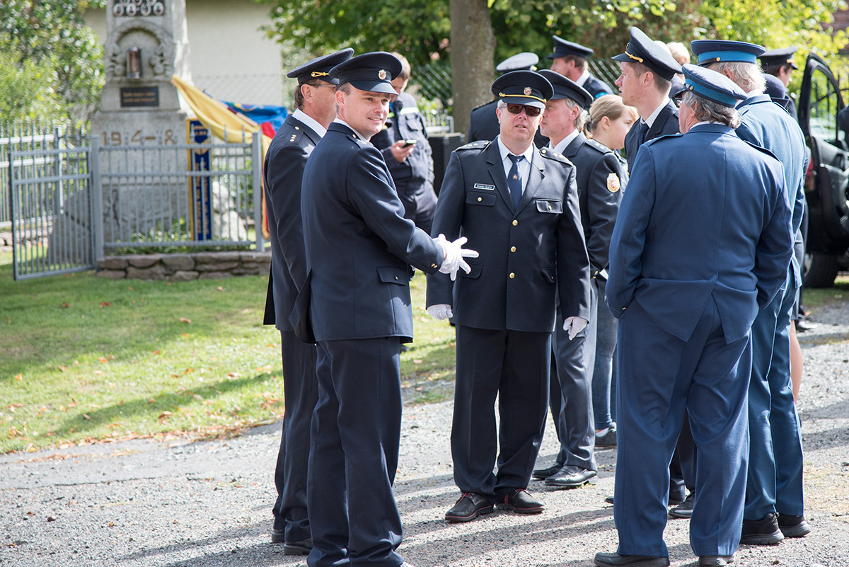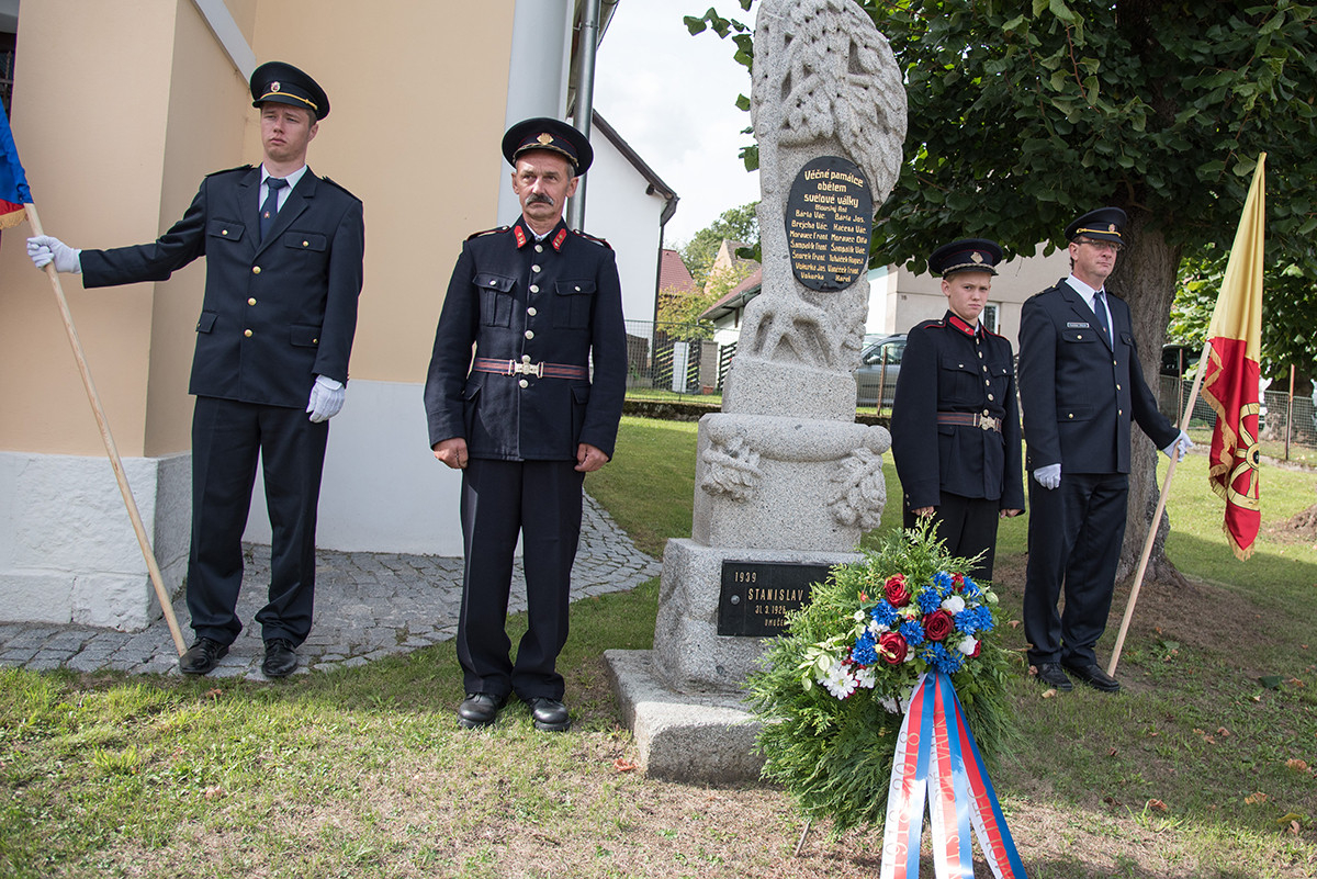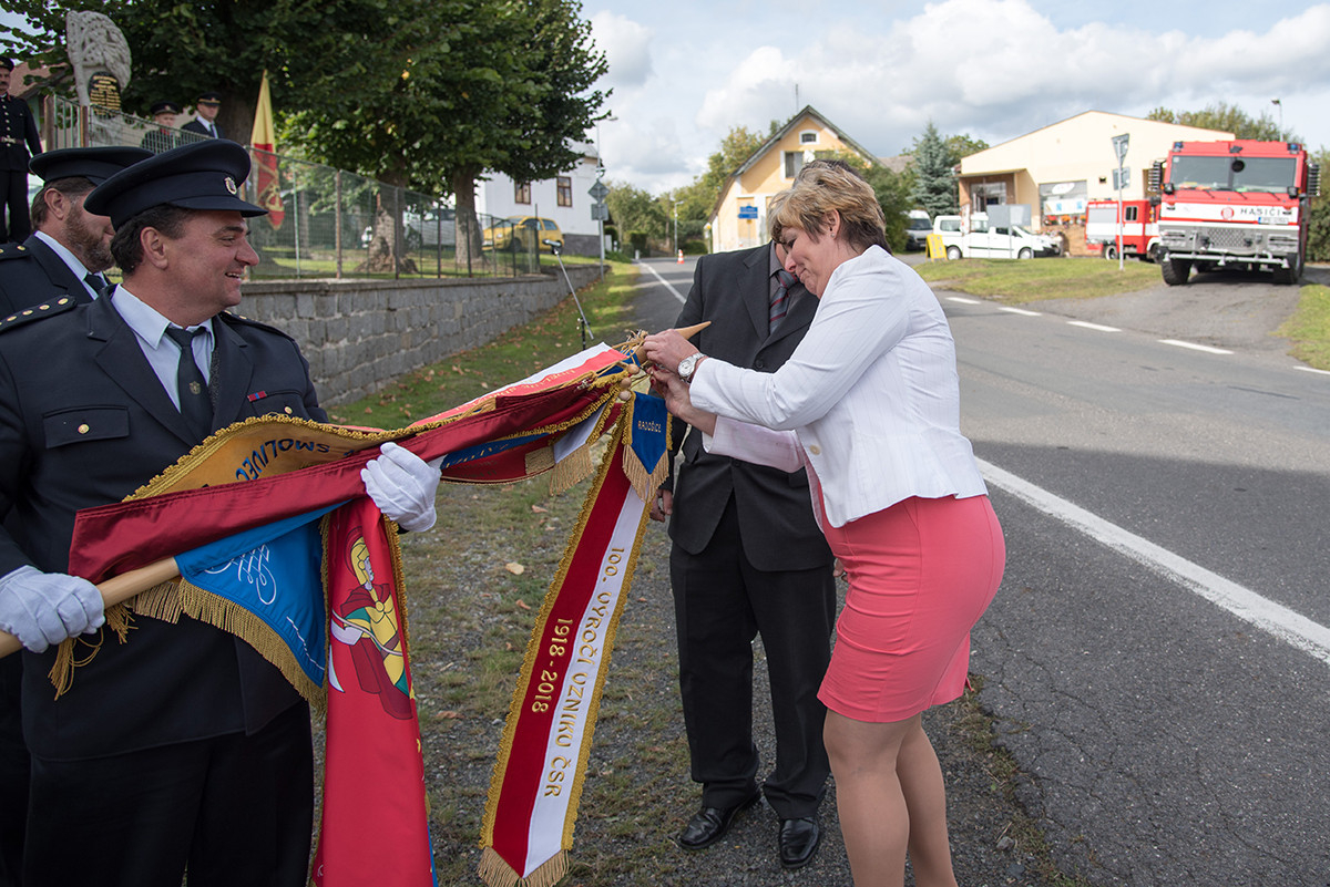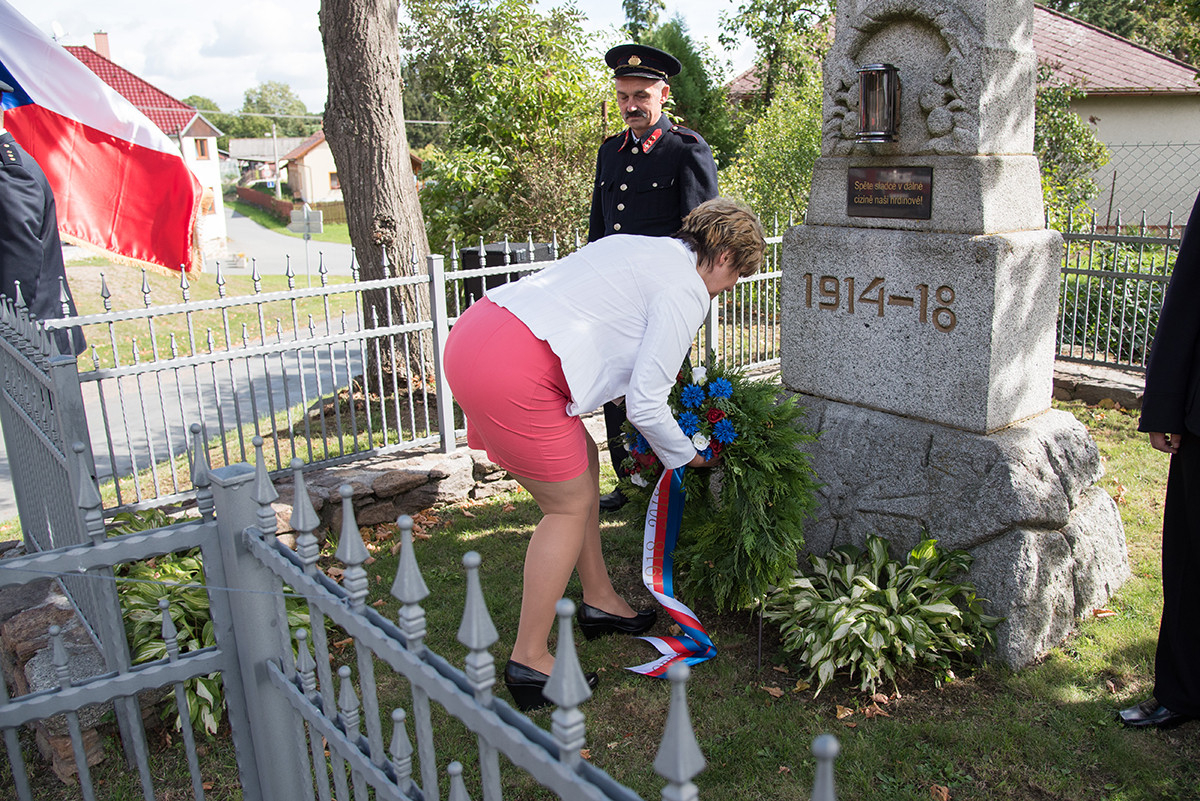 Nicméně zpět k průběhu pietní akce. „Domácí“ hasiči (tedy hasiči ze sboru dané obce, ve které jsme se aktuálně nacházeli) položili věnec na pomník padlých v 1. světové válce. Dále zazněla státní hymna. Poté všechny přítomné přivítala starostka obce, paní Eva Kubová a připojila několik slov úvodem a svým povídáním nás přenesla do dob minulých, konkrétně do roku 1918. Dále mluvila o uplynulých 100 letech a životě v tomto období. V její dojemné řeči ji vystřídal místostarosta obce, pan Jan Spour. Ten přítomným nastínil válečnou situaci a stručný výtah ze zápisků, které čerpal z místních kronik jednotlivých obcí. Poté znovu předal slovo paní starostce, která ocenila jednotlivě každý hasičský sbor za jejich obětavost a péči o svou obec. Následně pietní akci pozvolna ukončila a pozvala všechny přítomné na pietní akty do dalších vesnic a dále na odpolední program do Radošic.