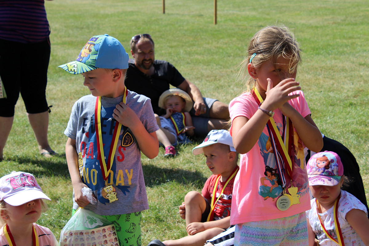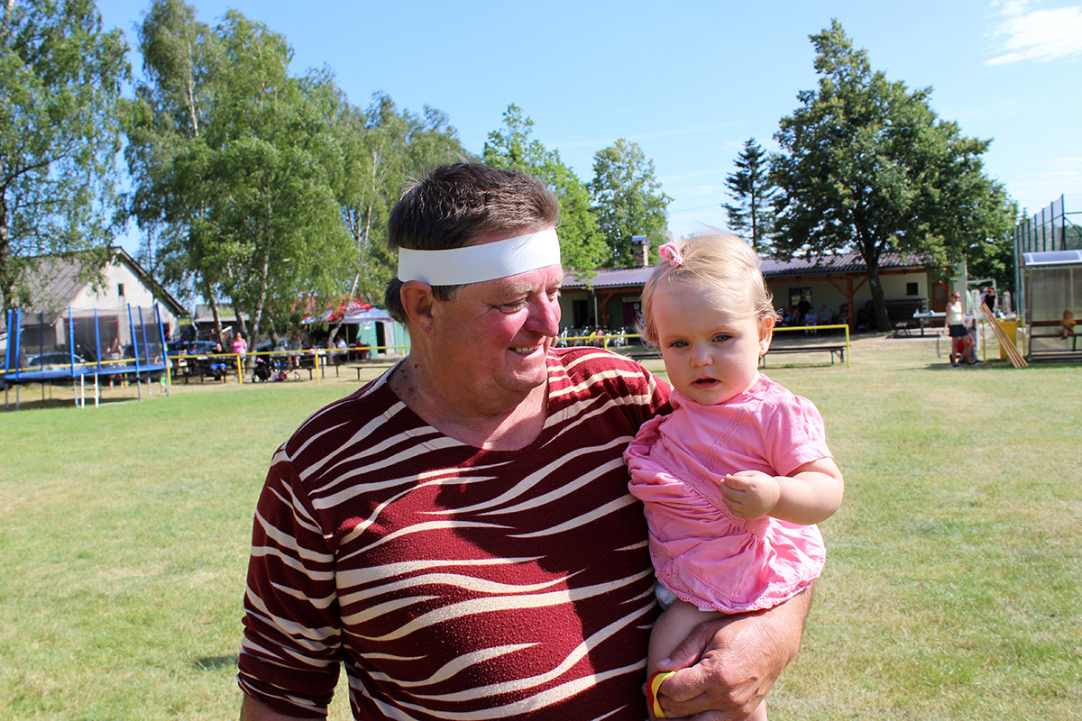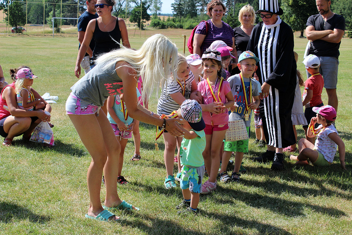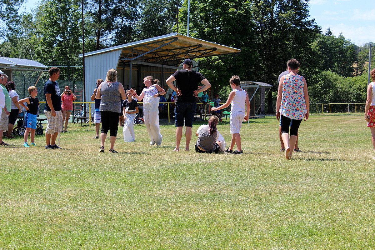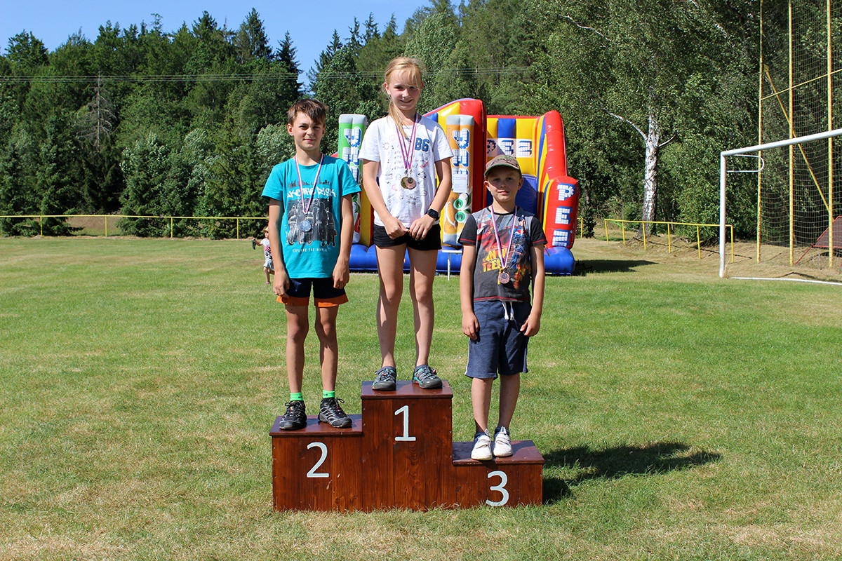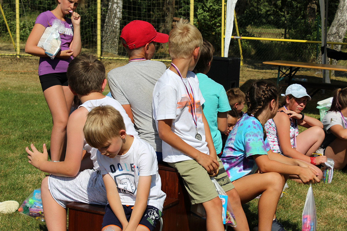 Po výletě z lesa se trochu ochladily nanukem, kdo chtěl, mohl si dát klobásu či točenou limču. A pak došlo na vyhlašování sportovních disciplín. Všechny děti dostaly balíček s překvapením a každé ještě dostalo medaili za účast. A protože horko bylo veliké, hasiči připravili cisternu a děti pěkně pokropili. To je asi to nejlepší, na co se děti těší. Rodiče už méně, ale co by pro své ratolesti neudělali ????. Během celého odpoledne si mohly děti zařádit v nafukovacím hradu či na trampolíně, což také plně využívaly.