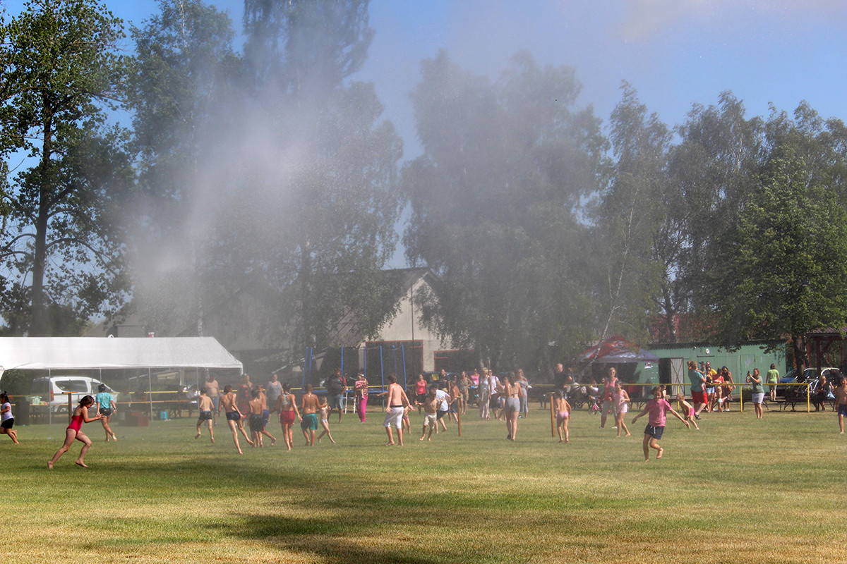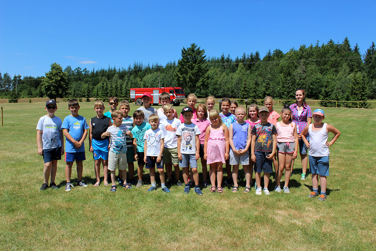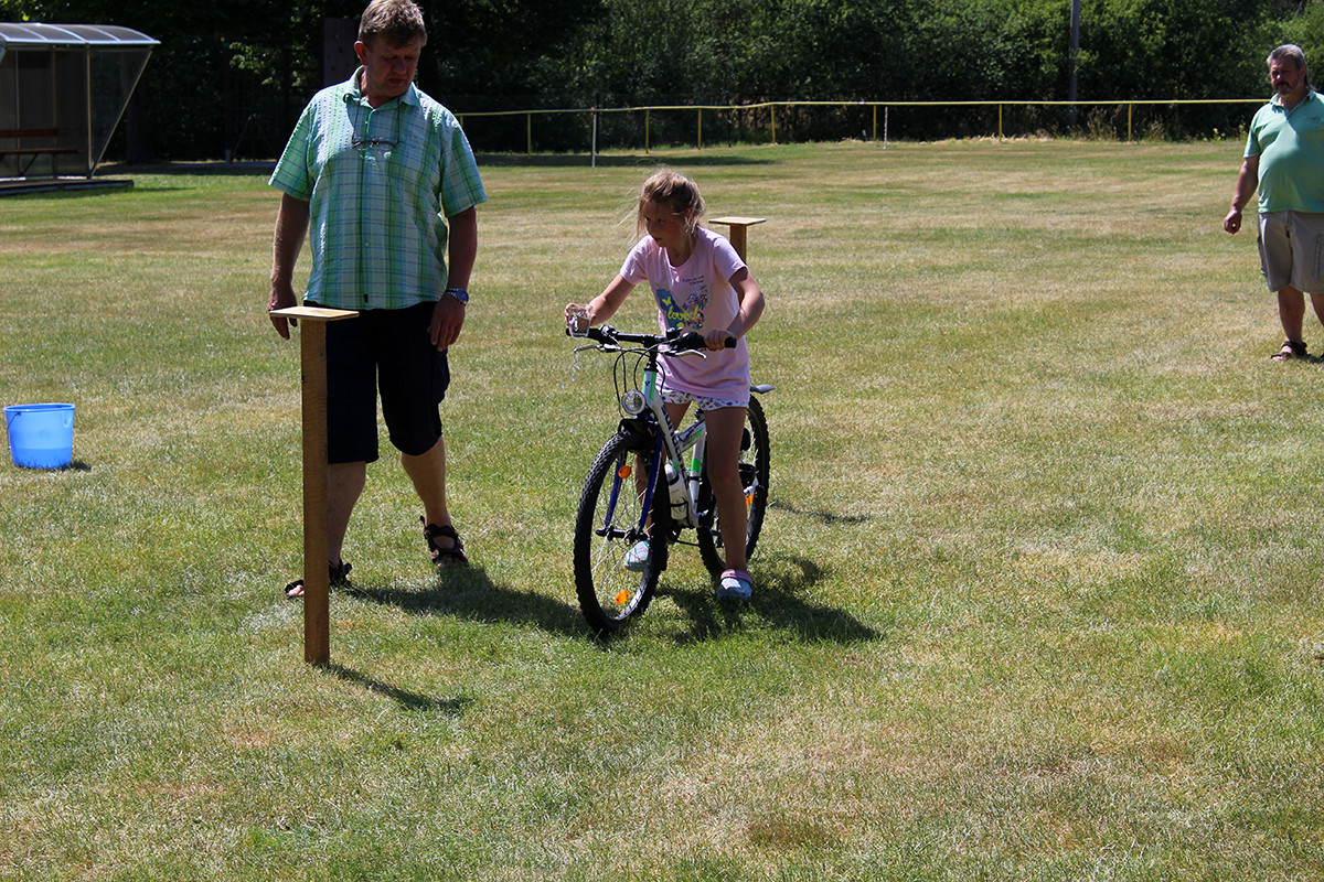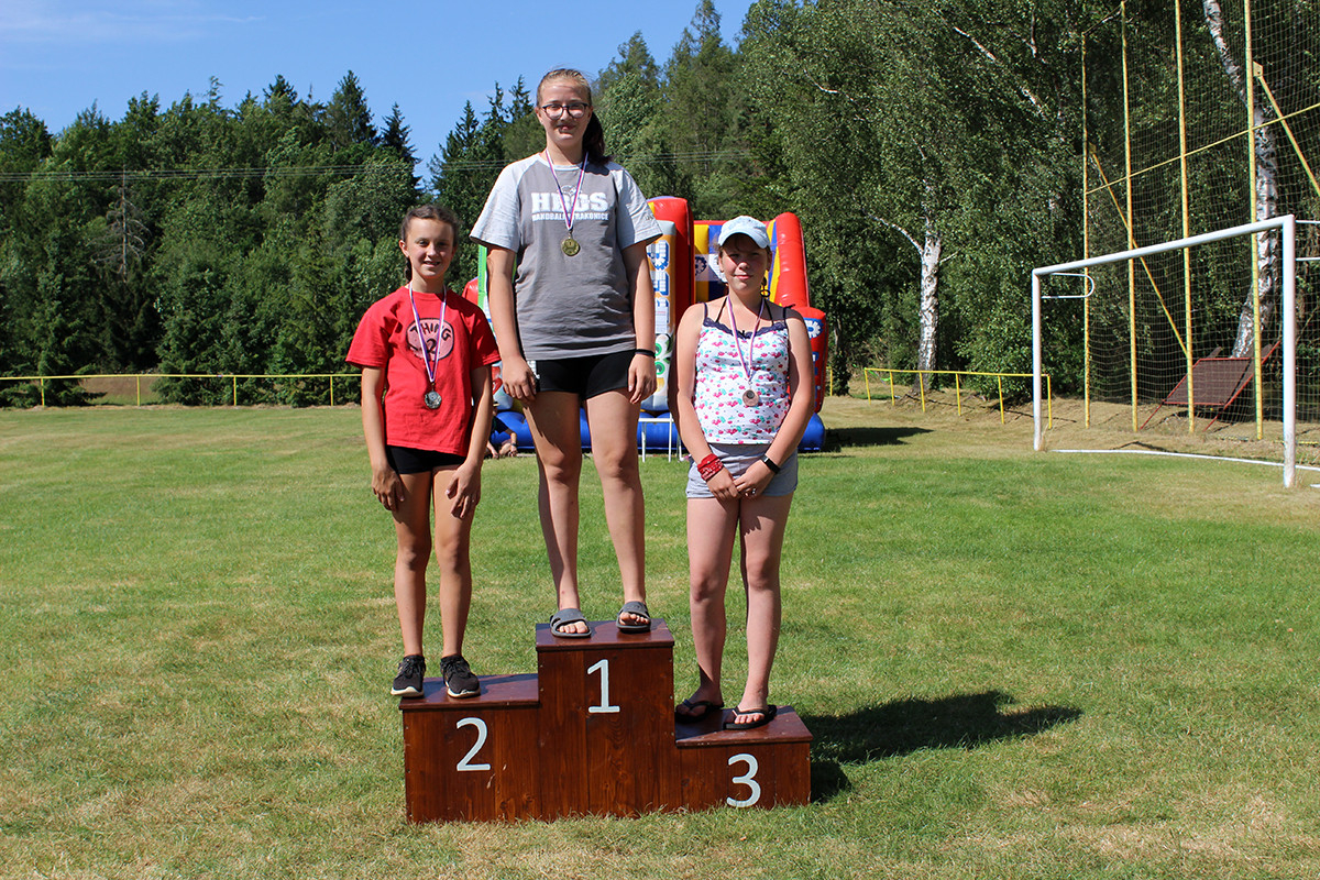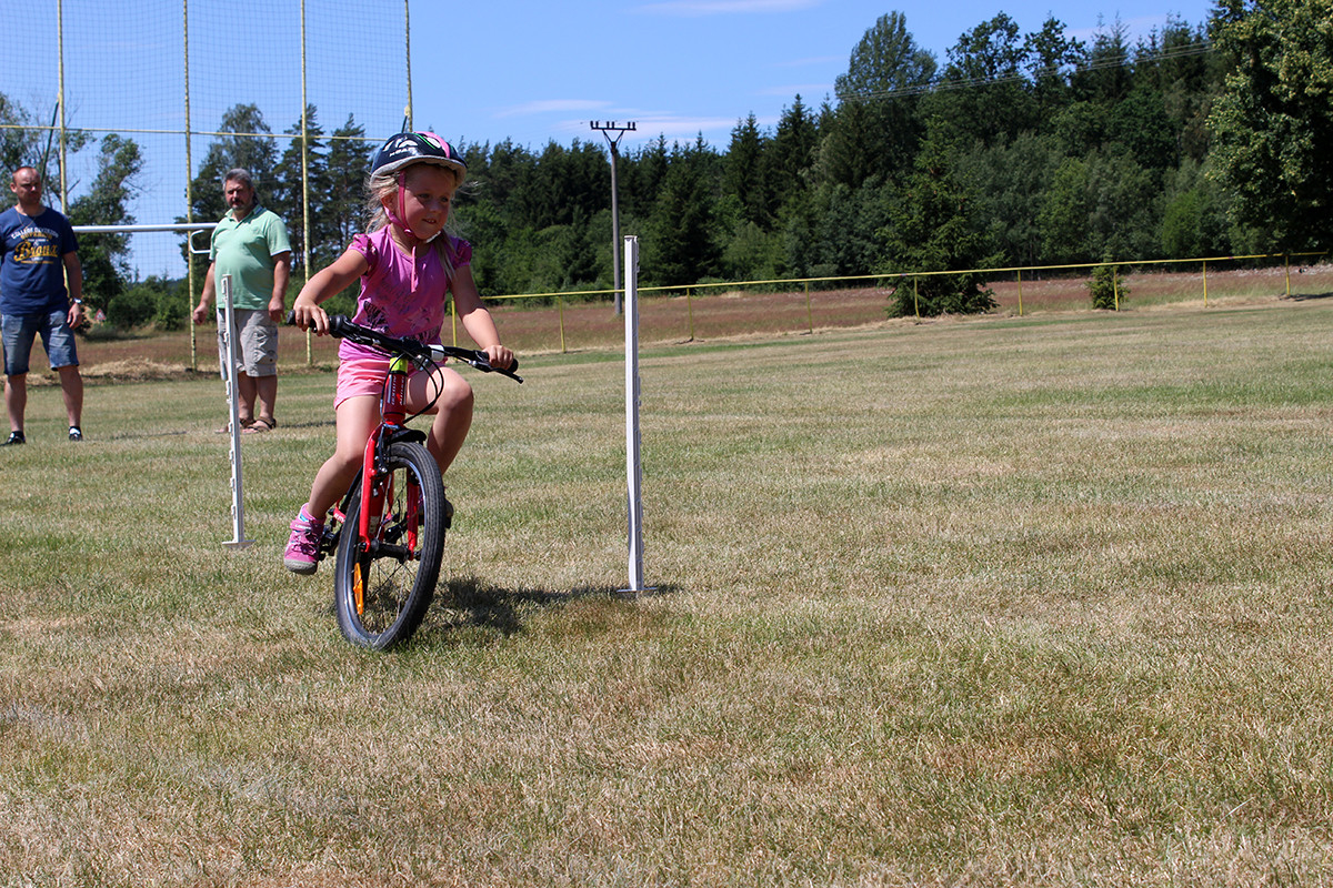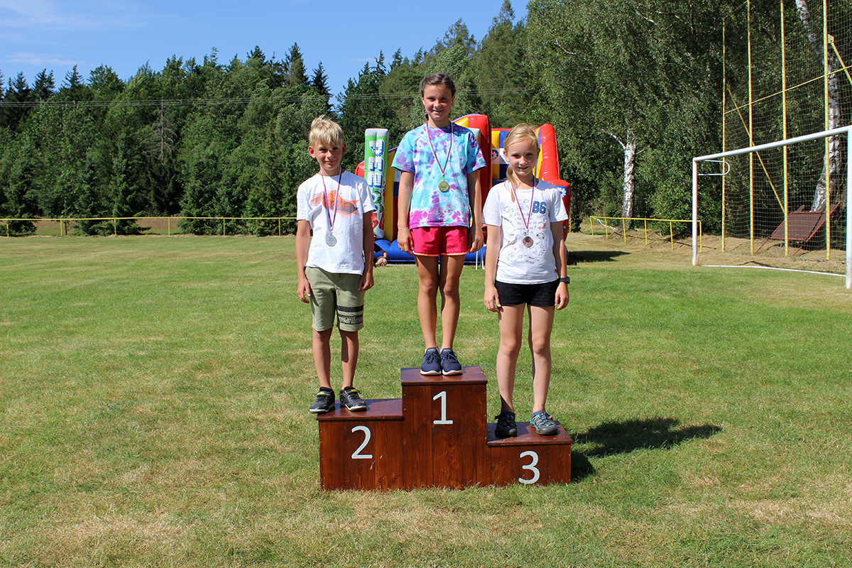 Po výletě z lesa se trochu ochladily nanukem, kdo chtěl, mohl si dát klobásu či točenou limču. A pak došlo na vyhlašování sportovních disciplín. Všechny děti dostaly balíček s překvapením a každé ještě dostalo medaili za účast. A protože horko bylo veliké, hasiči připravili cisternu a děti pěkně pokropili. To je asi to nejlepší, na co se děti těší. Rodiče už méně, ale co by pro své ratolesti neudělali ????. Během celého odpoledne si mohly děti zařádit v nafukovacím hradu či na trampolíně, což také plně využívaly.