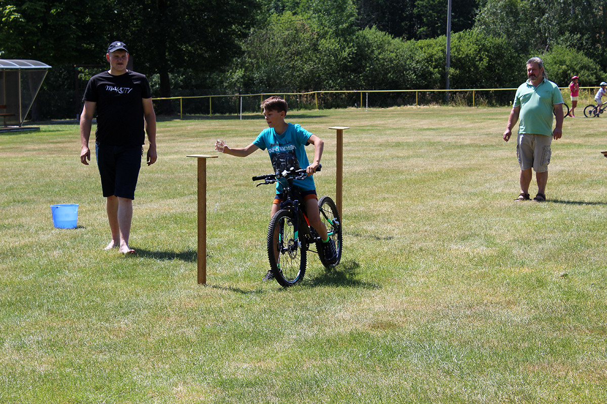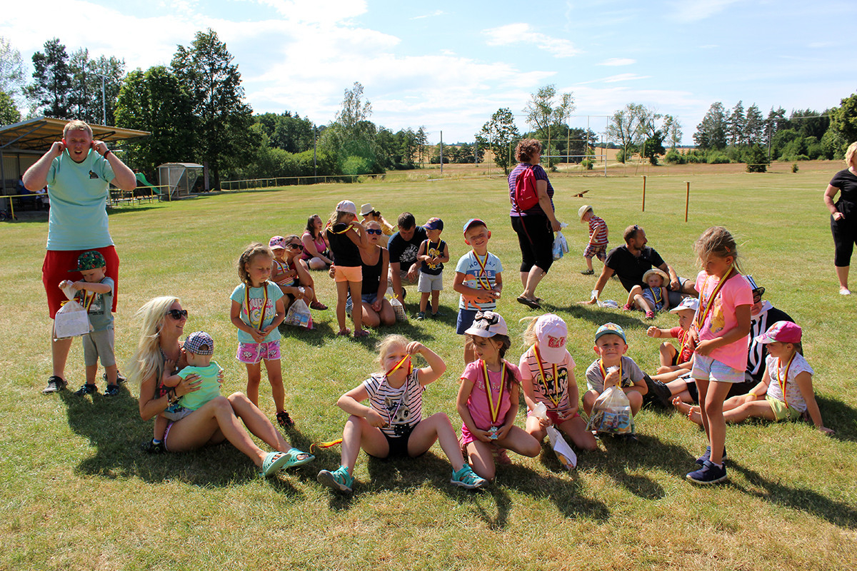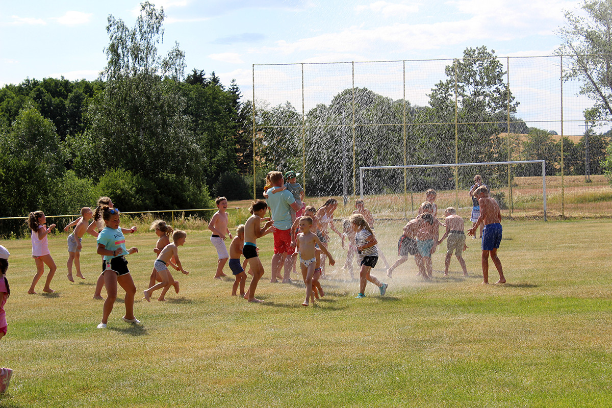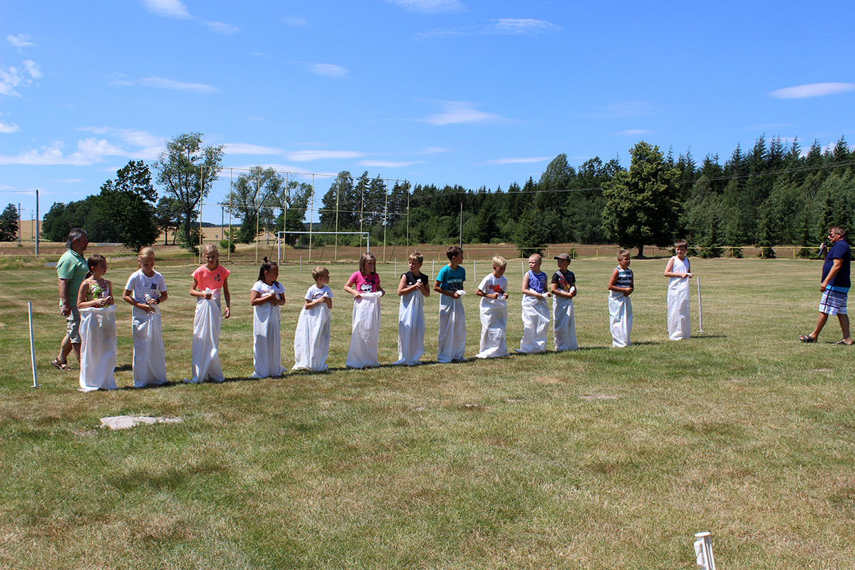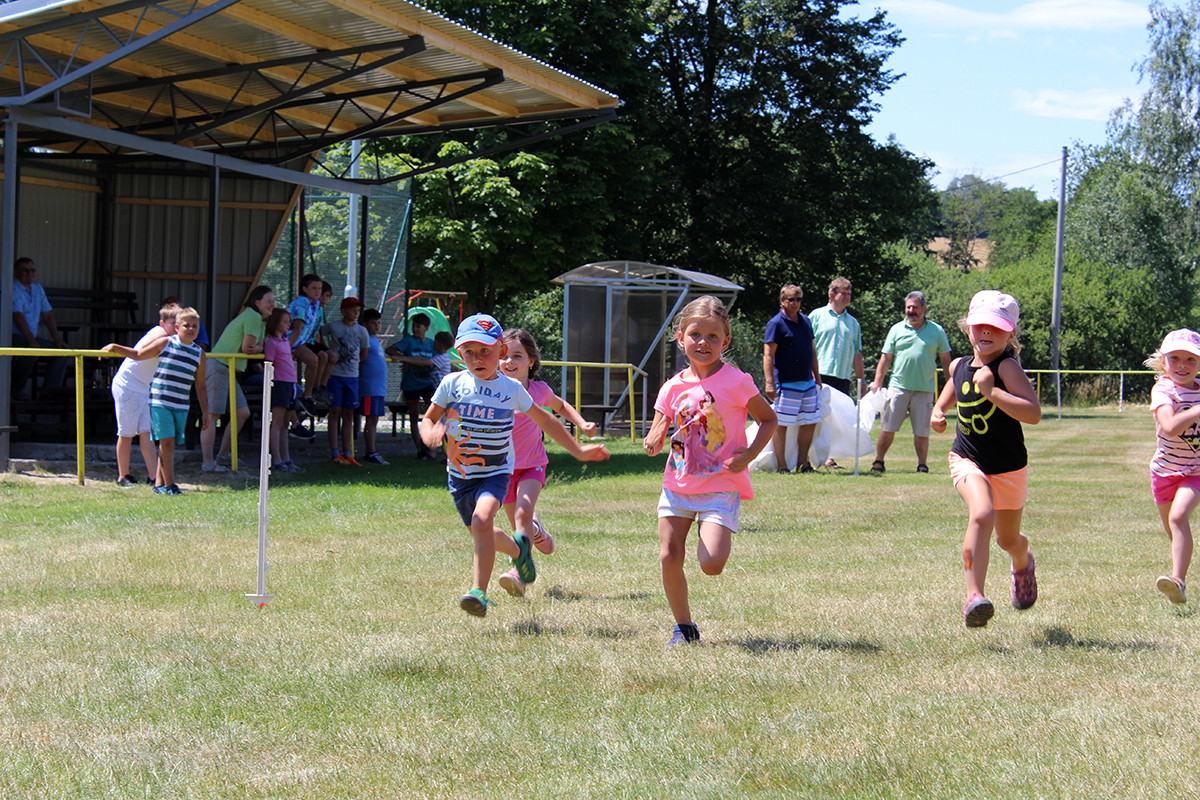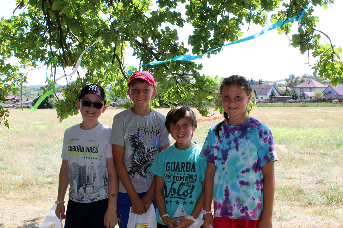 Po výletě z lesa se trochu ochladily nanukem, kdo chtěl, mohl si dát klobásu či točenou limču. A pak došlo na vyhlašování sportovních disciplín. Všechny děti dostaly balíček s překvapením a každé ještě dostalo medaili za účast. A protože horko bylo veliké, hasiči připravili cisternu a děti pěkně pokropili. To je asi to nejlepší, na co se děti těší. Rodiče už méně, ale co by pro své ratolesti neudělali ????. Během celého odpoledne si mohly děti zařádit v nafukovacím hradu či na trampolíně, což také plně využívaly.
