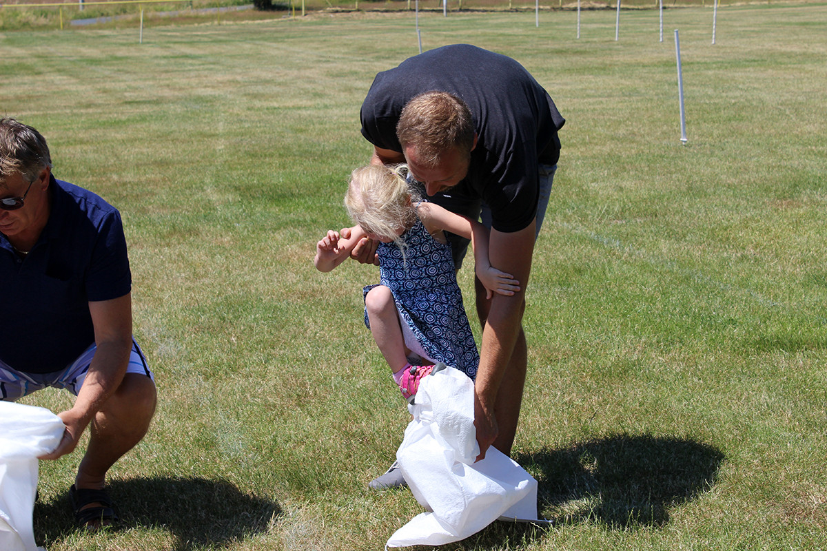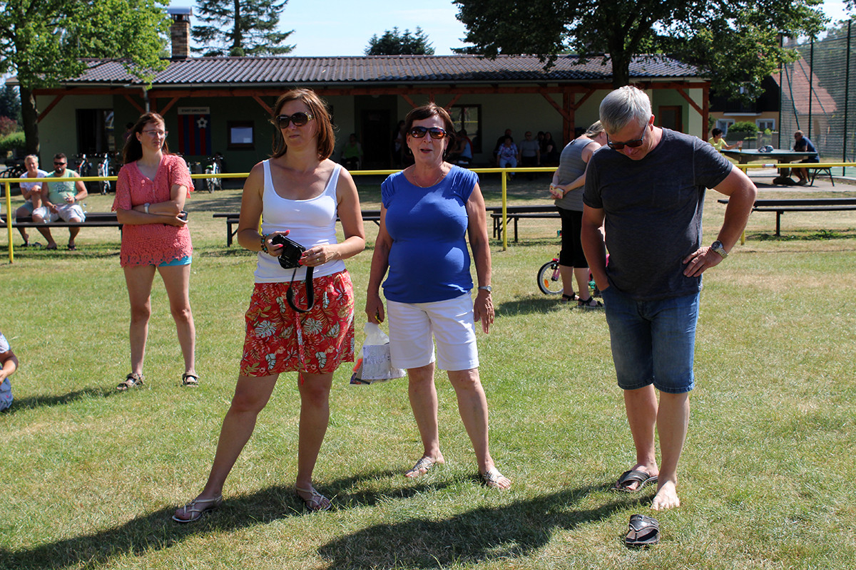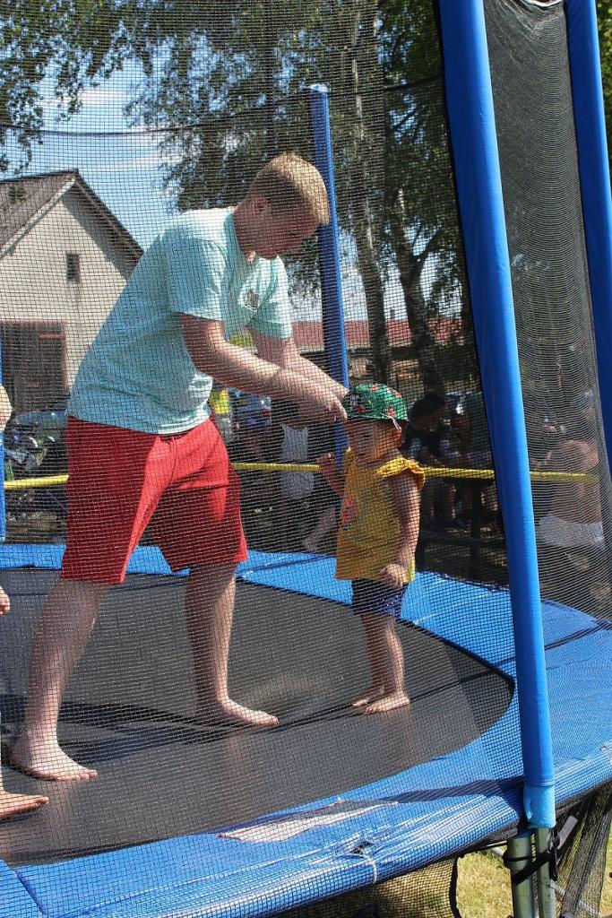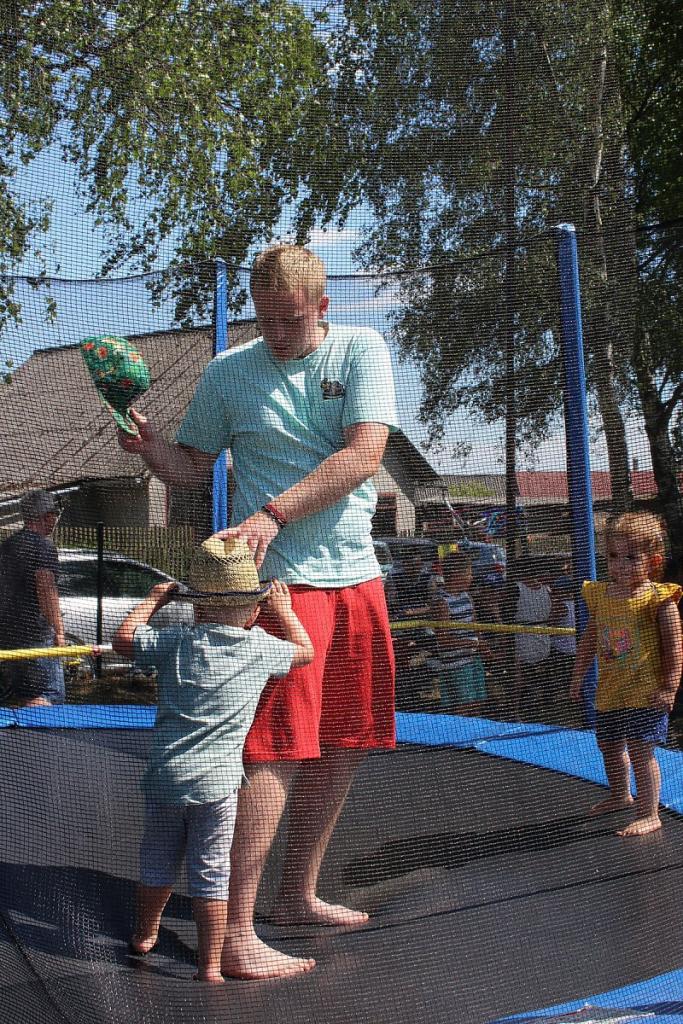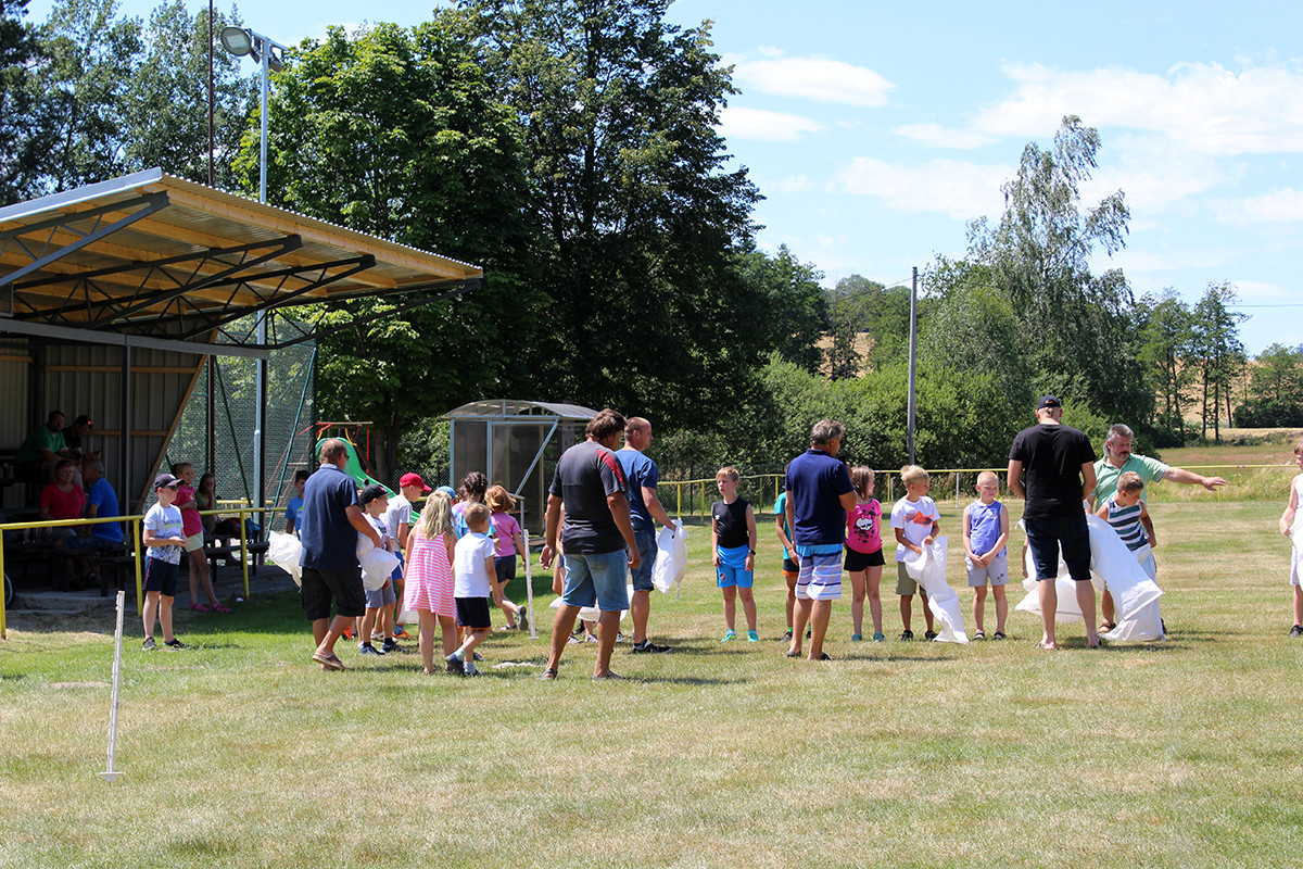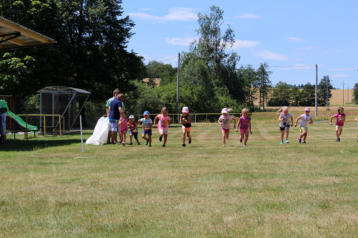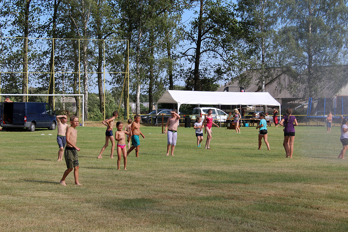 Po výletě z lesa se trochu ochladily nanukem, kdo chtěl, mohl si dát klobásu či točenou limču. A pak došlo na vyhlašování sportovních disciplín. Všechny děti dostaly balíček s překvapením a každé ještě dostalo medaili za účast. A protože horko bylo veliké, hasiči připravili cisternu a děti pěkně pokropili. To je asi to nejlepší, na co se děti těší. Rodiče už méně, ale co by pro své ratolesti neudělali ????. Během celého odpoledne si mohly děti zařádit v nafukovacím hradu či na trampolíně, což také plně využívaly.