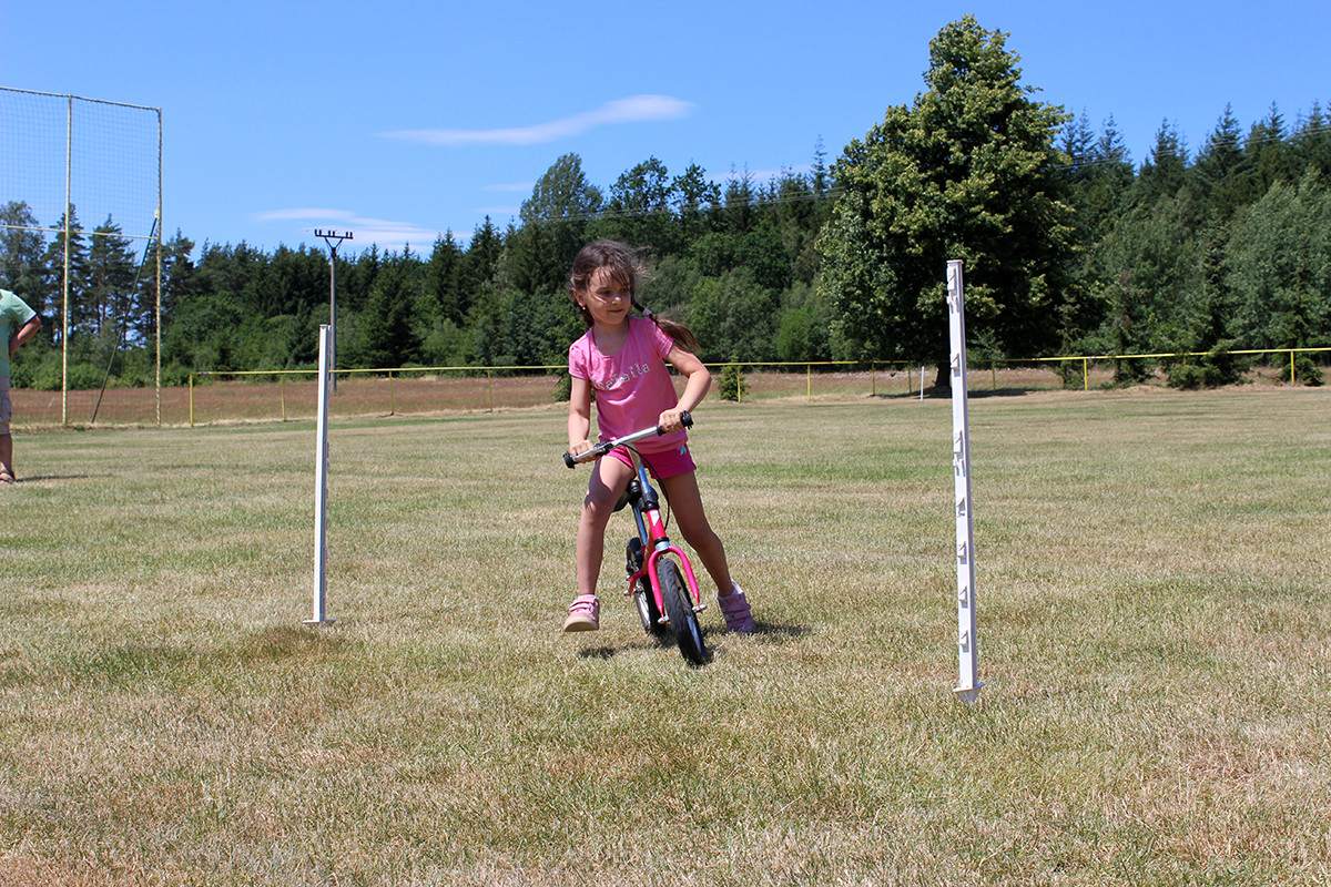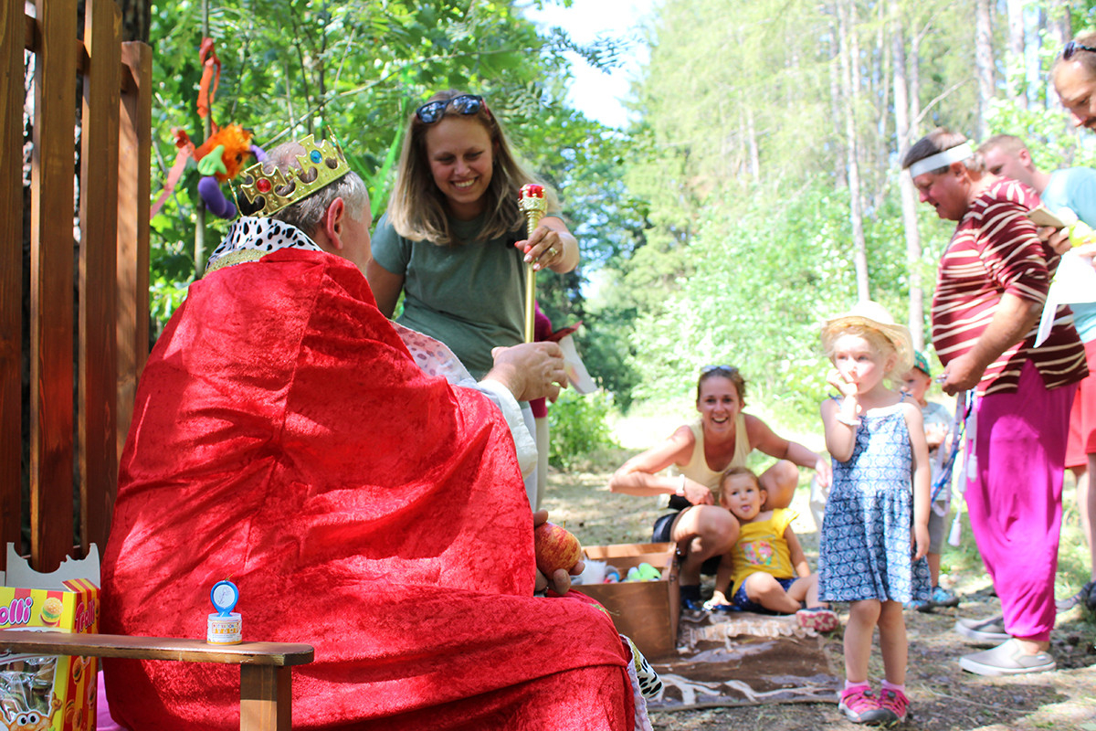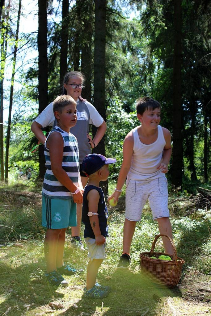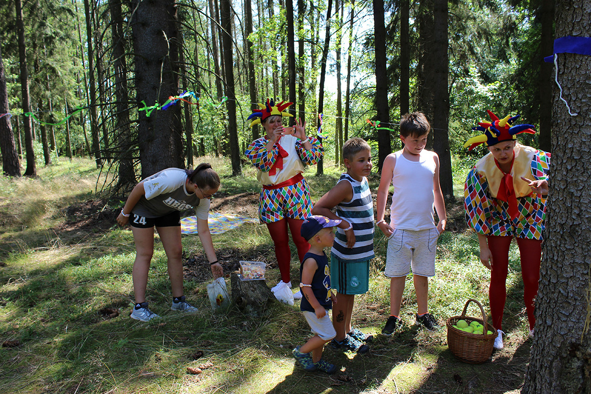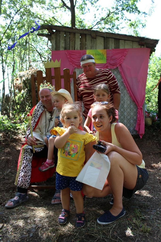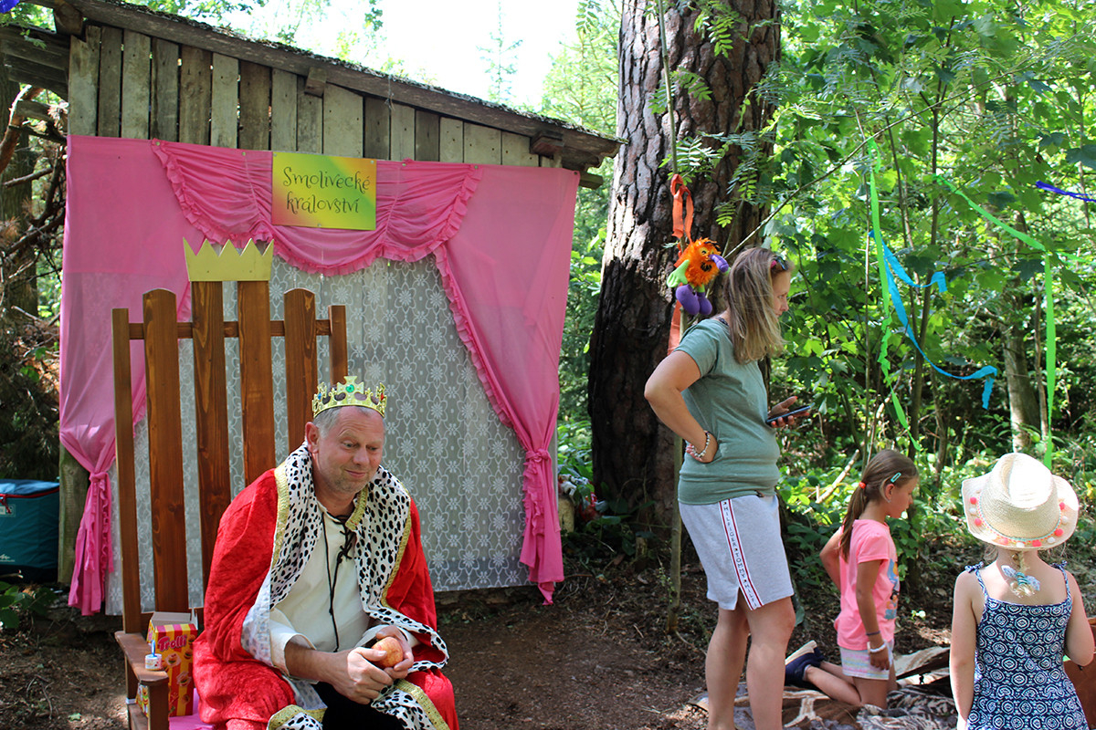 Děti skákaly v pytlích, běhaly na čas a absolvovaly jízdu zručnosti na kole. Přes úmorné vedro dorazilo asi šedesát dětí, samozřejmě s doprovodem. Po sportovních disciplínách vyrazily děti do lesa, do Smoliveckého království. Tam na ně čekala princezna se služebnými, dva rádcové, šaškové a nechyběl ani pan král se svým pážetem. I v pohádce na děti čekaly úkoly, které musely plnit. Skládaly kapesníky, puzzle, házely na šaška míčkem a hledaly královský majestát. Na každém stanovišti si vysloužily odměnu a razítko do kartičky, kterou obdržely na startu.