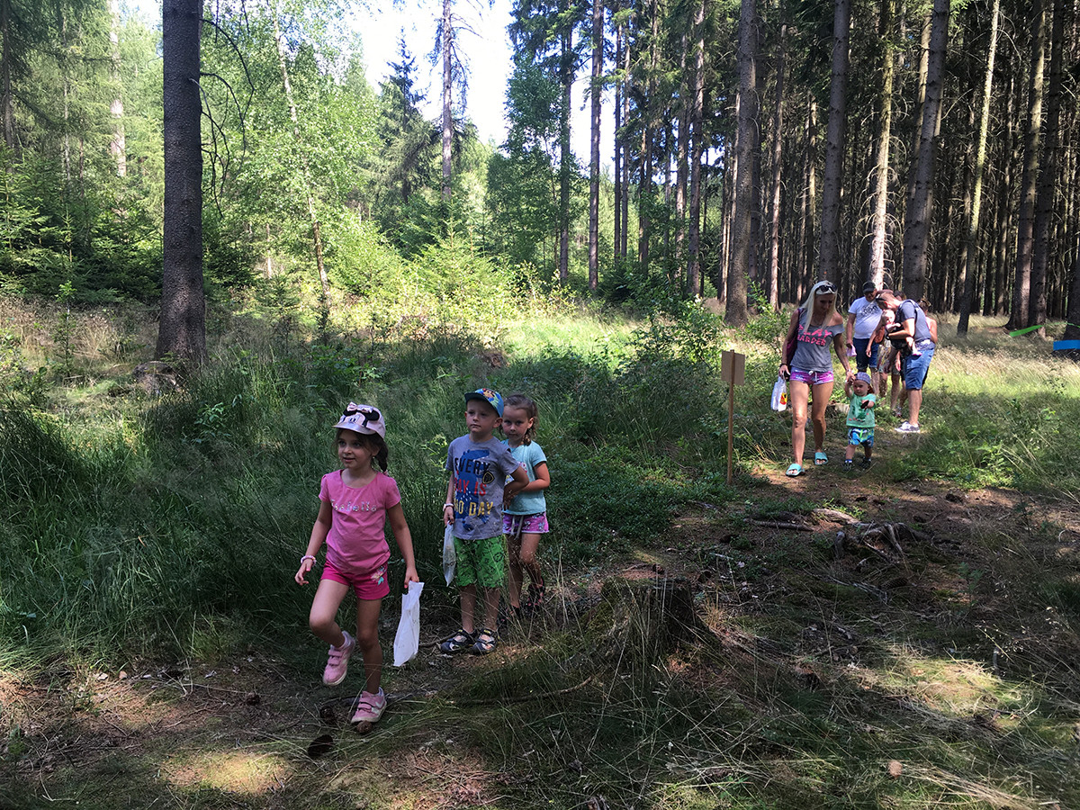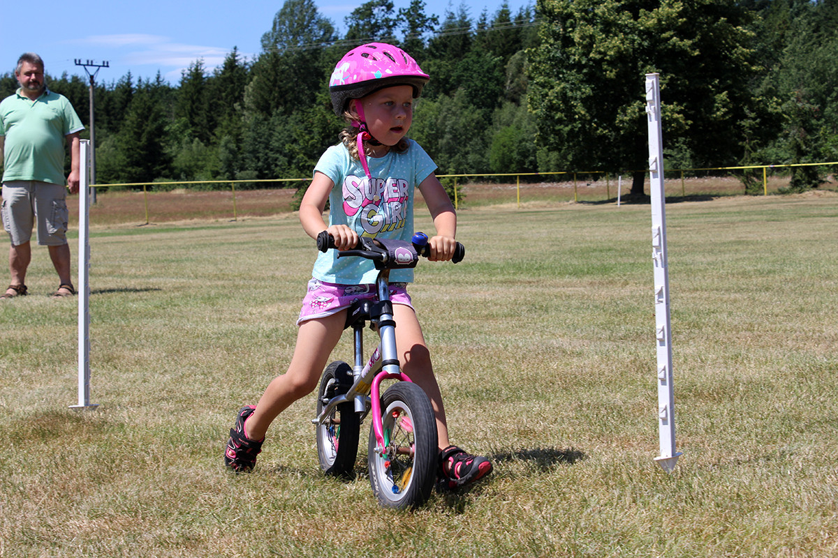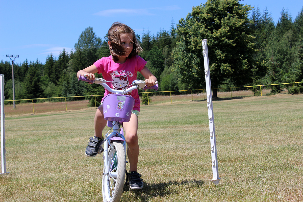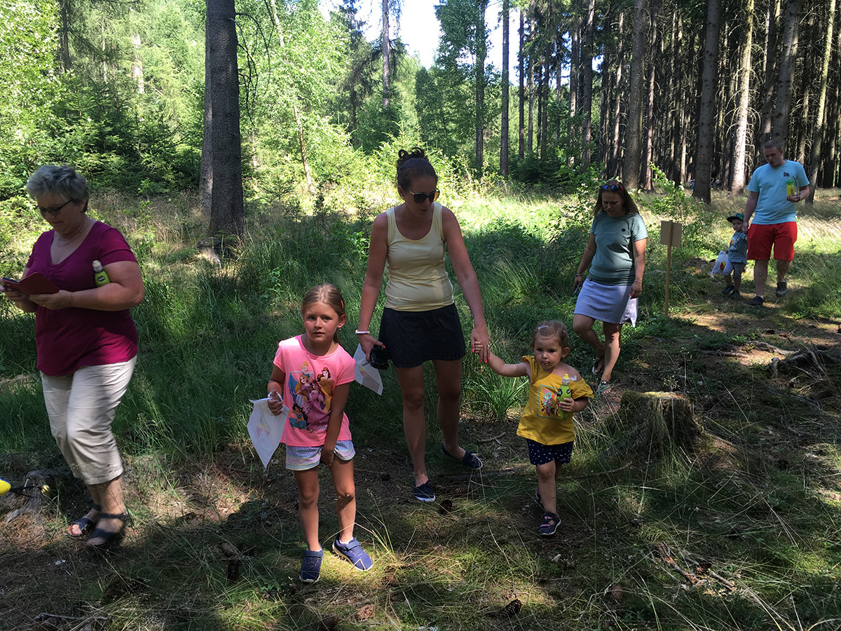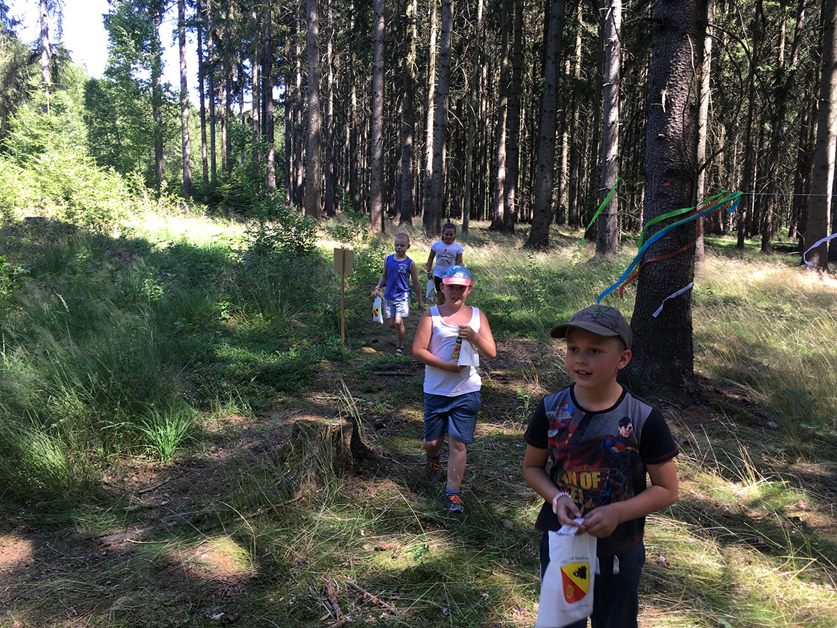 Děti skákaly v pytlích, běhaly na čas a absolvovaly jízdu zručnosti na kole. Přes úmorné vedro dorazilo asi šedesát dětí, samozřejmě s doprovodem. Po sportovních disciplínách vyrazily děti do lesa, do Smoliveckého království. Tam na ně čekala princezna se služebnými, dva rádcové, šaškové a nechyběl ani pan král se svým pážetem. I v pohádce na děti čekaly úkoly, které musely plnit. Skládaly kapesníky, puzzle, házely na šaška míčkem a hledaly královský majestát. Na každém stanovišti si vysloužily odměnu a razítko do kartičky, kterou obdržely na startu.