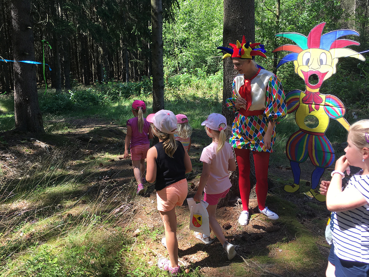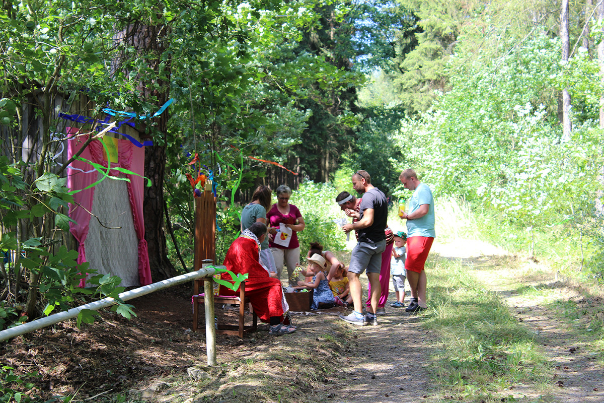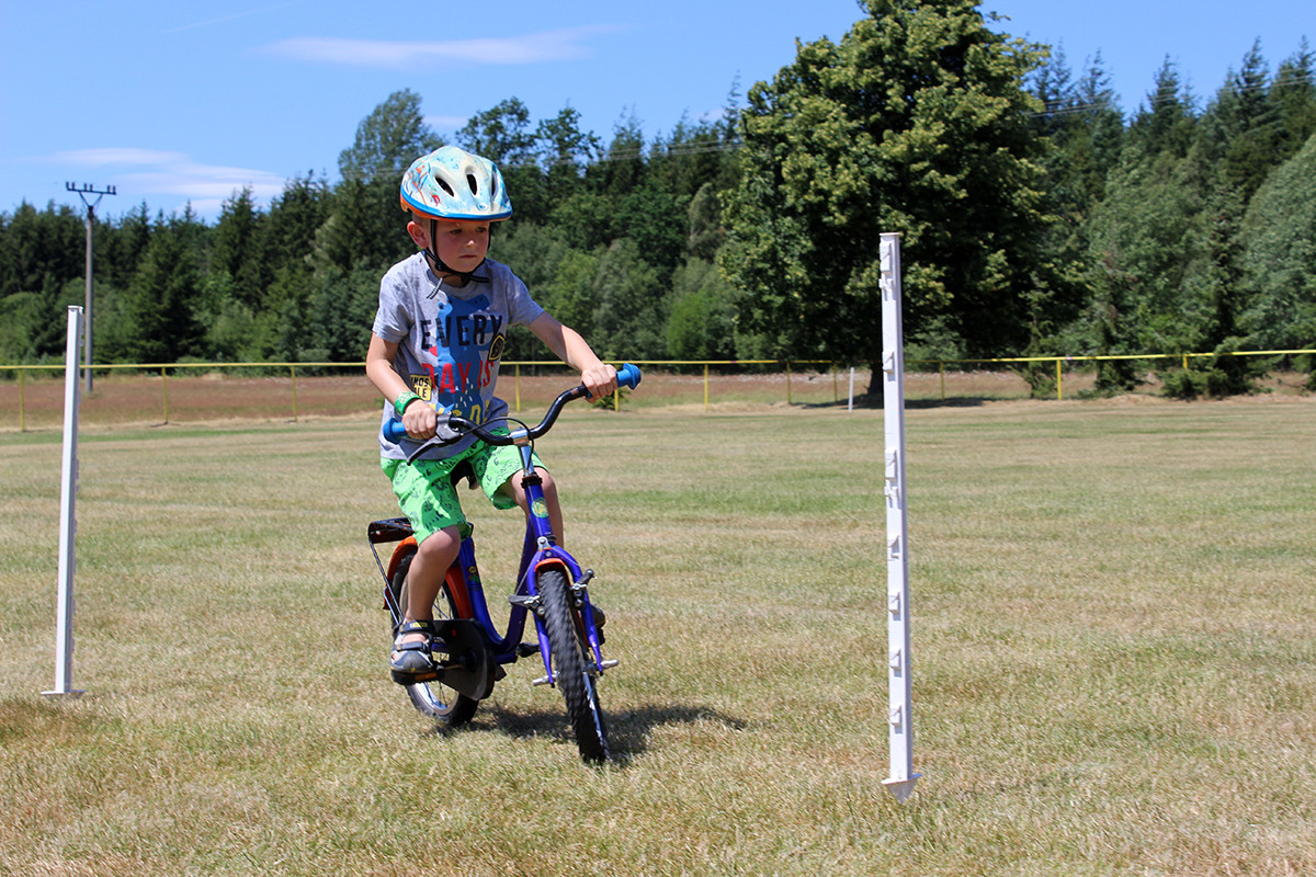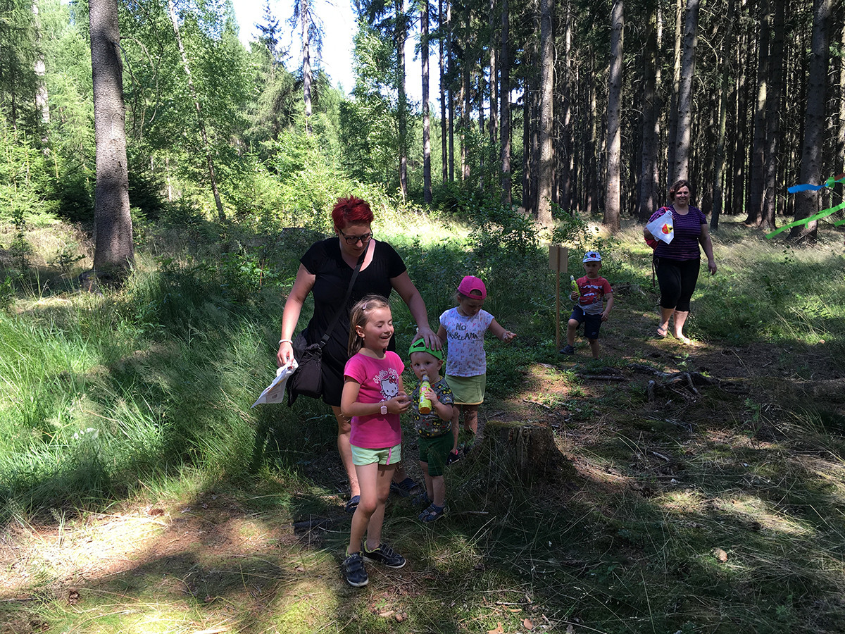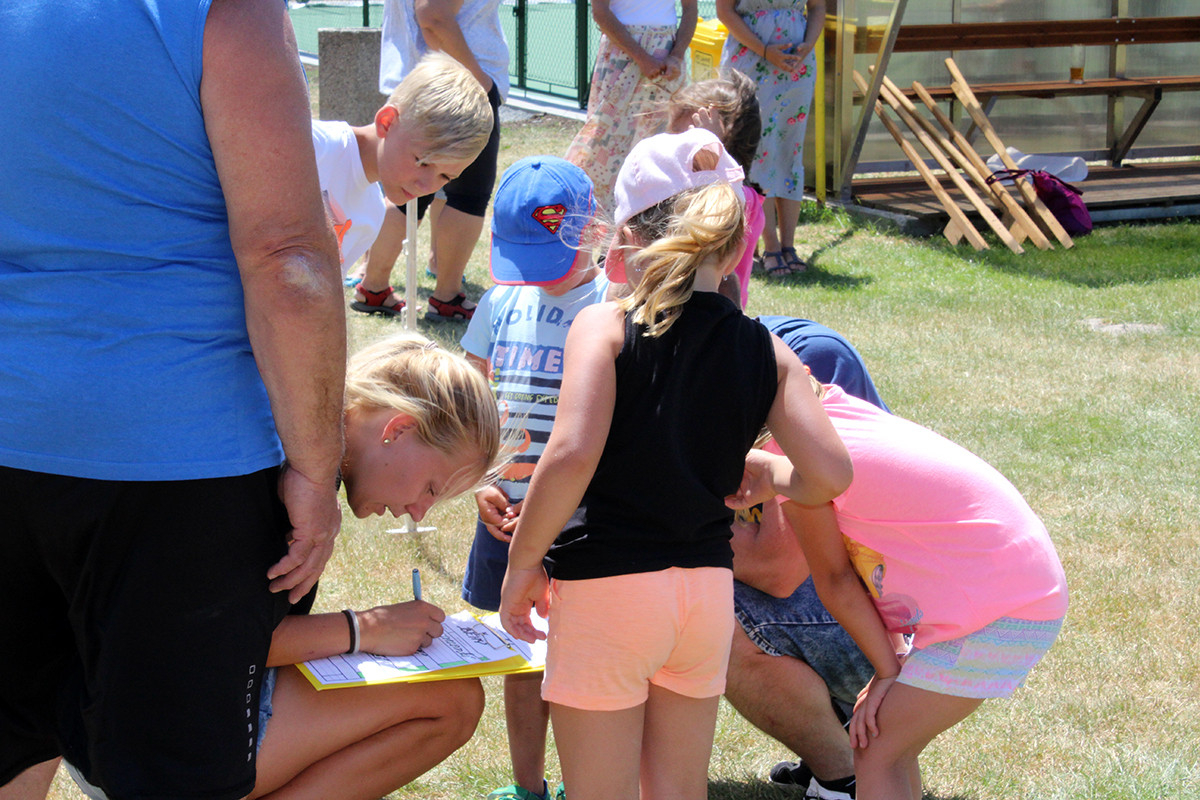 Děti skákaly v pytlích, běhaly na čas a absolvovaly jízdu zručnosti na kole. Přes úmorné vedro dorazilo asi šedesát dětí, samozřejmě s doprovodem. Po sportovních disciplínách vyrazily děti do lesa, do Smoliveckého království. Tam na ně čekala princezna se služebnými, dva rádcové, šaškové a nechyběl ani pan král se svým pážetem. I v pohádce na děti čekaly úkoly, které musely plnit. Skládaly kapesníky, puzzle, házely na šaška míčkem a hledaly královský majestát. Na každém stanovišti si vysloužily odměnu a razítko do kartičky, kterou obdržely na startu.