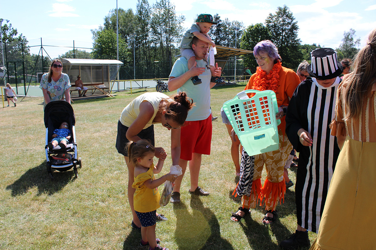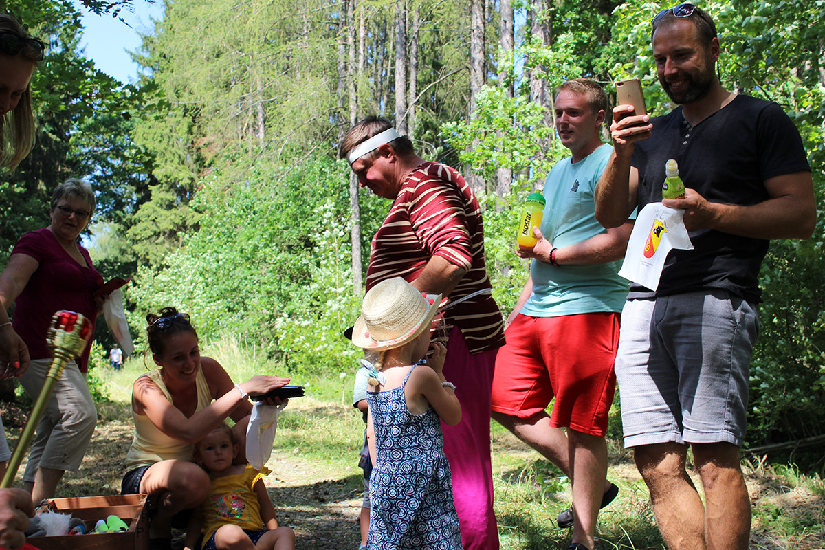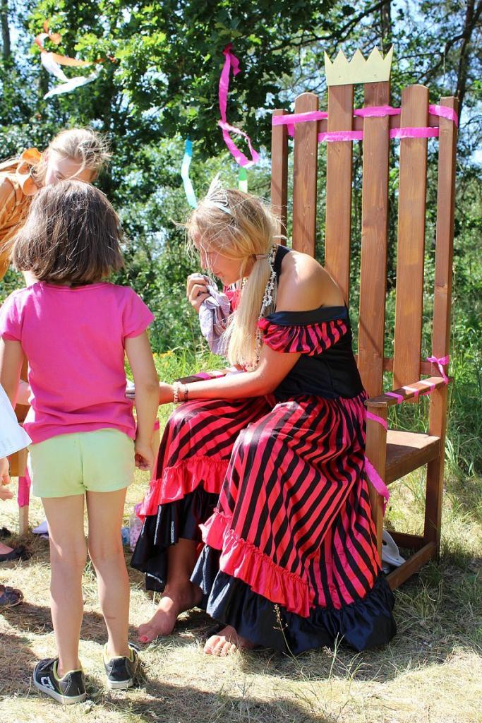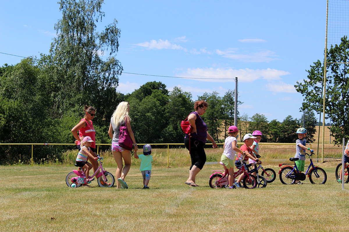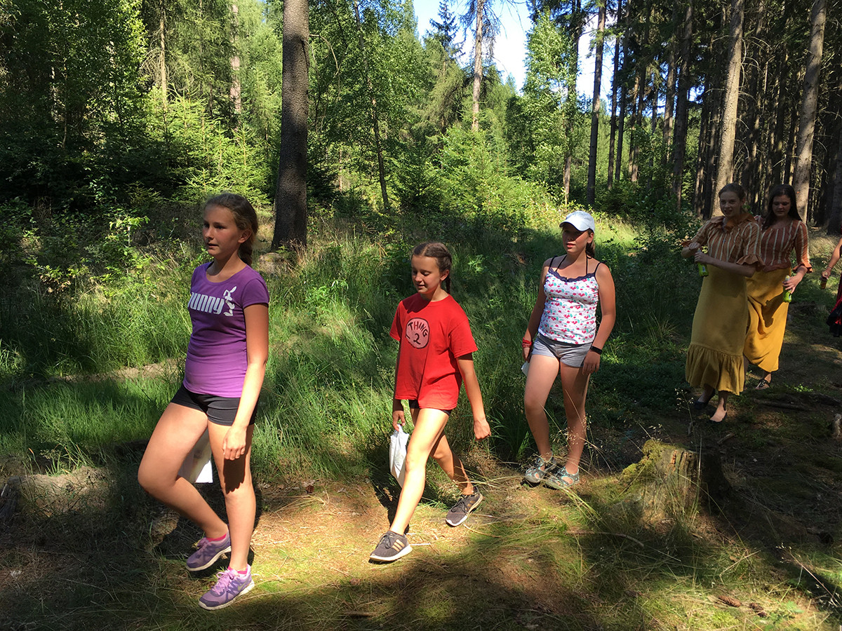 Děti skákaly v pytlích, běhaly na čas a absolvovaly jízdu zručnosti na kole. Přes úmorné vedro dorazilo asi šedesát dětí, samozřejmě s doprovodem. Po sportovních disciplínách vyrazily děti do lesa, do Smoliveckého království. Tam na ně čekala princezna se služebnými, dva rádcové, šaškové a nechyběl ani pan král se svým pážetem. I v pohádce na děti čekaly úkoly, které musely plnit. Skládaly kapesníky, puzzle, házely na šaška míčkem a hledaly královský majestát. Na každém stanovišti si vysloužily odměnu a razítko do kartičky, kterou obdržely na startu.