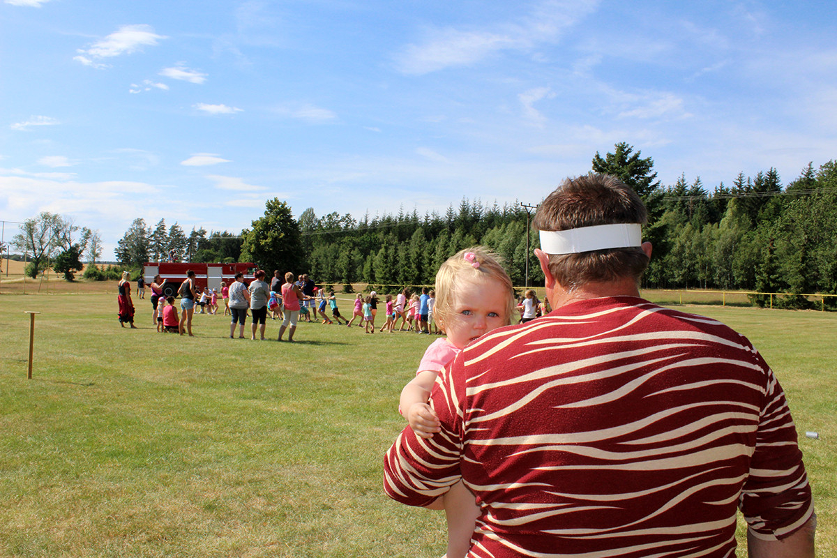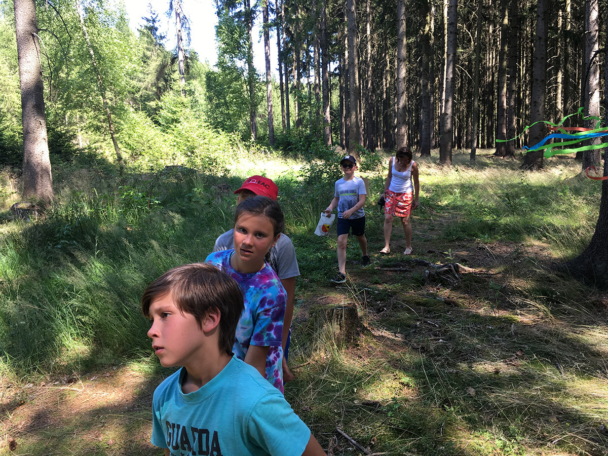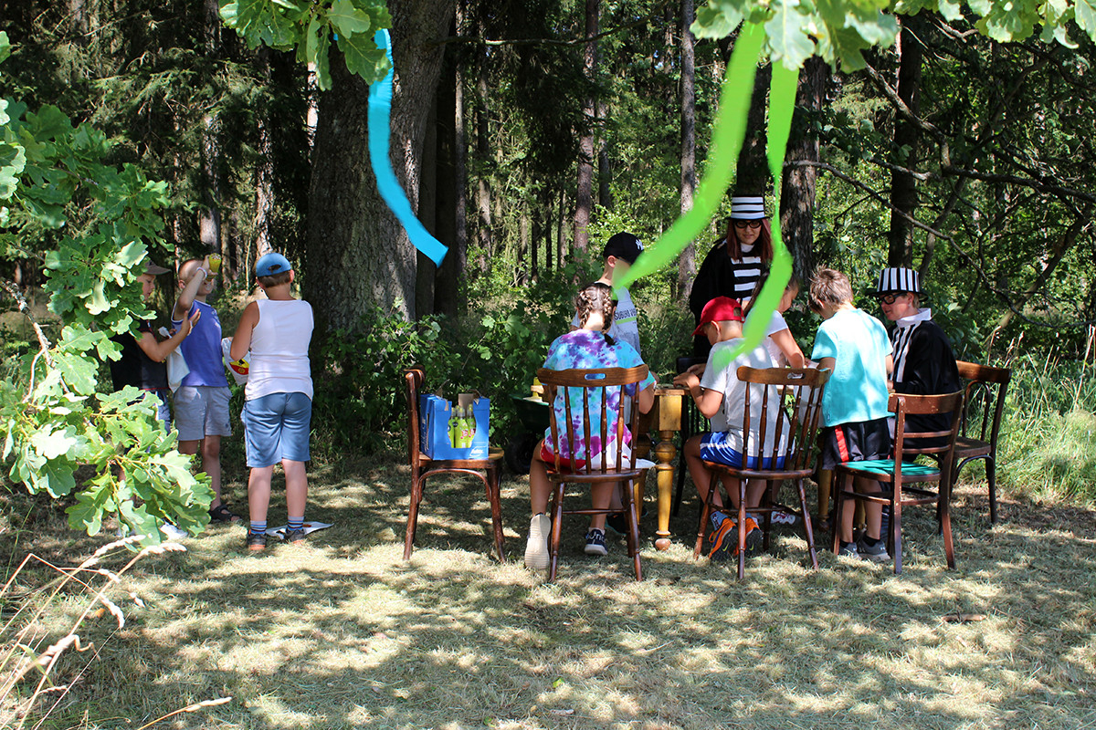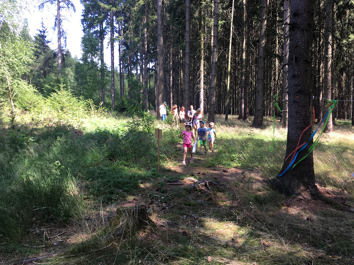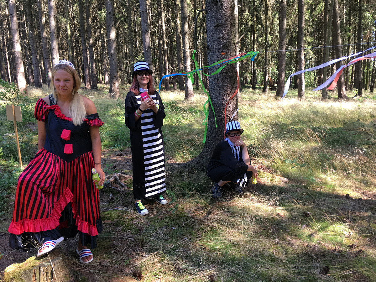 Děti skákaly v pytlích, běhaly na čas a absolvovaly jízdu zručnosti na kole. Přes úmorné vedro dorazilo asi šedesát dětí, samozřejmě s doprovodem. Po sportovních disciplínách vyrazily děti do lesa, do Smoliveckého království. Tam na ně čekala princezna se služebnými, dva rádcové, šaškové a nechyběl ani pan král se svým pážetem. I v pohádce na děti čekaly úkoly, které musely plnit. Skládaly kapesníky, puzzle, házely na šaška míčkem a hledaly královský majestát. Na každém stanovišti si vysloužily odměnu a razítko do kartičky, kterou obdržely na startu.