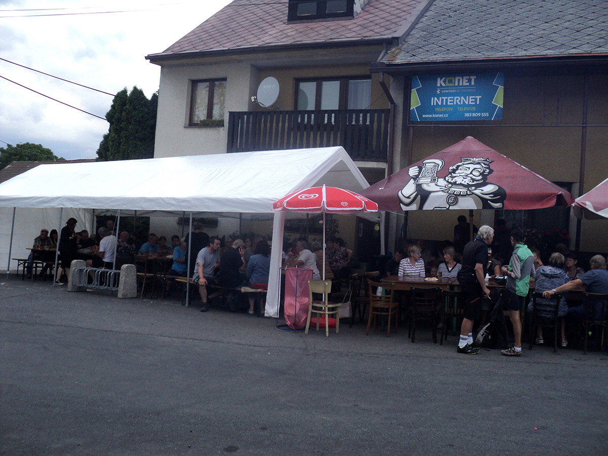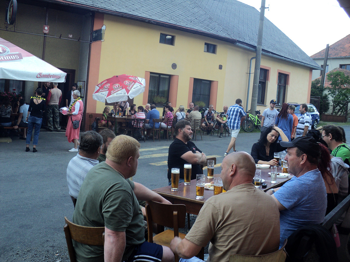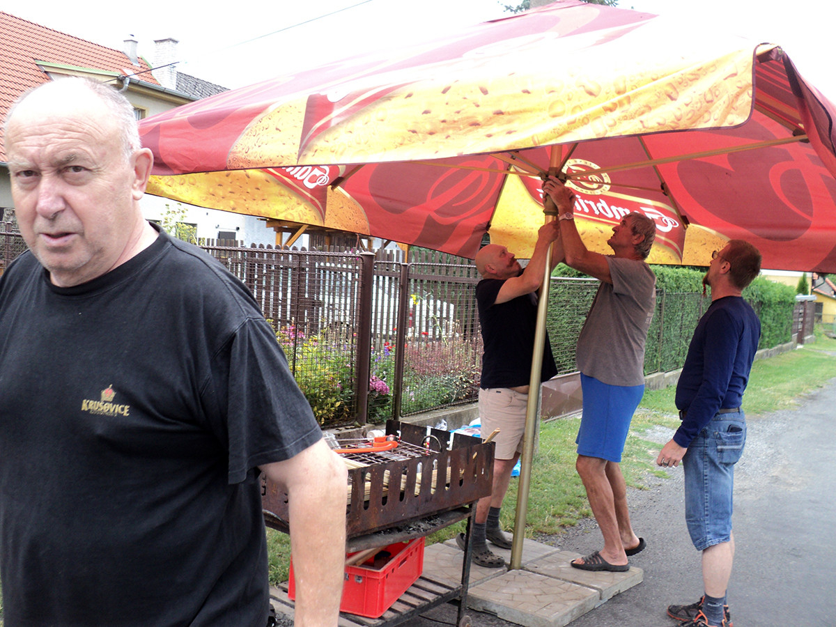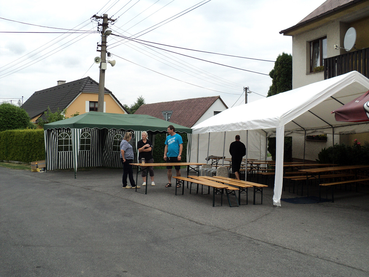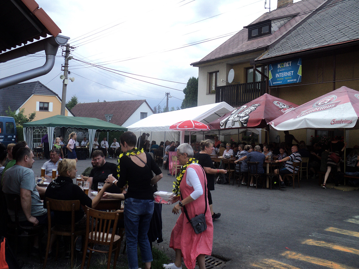 Přípravy na návsi a v hasičárně byly započaty již ve čtvrtek a kolem poledne v sobotu bylo vše přichystáno a již se jen čekalo, zda se začnou scházet nějací návštěvníci. Ti se začali scházet kolem šestnácté hodiny a musela být vyslána skupinka, aby ze sálu přidala několik stolů a židlí, protože místo rychle docházelo. Děvčata procházela proudy příchozích a vybírala symbolické vstupné, které bylo použito na úhradu za hudební produkci Orchestru Oty Hellera, který nás odpolednem provázel. Návštěvníci si zvesela pobrukovali známé písničky a ochutnávali připravené pochoutky. Naštěstí se kost v krku u nikoho nekonala a tak odpoledne probíhalo v poklidném rytmu. Jen nás strašil déšť, který nás přece jen na chvilku skropil, ale myslím, že si nikdo příjemné odpoledne zkazit nenechal. Odpoledne se přehouplo do večera a návštěvníci se začali rozcházet do svých domovů, ale pro některé však tma nebyla signálem k odchodu a pokračovali v započaté zábavě do pozdních nočních hodin. V neděli byl podniknut úklid a slavnosti byly ukončené. Pro nás organizátory bylo velmi příjemným překvapením, že tuto akci navštívilo 160 lidí. Zda budou slavnosti i příští rok, nebo se v našich hlavách zrodí opět nějaká jiná myšlenka, to v tuhle chvíli těžko říct, ale určitě Vám dáme včas vědět.