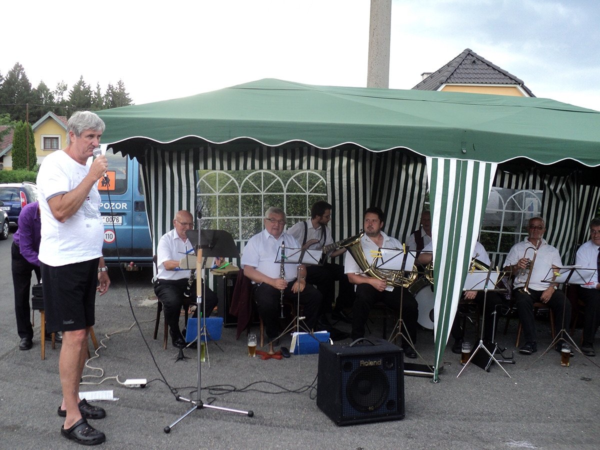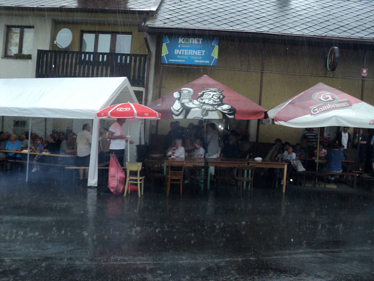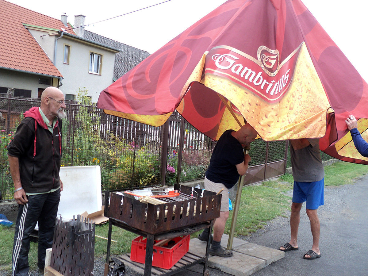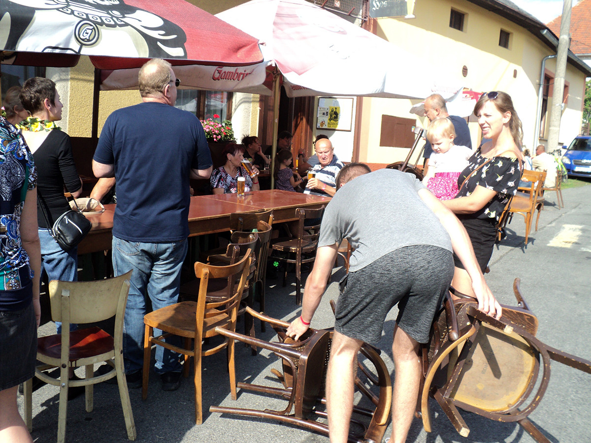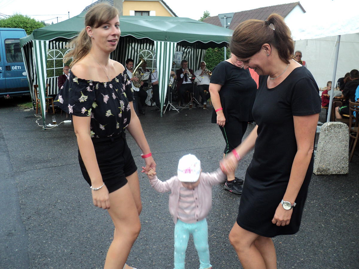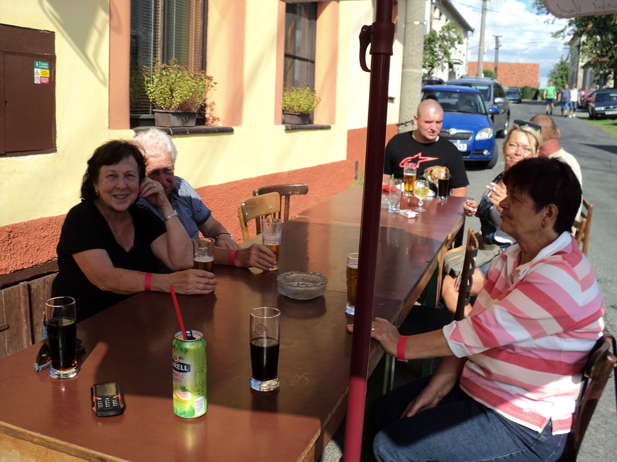 Přípravy na návsi a v hasičárně byly započaty již ve čtvrtek a kolem poledne v sobotu bylo vše přichystáno a již se jen čekalo, zda se začnou scházet nějací návštěvníci. Ti se začali scházet kolem šestnácté hodiny a musela být vyslána skupinka, aby ze sálu přidala několik stolů a židlí, protože místo rychle docházelo. Děvčata procházela proudy příchozích a vybírala symbolické vstupné, které bylo použito na úhradu za hudební produkci Orchestru Oty Hellera, který nás odpolednem provázel. Návštěvníci si zvesela pobrukovali známé písničky a ochutnávali připravené pochoutky. Naštěstí se kost v krku u nikoho nekonala a tak odpoledne probíhalo v poklidném rytmu. Jen nás strašil déšť, který nás přece jen na chvilku skropil, ale myslím, že si nikdo příjemné odpoledne zkazit nenechal. Odpoledne se přehouplo do večera a návštěvníci se začali rozcházet do svých domovů, ale pro některé však tma nebyla signálem k odchodu a pokračovali v započaté zábavě do pozdních nočních hodin. V neděli byl podniknut úklid a slavnosti byly ukončené. Pro nás organizátory bylo velmi příjemným překvapením, že tuto akci navštívilo 160 lidí. Zda budou slavnosti i příští rok, nebo se v našich hlavách zrodí opět nějaká jiná myšlenka, to v tuhle chvíli těžko říct, ale určitě Vám dáme včas vědět.