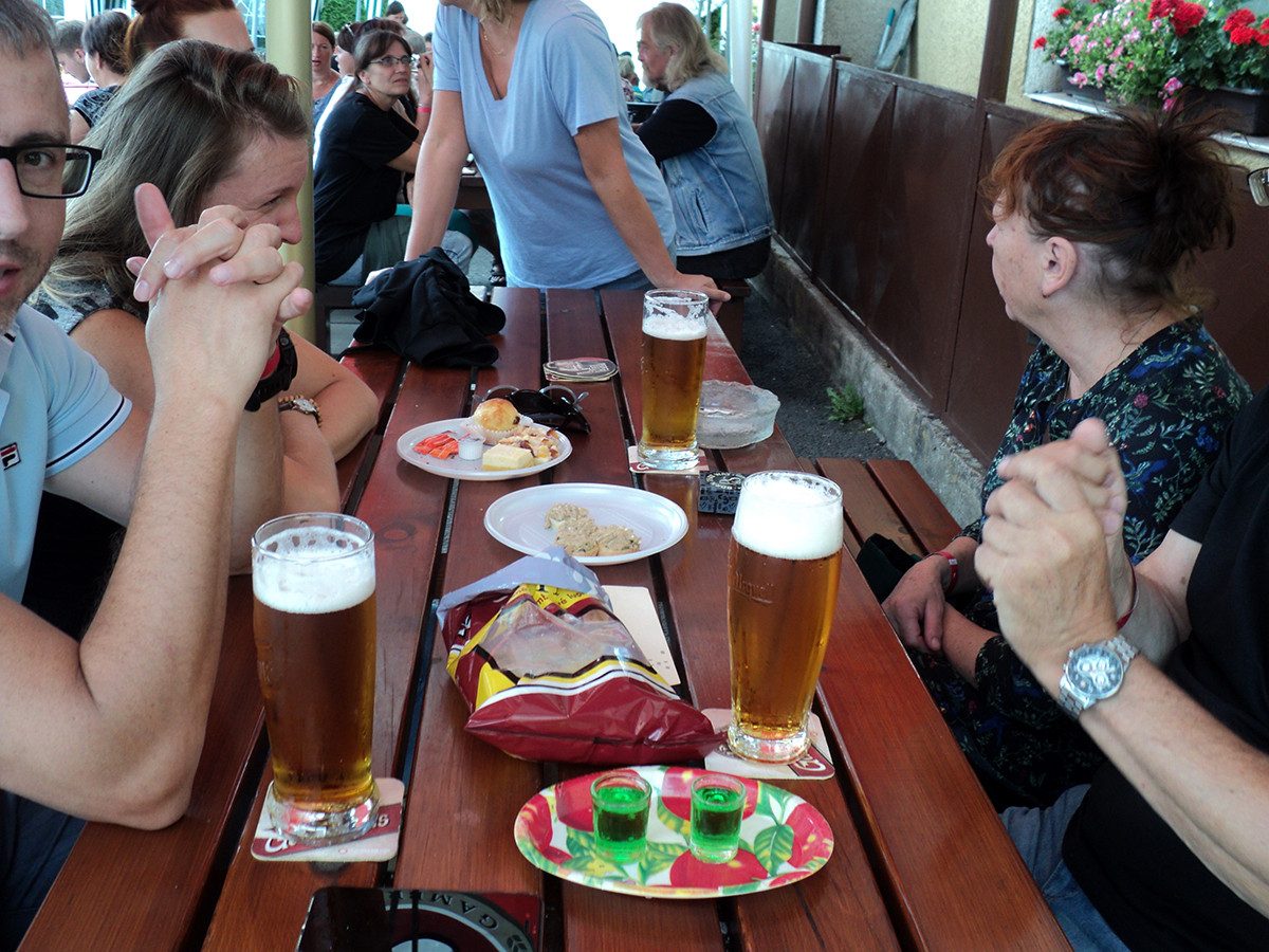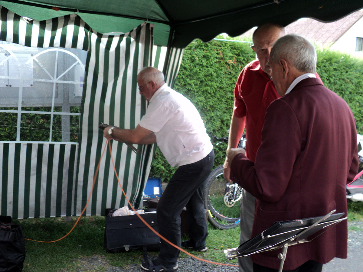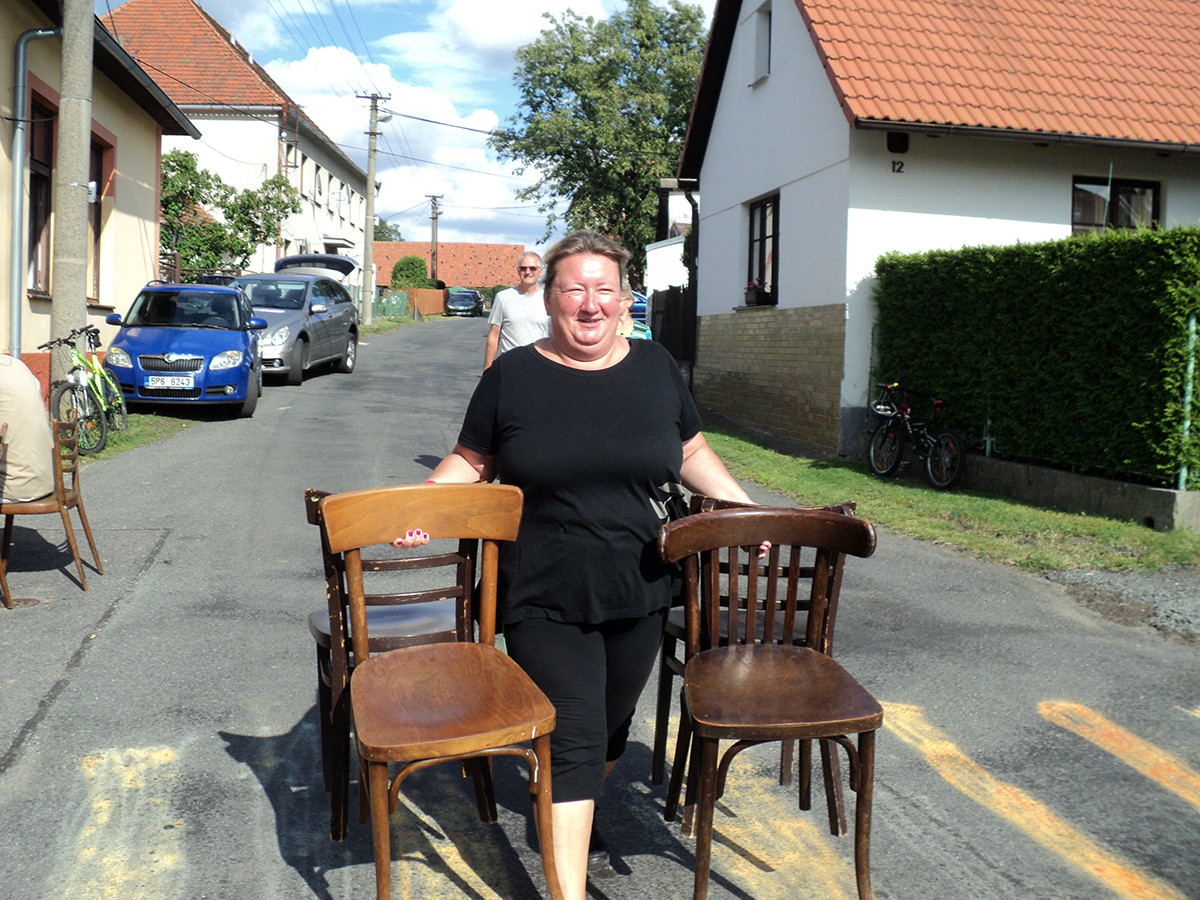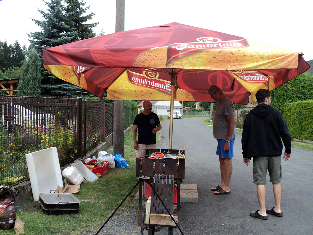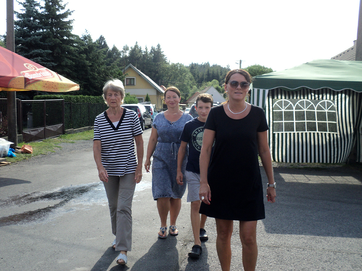 Přípravy na návsi a v hasičárně byly započaty již ve čtvrtek a kolem poledne v sobotu bylo vše přichystáno a již se jen čekalo, zda se začnou scházet nějací návštěvníci. Ti se začali scházet kolem šestnácté hodiny a musela být vyslána skupinka, aby ze sálu přidala několik stolů a židlí, protože místo rychle docházelo. Děvčata procházela proudy příchozích a vybírala symbolické vstupné, které bylo použito na úhradu za hudební produkci Orchestru Oty Hellera, který nás odpolednem provázel. Návštěvníci si zvesela pobrukovali známé písničky a ochutnávali připravené pochoutky. Naštěstí se kost v krku u nikoho nekonala a tak odpoledne probíhalo v poklidném rytmu. Jen nás strašil déšť, který nás přece jen na chvilku skropil, ale myslím, že si nikdo příjemné odpoledne zkazit nenechal. Odpoledne se přehouplo do večera a návštěvníci se začali rozcházet do svých domovů, ale pro některé však tma nebyla signálem k odchodu a pokračovali v započaté zábavě do pozdních nočních hodin. V neděli byl podniknut úklid a slavnosti byly ukončené. Pro nás organizátory bylo velmi příjemným překvapením, že tuto akci navštívilo 160 lidí. Zda budou slavnosti i příští rok, nebo se v našich hlavách zrodí opět nějaká jiná myšlenka, to v tuhle chvíli těžko říct, ale určitě Vám dáme včas vědět.