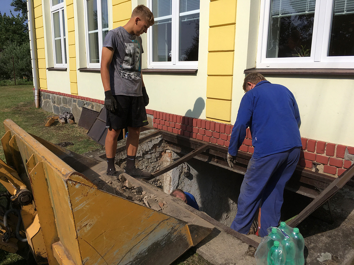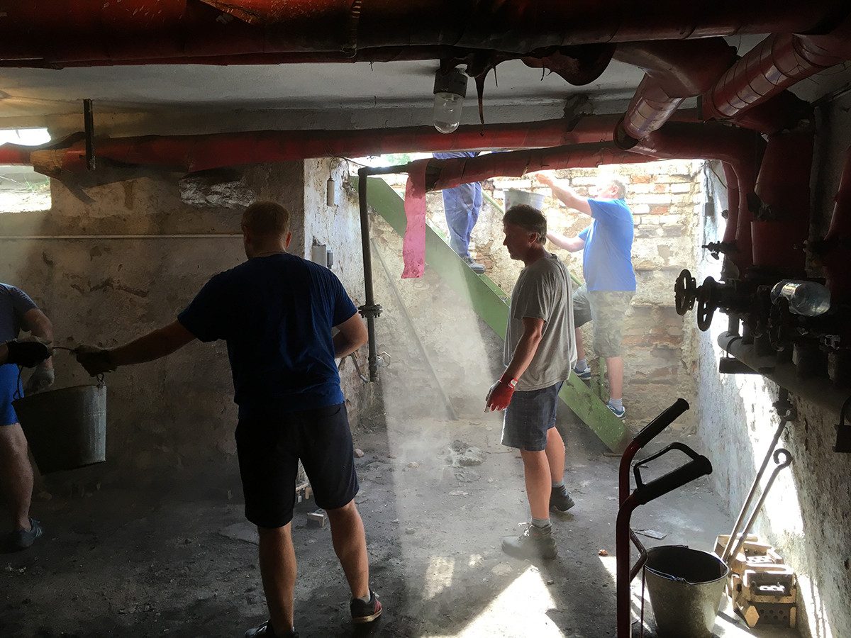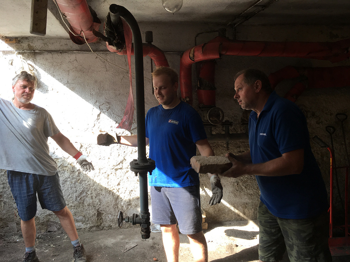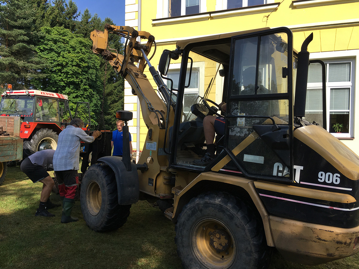 V sobotu 20.7.2019 se hasiči sešli v osm hodin před školkou a začali s vynášením starých kotlů ze školky. Kotle demontovala firma pana Matějky z Volyně, která bude provádět kompletní výměnu zdroje vytápění. Díly kotlů byly postupně pomocí nakladače a šikovných hasičů vyzvednuty ze sklepa a naloženy na valník. Po odstranění všech železných a litinových částí kotlů a rozvodů z kotelny, přišla na řadu i suť z komínů a sklepů. Hasiči vyklízecí práce zvládli za dopoledne a odpoledne poseděli u občerstvení a za odvedenou práci se tak odměnili.