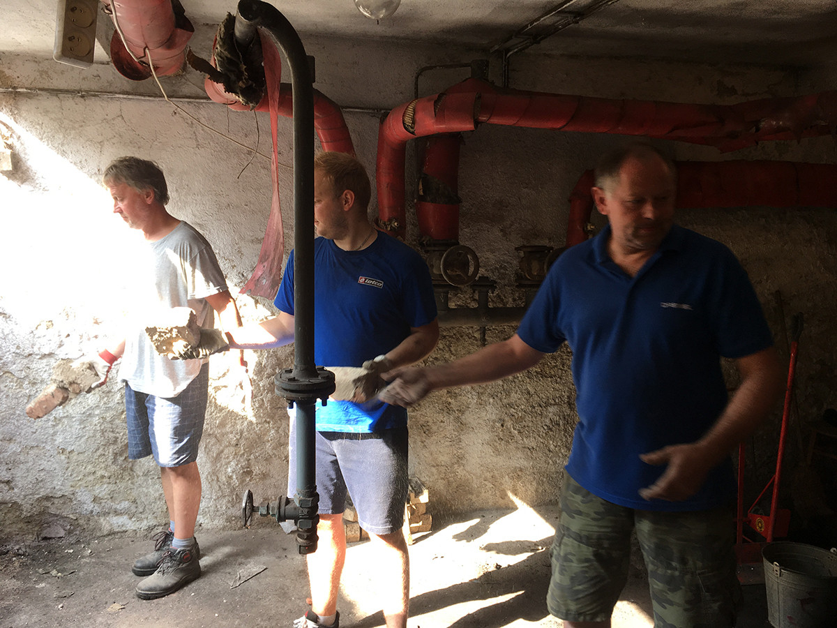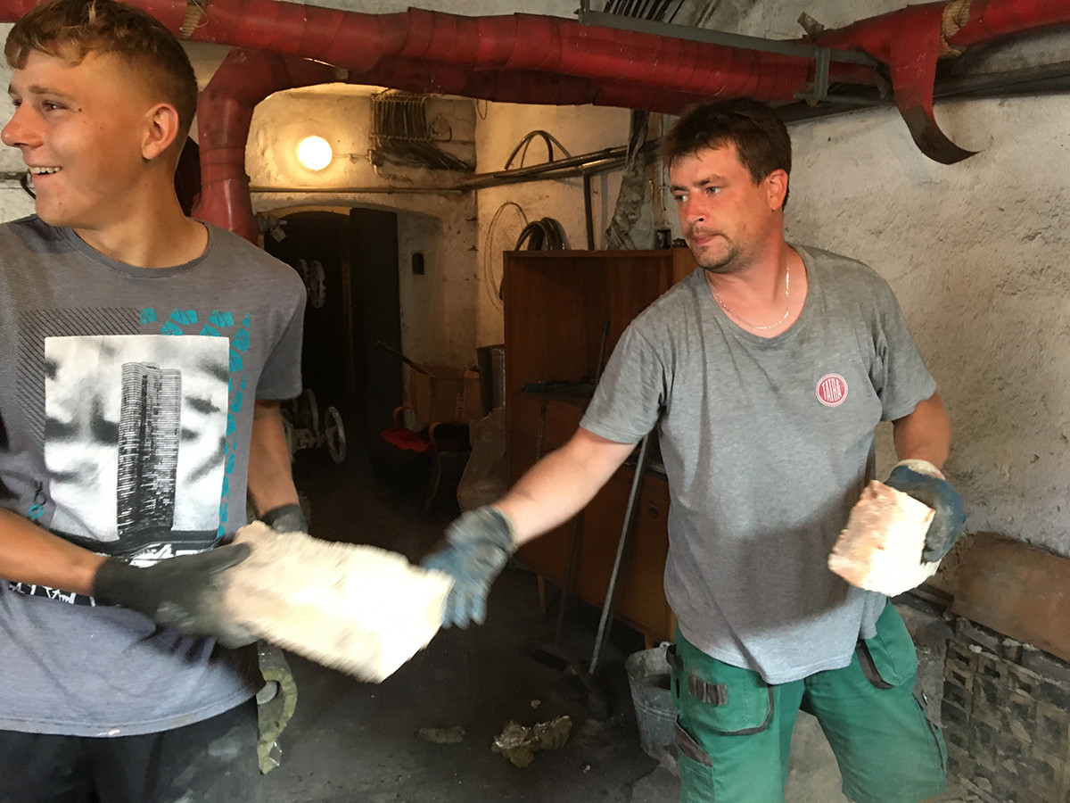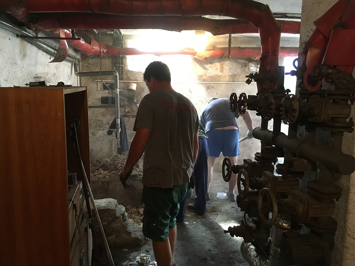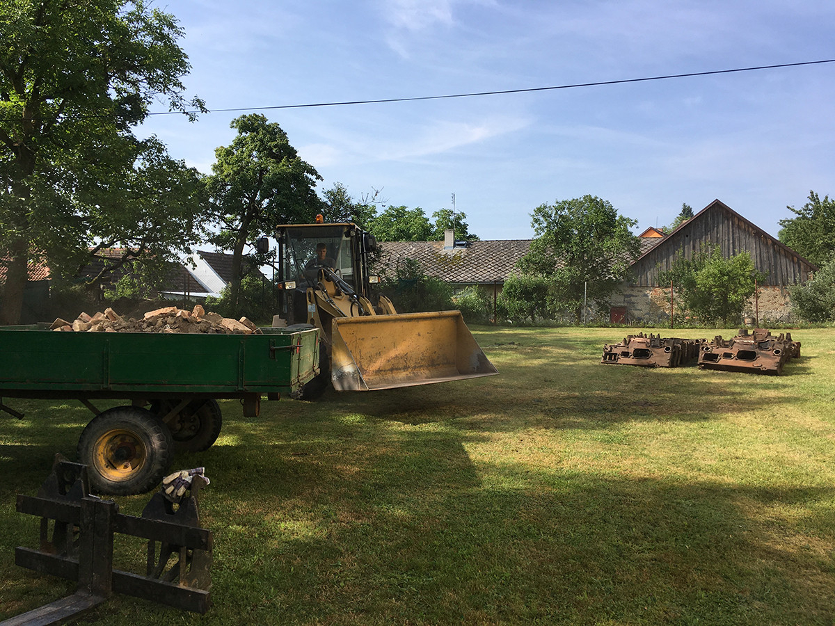 V sobotu 20.7.2019 se hasiči sešli v osm hodin před školkou a začali s vynášením starých kotlů ze školky. Kotle demontovala firma pana Matějky z Volyně, která bude provádět kompletní výměnu zdroje vytápění. Díly kotlů byly postupně pomocí nakladače a šikovných hasičů vyzvednuty ze sklepa a naloženy na valník. Po odstranění všech železných a litinových částí kotlů a rozvodů z kotelny, přišla na řadu i suť z komínů a sklepů. Hasiči vyklízecí práce zvládli za dopoledne a odpoledne poseděli u občerstvení a za odvedenou práci se tak odměnili.