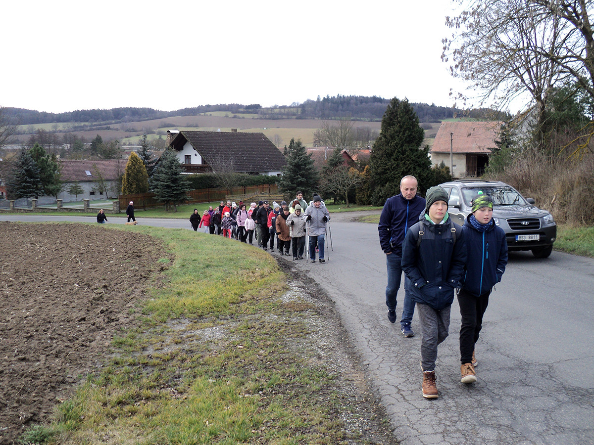 Krásné počasí vylákalo po svátcích na tradiční pochod z obce do obce 78 lidiček a tři psy.